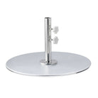 A galvanized umbrella base designed to provide stable support for outdoor umbrellas. Its durable construction makes it suitable for patios, terraces, and other outdoor spaces where a clean, functional base is needed.