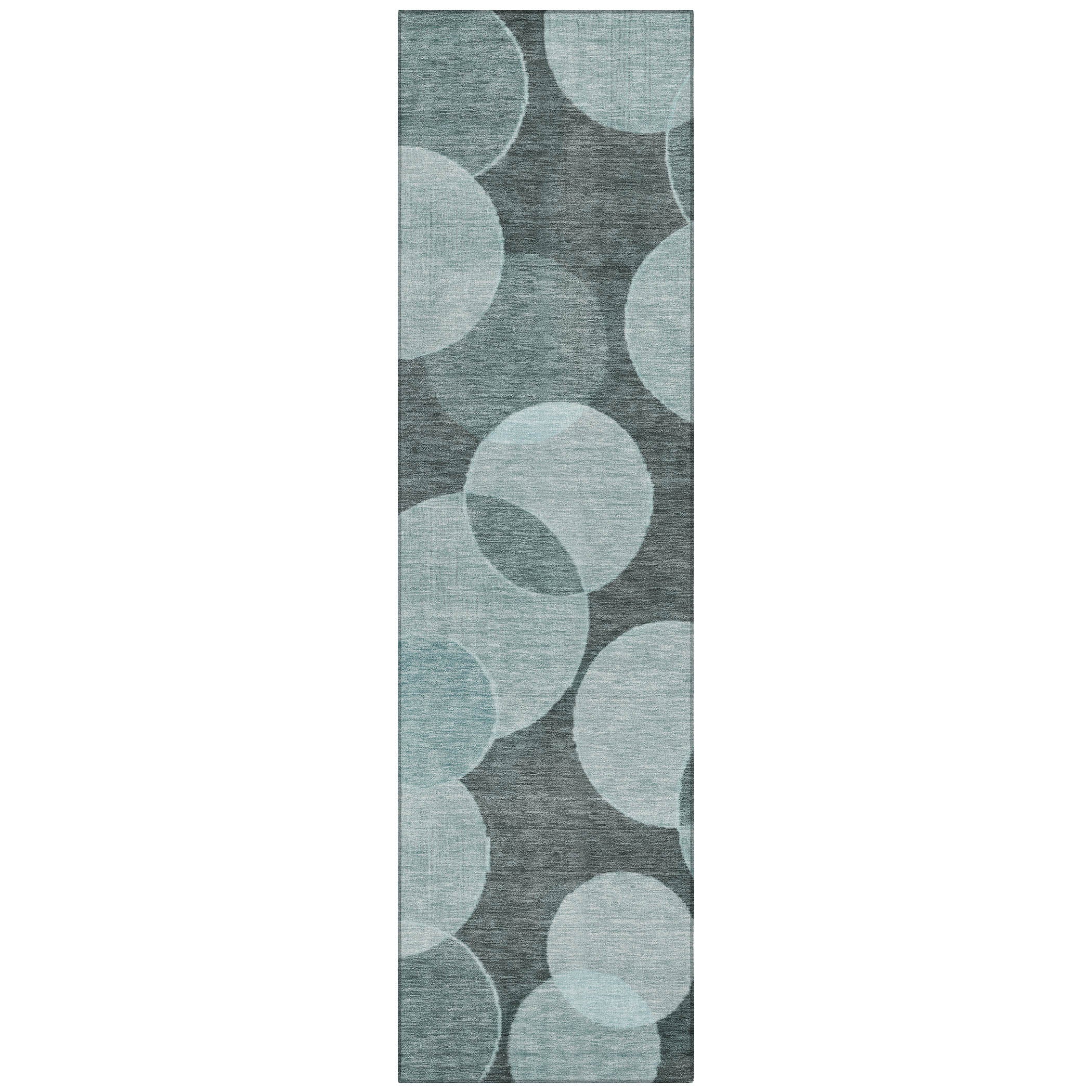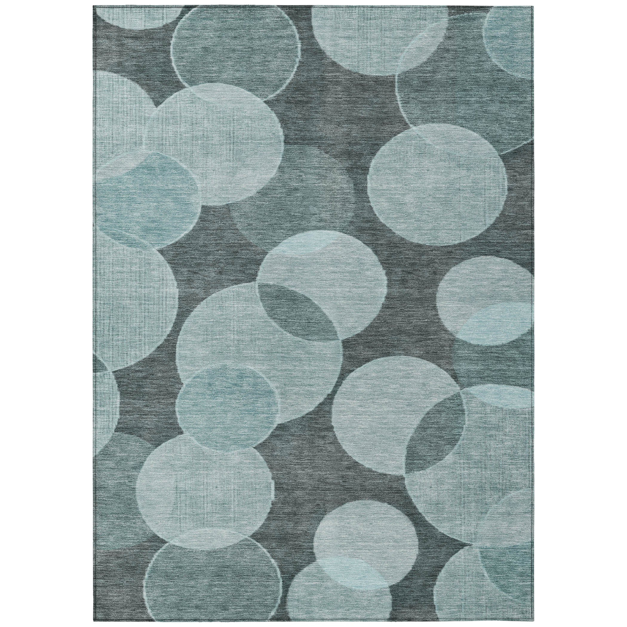 The design of large circles overlaying smaller circles on this rug adds a unique twist to a classic geometric pattern. The overlapping shapes create texture and movement, offering a sophisticated look that fits beautifully in transitional interiors, blending modern and traditional styles effortlessly. Designed for both indoor and outdoor spaces, this UV-stabilized rug features an ultra-thin construction that’s easy to clean and care for. Its machine-washable design adds convenience, while its family and pet-friendly nature ensures it can handle everyday wear and tear. Stylish and durable, it’s the perfect solution for busy households.