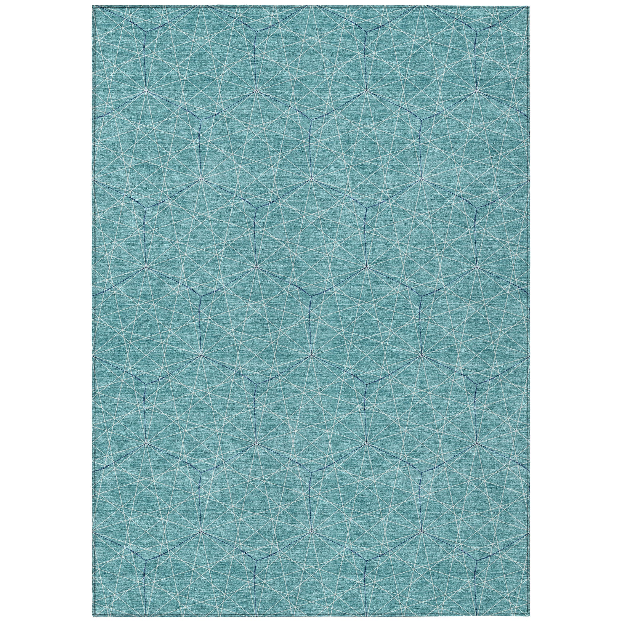 Immerse yourself in contemporary elegance with our stunning area rug showcasing a web-like geometric pattern, seamlessly blending transitional elements with bold geometric shapes. Crafted with precision, this rug effortlessly elevates any space with its unique design. Engineered with UV stabilization, its perfect for indoor or outdoor use, ensuring long-lasting vibrancy. Its ultra-thin construction adds a sleek touch to your decor while offering versatility in placement. With machine-washable features, cleaning and maintaining the rug is a breeze, ideal for busy households. Plus, its family and pet-friendly, providing a cozy and durable surface for everyone to enjoy.