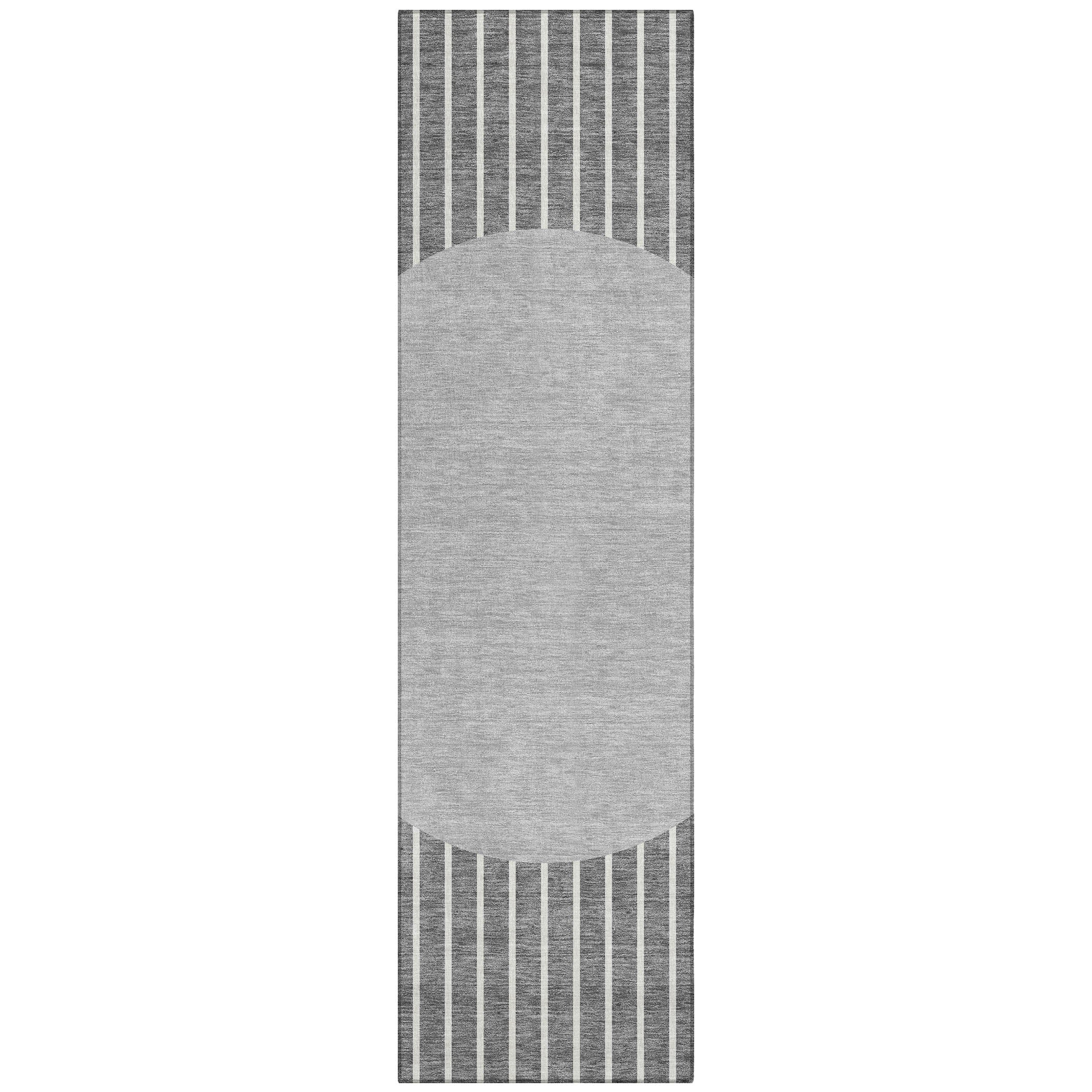 Add a touch of sophistication to your home with our transitional area rug, featuring sleek vertical stripes and a distinctive large circle in the center. This design element creates a focal point in any room, marrying style with versatility. The rug is UV stabilized, ensuring it retains its color and pattern whether used indoors or out. Its ultra-thin construction means no bulk underfoot, and its machine-washable fabric ensures easy cleaning. Designed to be both family and pet-friendly, it’s the perfect choice for active households seeking both style and practicality.