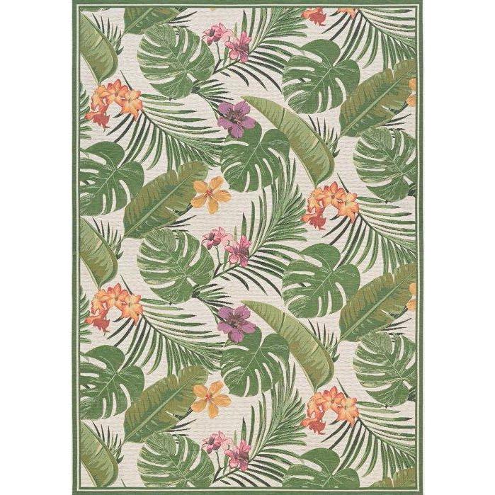 Dolce Flowering Fern Ivory Hunter Green rug, a perfect blend of style and durability for both indoor and outdoor spaces. Crafted from 100% Fiber-Enhanced Courtron™ Polypropylene mixed with sturdy polyester, this rug boasts a structured tapestry construction that guarantees long-lasting quality. With UV stabilization and mold/mildew resistance, this rug is designed to withstand the elements while maintaining its beauty.