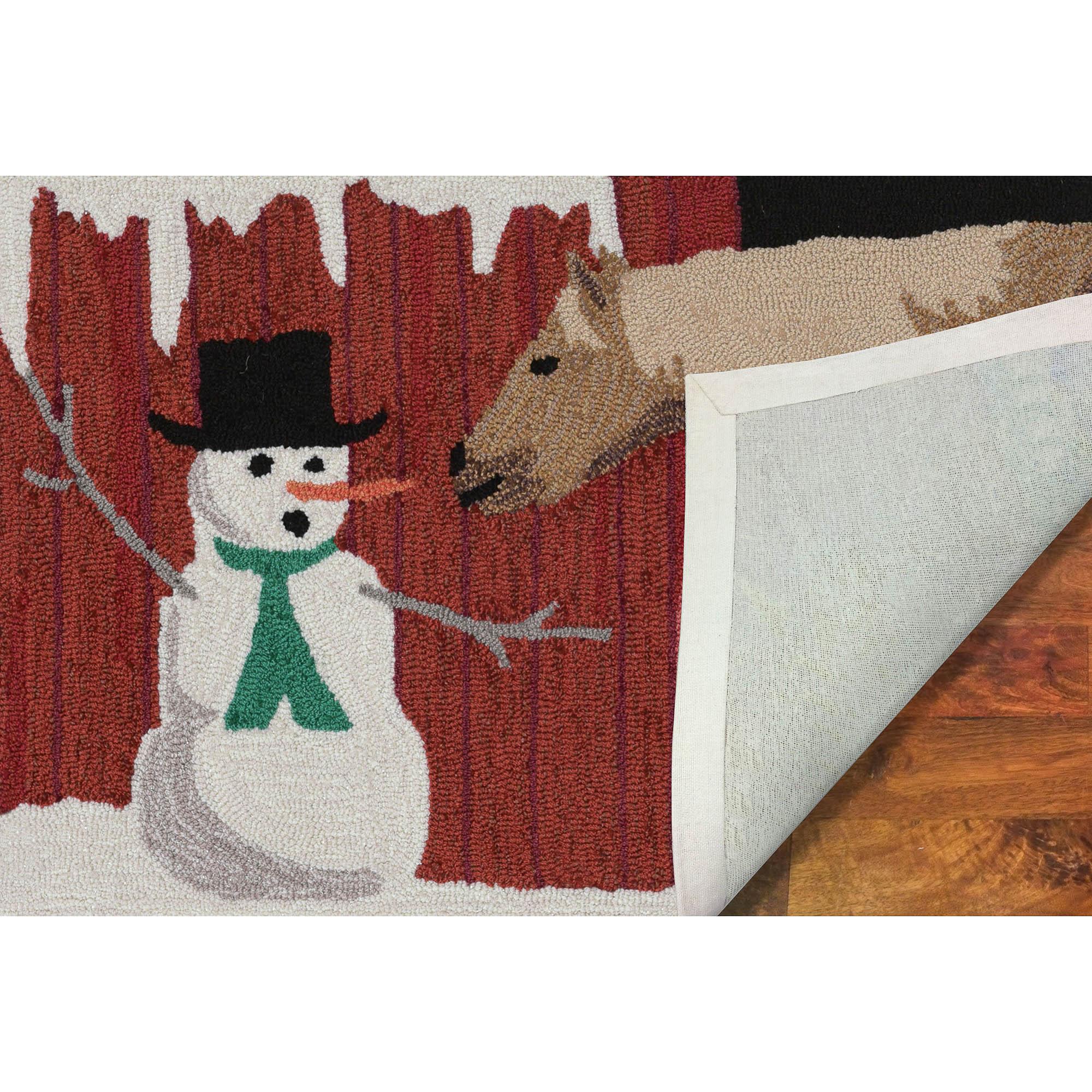 delightful Frontporch Farm To Table Red mat, perfect for adding a touch of winter charm to your doorstep. This whimsical design features a classic snowman that will bring cheer and warmth to your home. Hand-hooked using weather-resistant fiber, this collection offers a unique blend of comfort, softness, and durability.