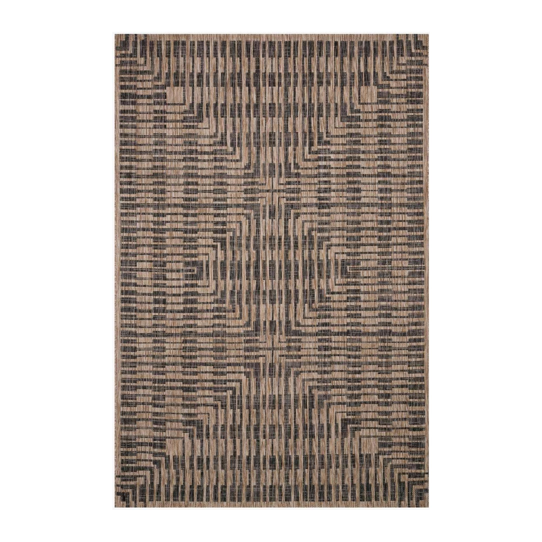 Isle Ie 09 Brown Black rug, a versatile addition to your indoor or outdoor space. This power-loomed collection from Turkey strikes the perfect balance between elegance and comfort. Crafted from 100% polypropylene yarn, this rug is designed to resist rain, sunlight, and other outdoor conditions while remaining easy to clean with just a hose wash.