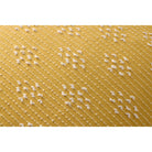 This vibrant yellow throw pillow features a white geometric design and tan flange, adding a pop of color to your home decor. The 20” x 20” square pillow is power-loomed of polyester in India.
