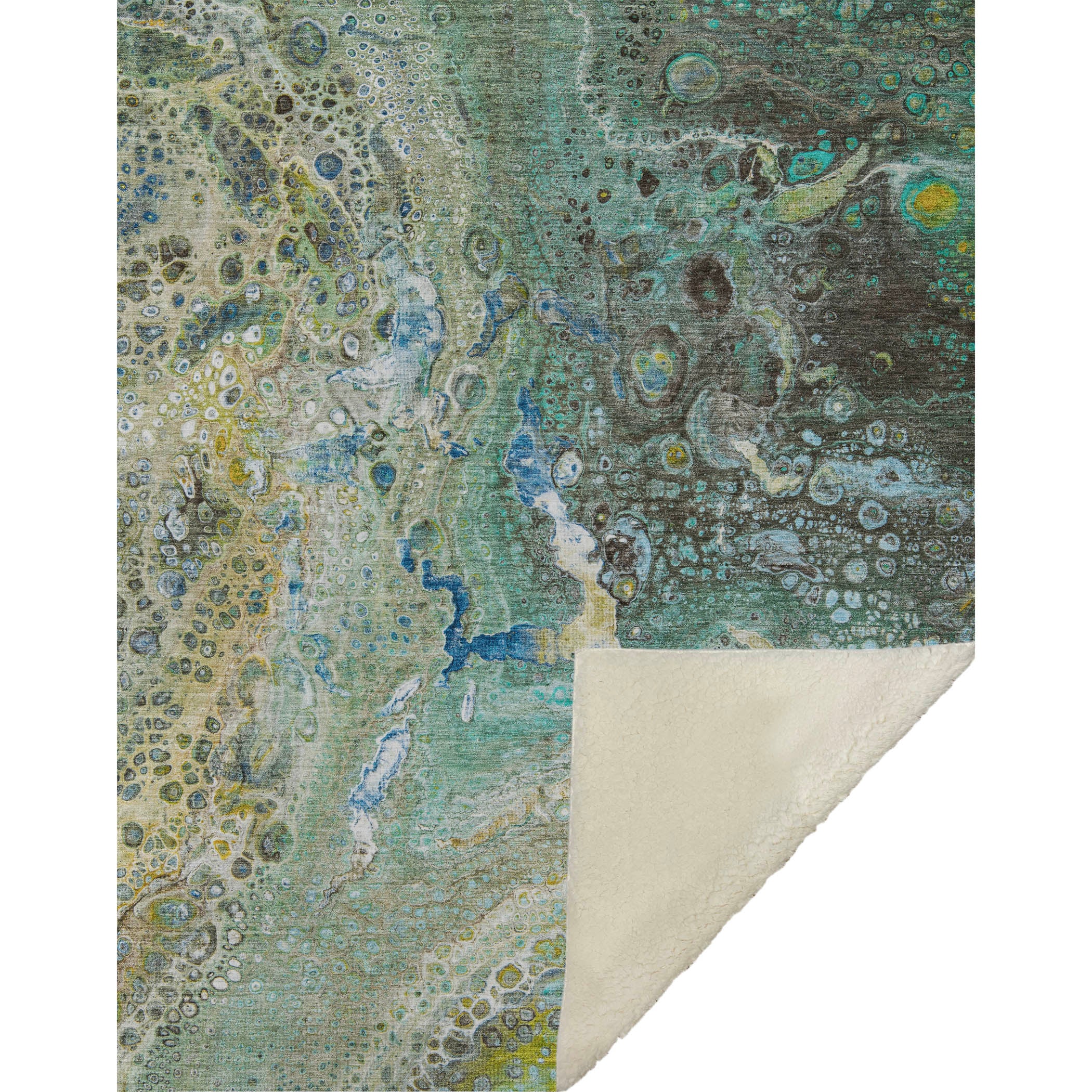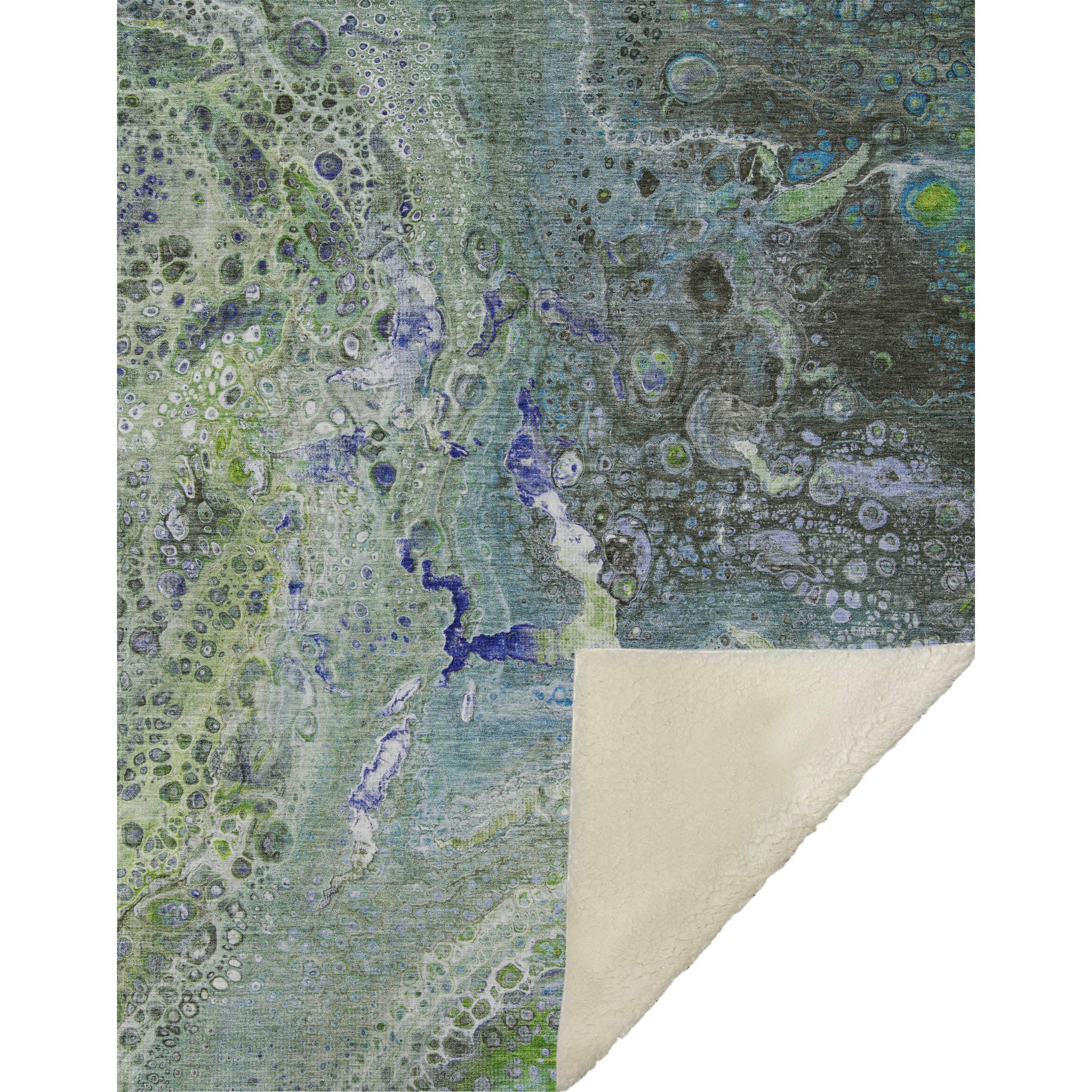 Experience the charm of contemporary artistry with unpredictable cell patterns and vibrant color combinations that captivate the senses. The generous 50" x 70" size ensures enveloping warmth, with a luxuriously soft touch front and cozy sherpa backing that beckons relaxation. Crafted from fade-resistant polyester microfiber, it's designed for both indoor and protected outdoor spaces, and its premium machine washable quality guarantees effortless care and maintenance.