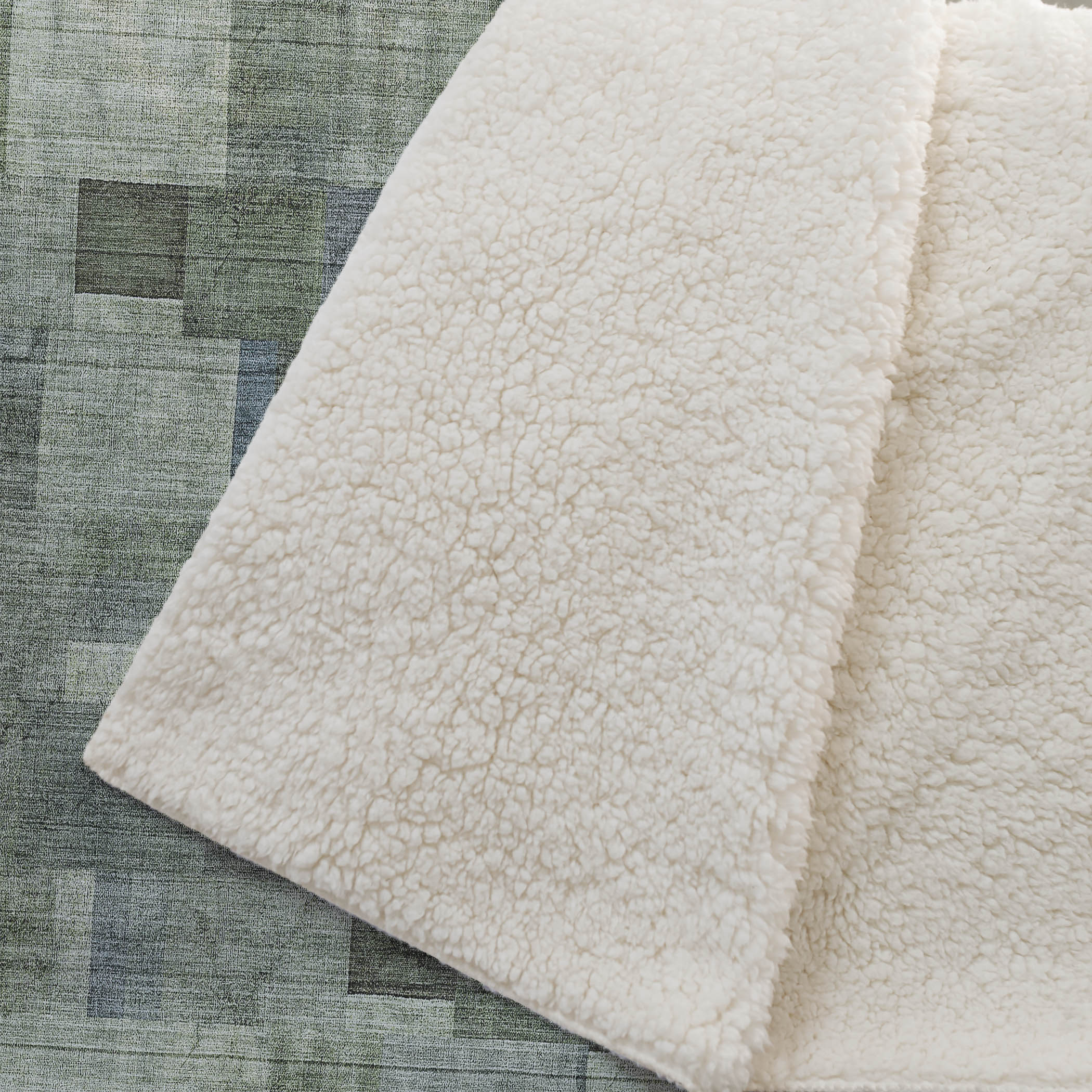 Witness the perfect blend of transitional style and the playful design of small squares, forming a striking horizontal motif. Oversized at 50" x 70", enjoy the luxuriously soft-touch front that harmonizes with a warm sherpa backing, offering unrivaled comfort. Crafted from fade-resistant polyester microfiber, this piece is suited for both indoor and covered outdoor settings and emphasizes easy upkeep with its premium machine washable feature.