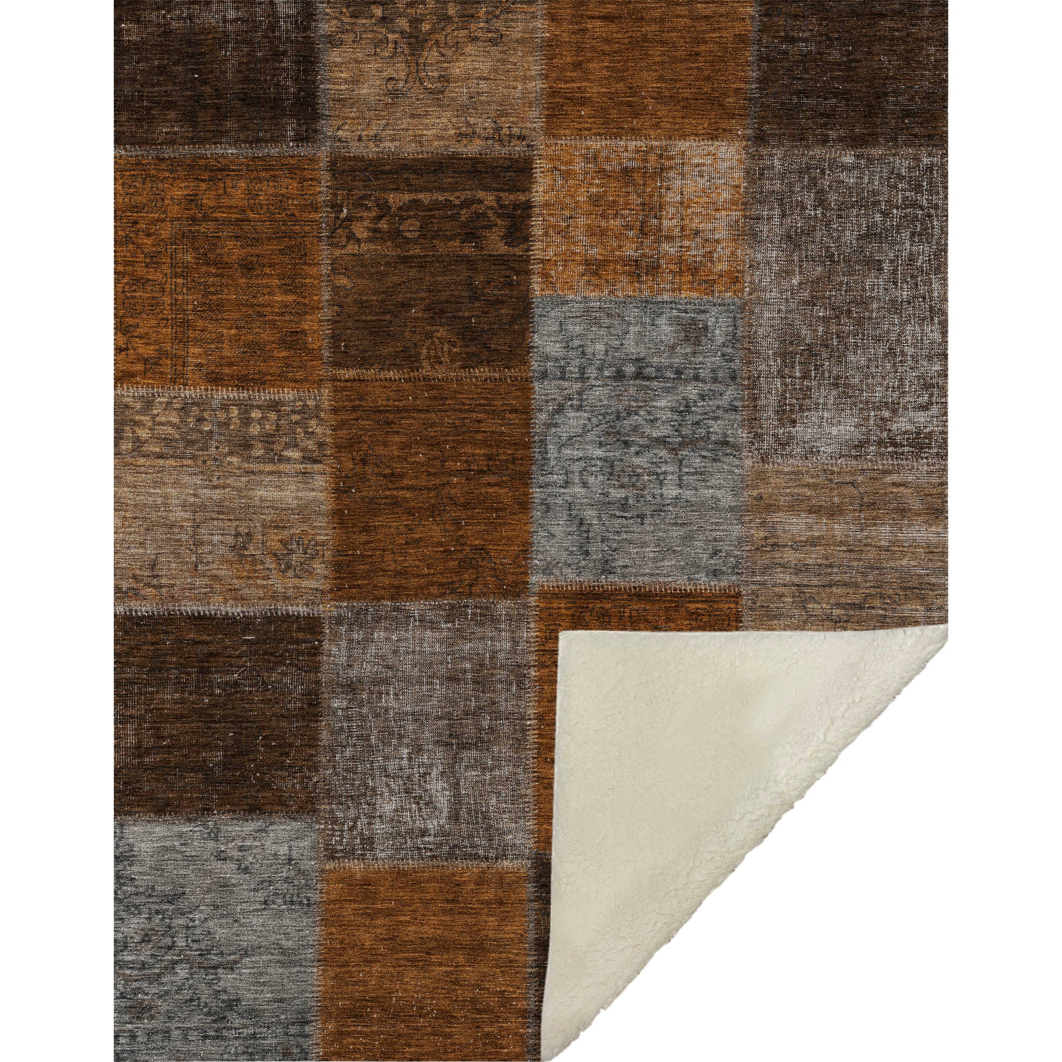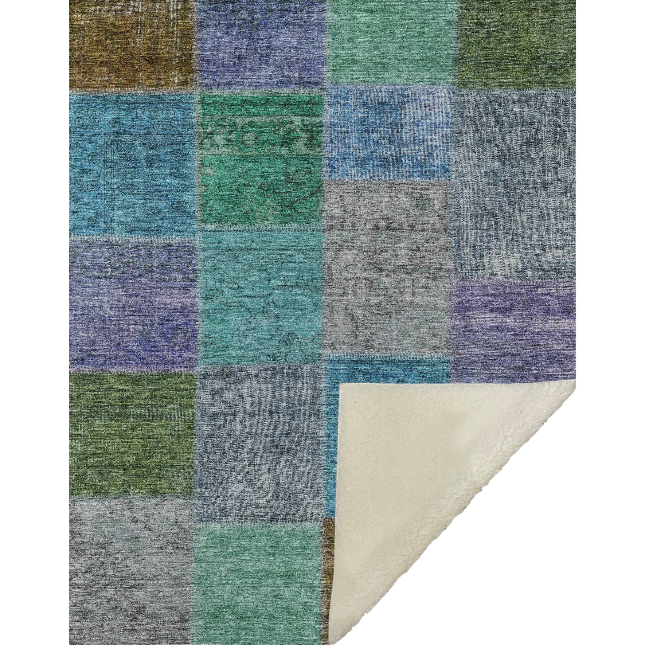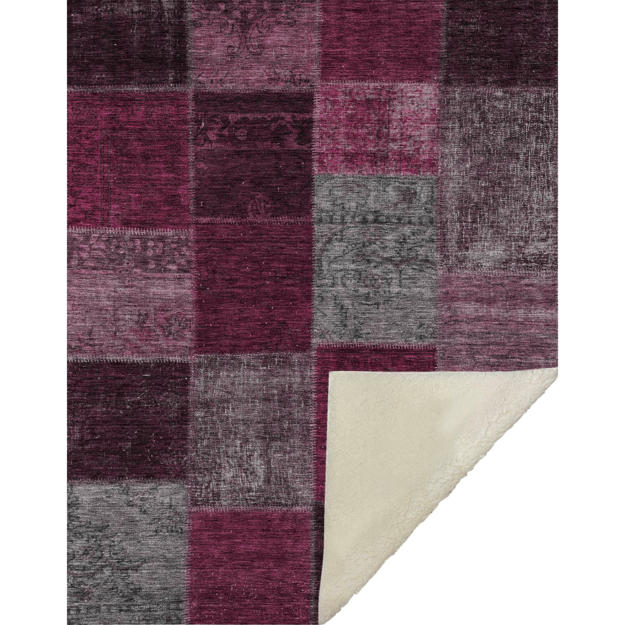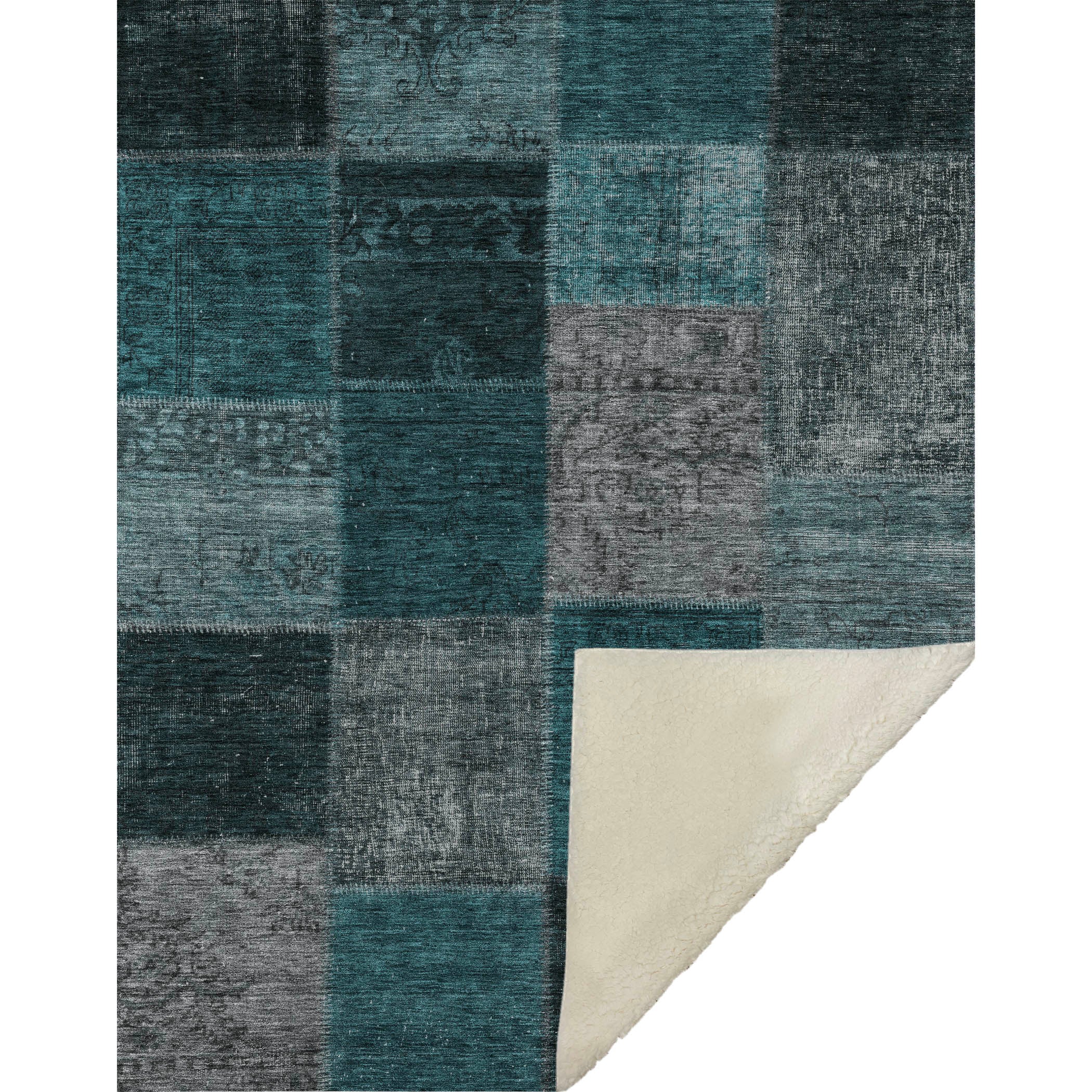 Wrap yourself in timeless charm with this transitional throw, featuring a patchwork design of saddle stitched boxes for a quilt-like effect. Its oversized 50" x 70" dimensions complement the luxuriously soft-touch front and warm sherpa backing, ensuring comfort through every season. Crafted from fade-resistant polyester microfiber, it's perfect for indoor and covered outdoor areas, and offers the convenience of premium machine washable care.