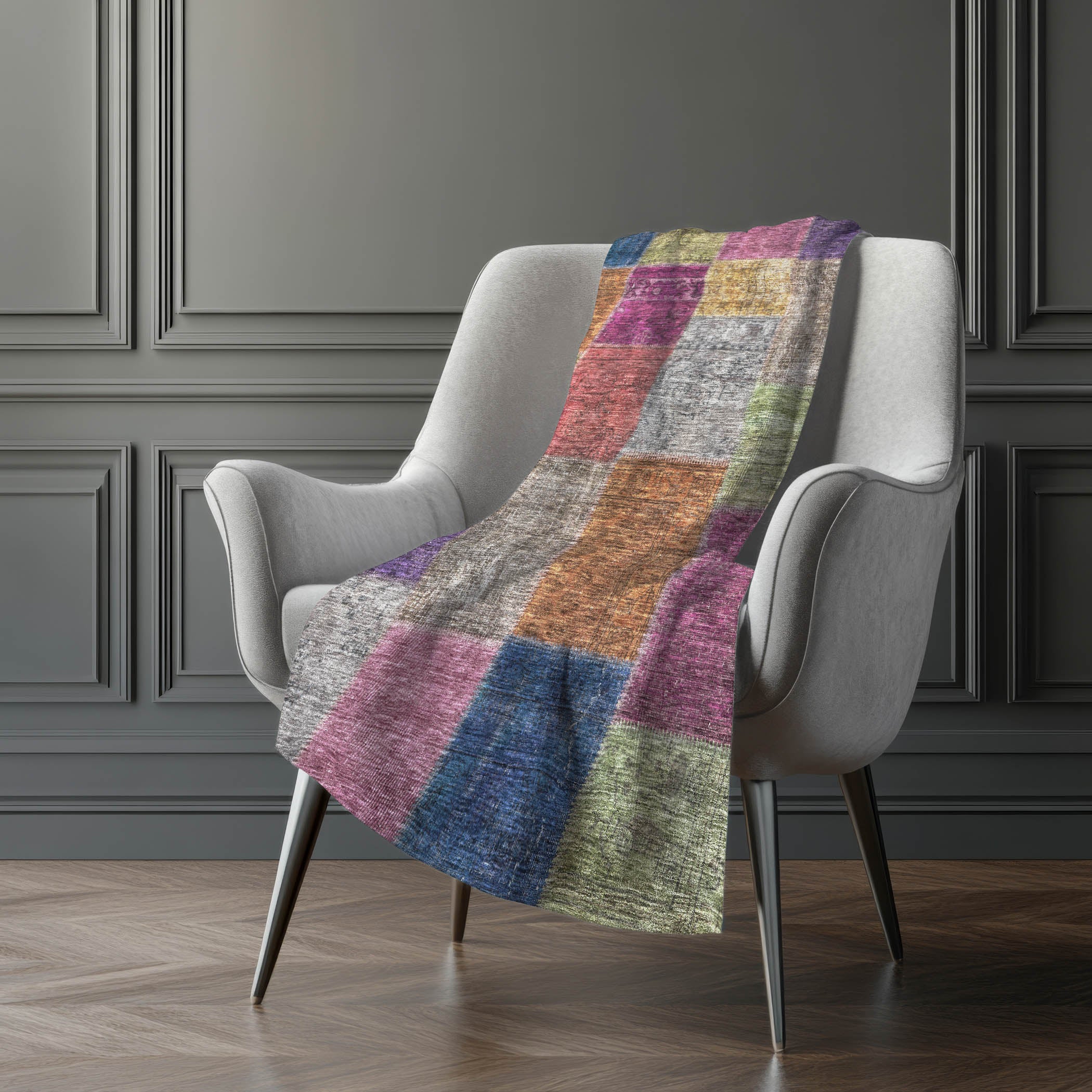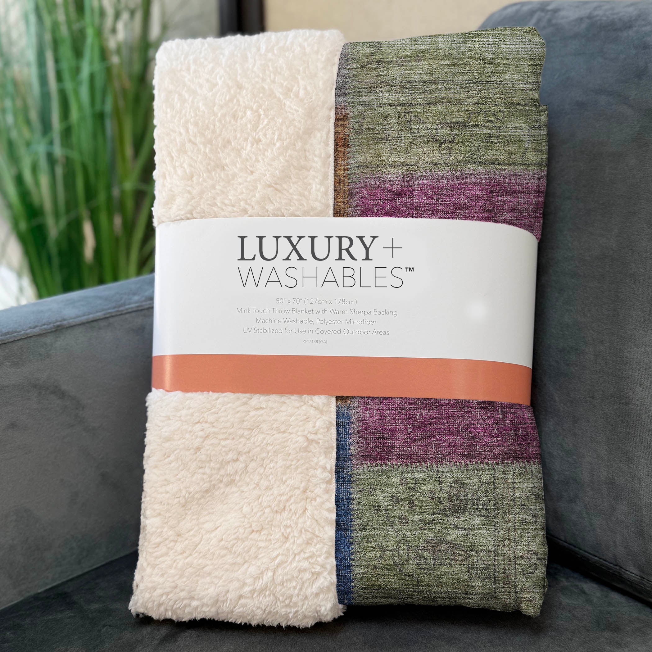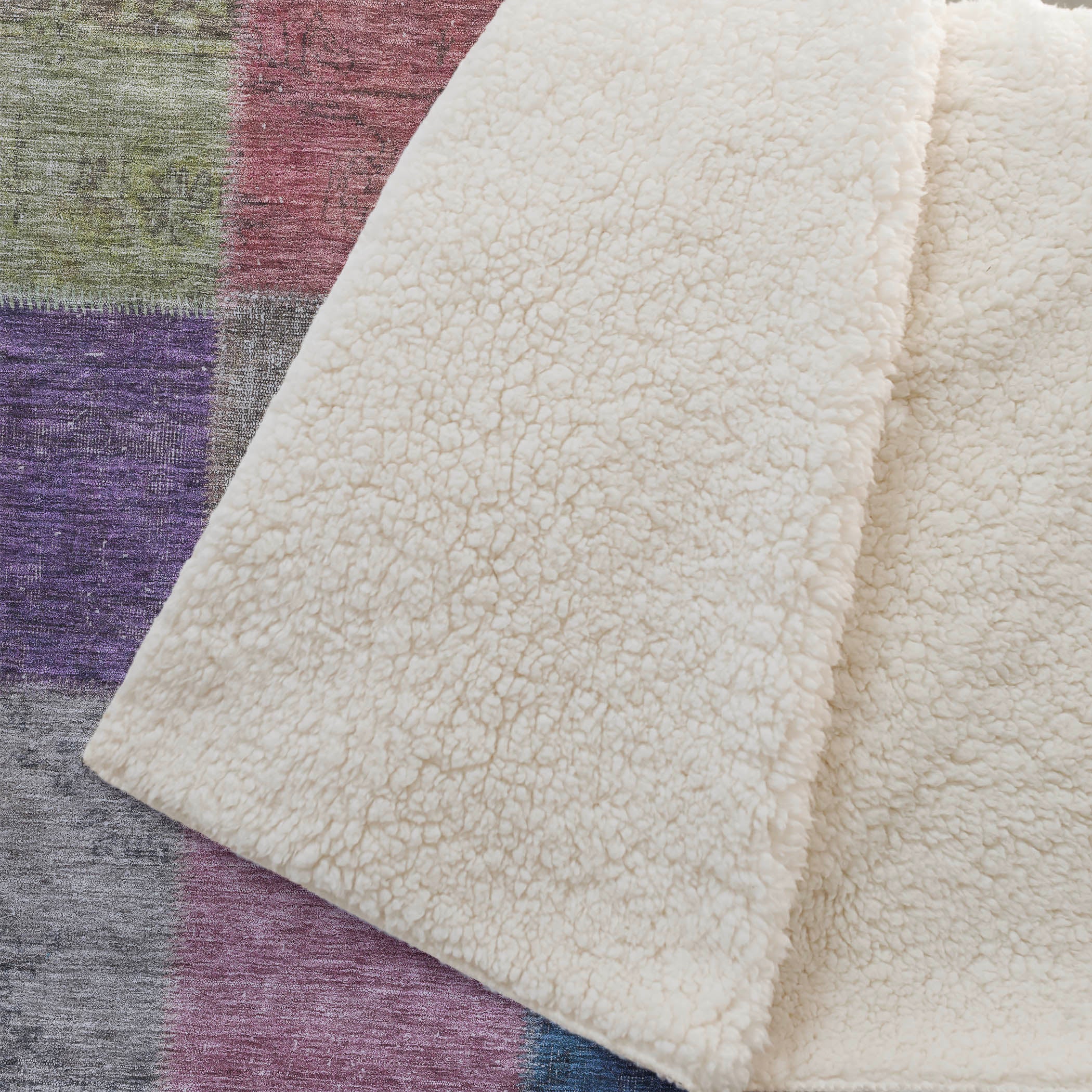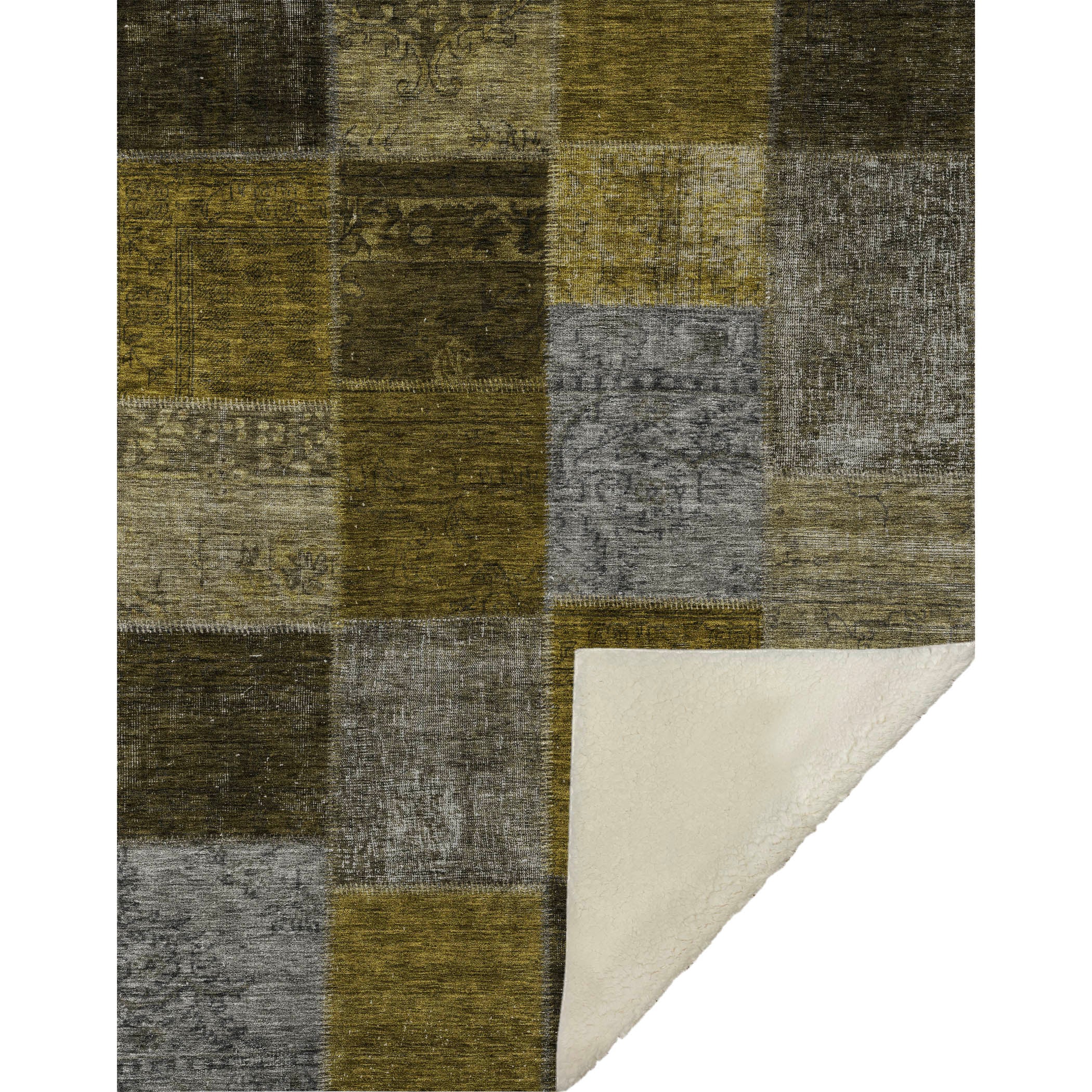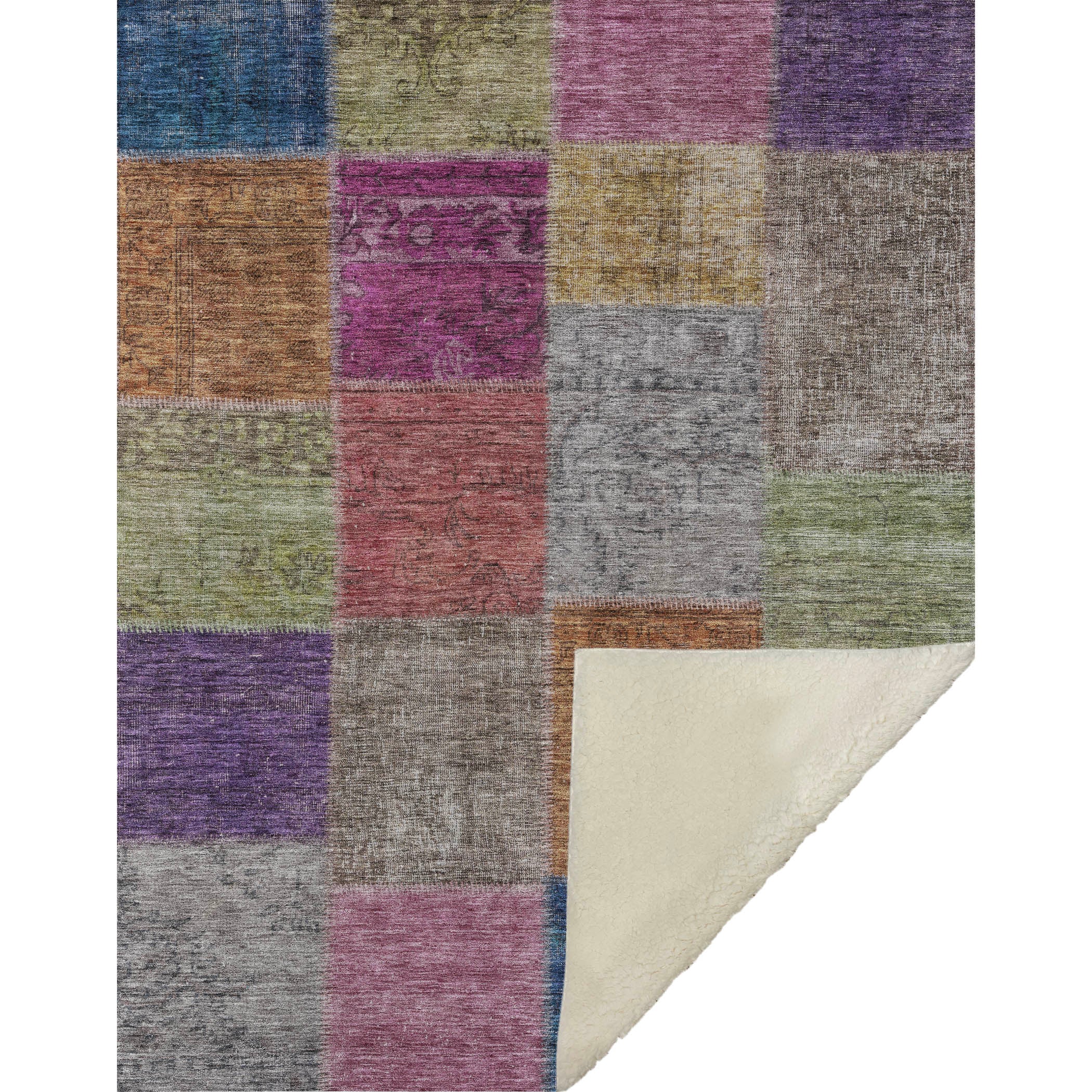 Wrap yourself in timeless charm with this transitional throw, featuring a patchwork design of saddle stitched boxes for a quilt-like effect. Its oversized 50" x 70" dimensions complement the luxuriously soft-touch front and warm sherpa backing, ensuring comfort through every season. Crafted from fade-resistant polyester microfiber, it's perfect for indoor and covered outdoor areas, and offers the convenience of premium machine washable care.