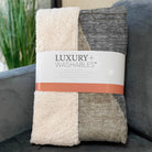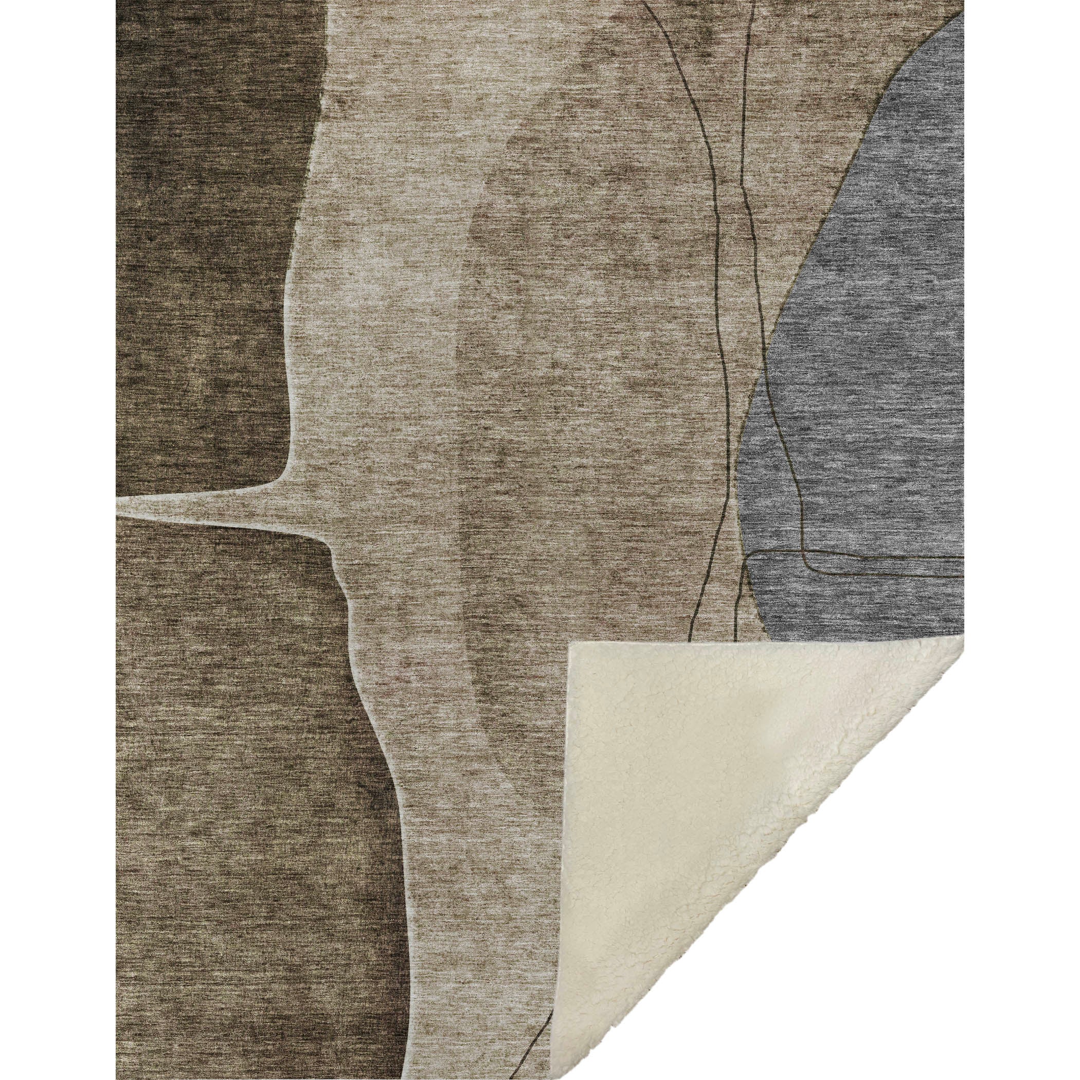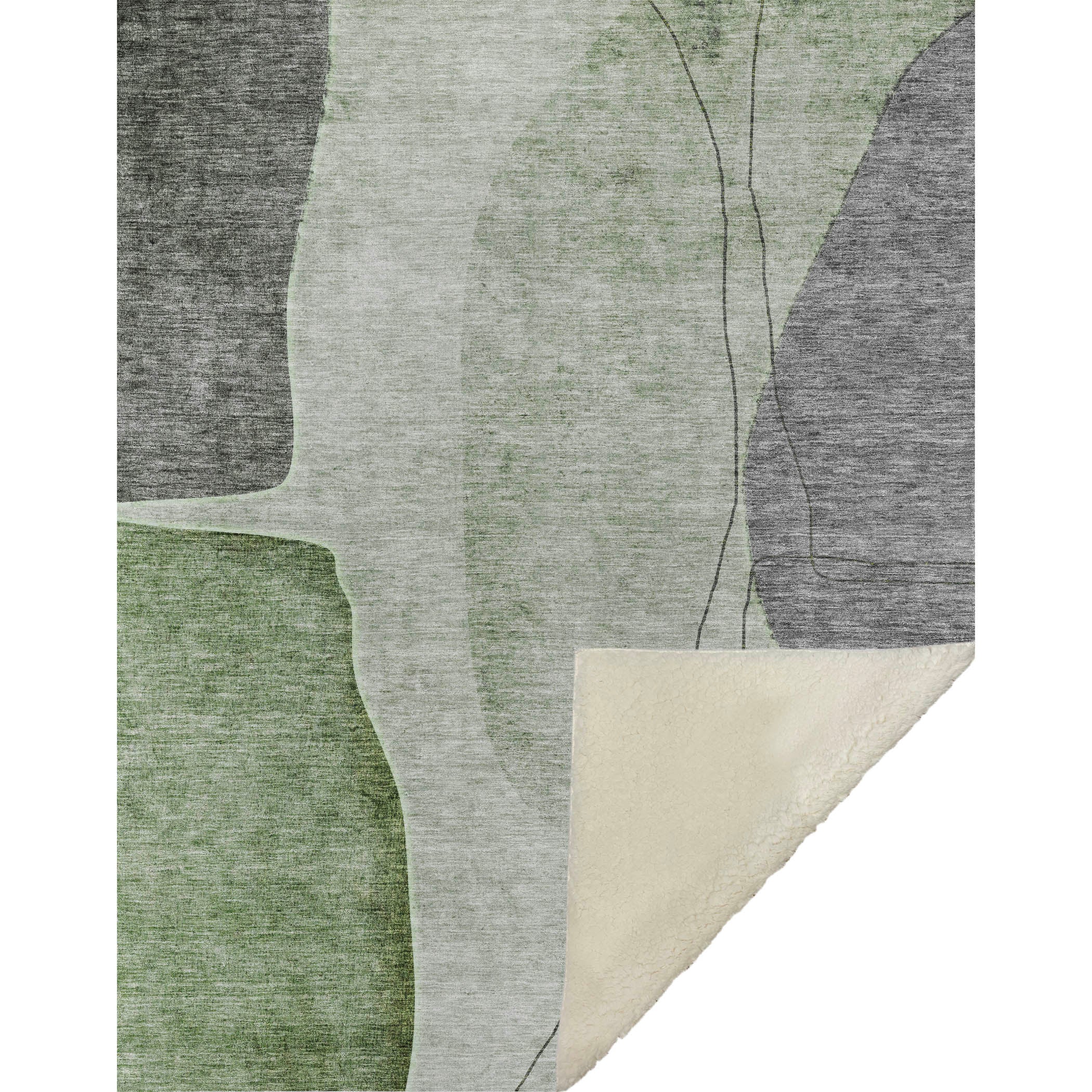 Embrace an artistic touch with oversized modern shapes in this transitional masterpiece, crafted for an eye-catching statement. Sized generously at 50" x 70", it offers the perfect blend of a luxuriously soft touch front and warm sherpa backing, ensuring supreme comfort. Made from fade-resistant polyester microfiber, it's ideal for both indoor and covered outdoor spaces and offers easy maintenance with its premium machine washable design.
