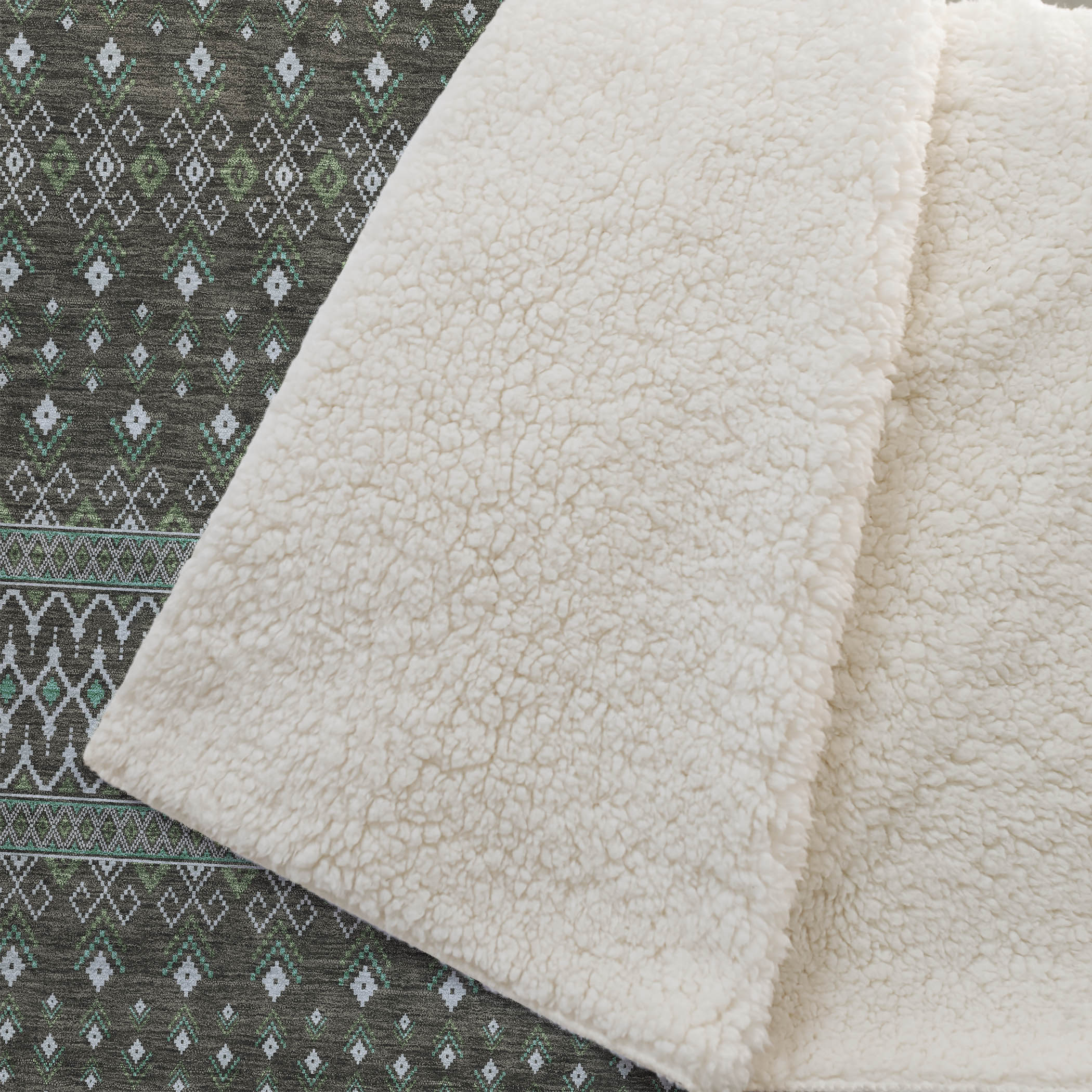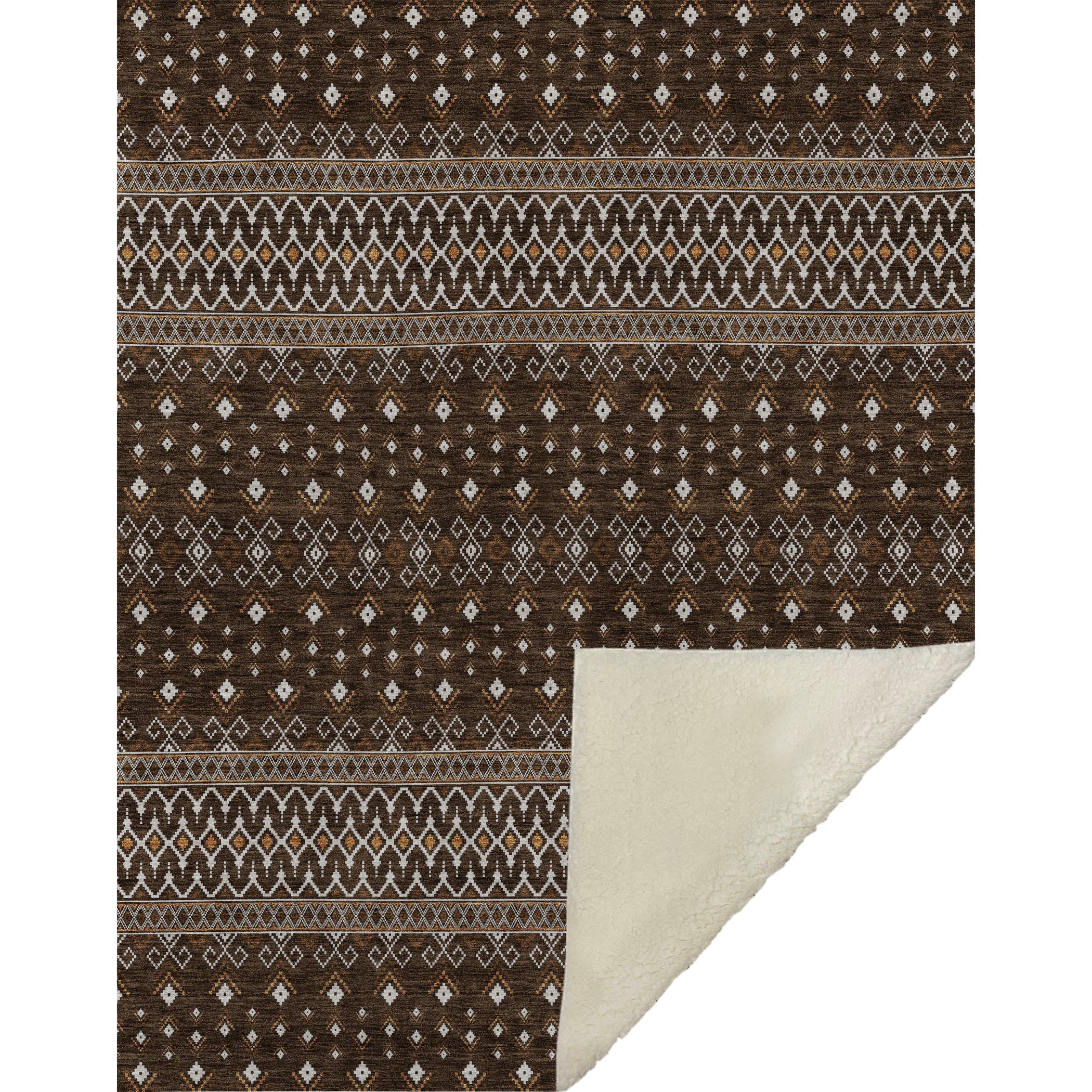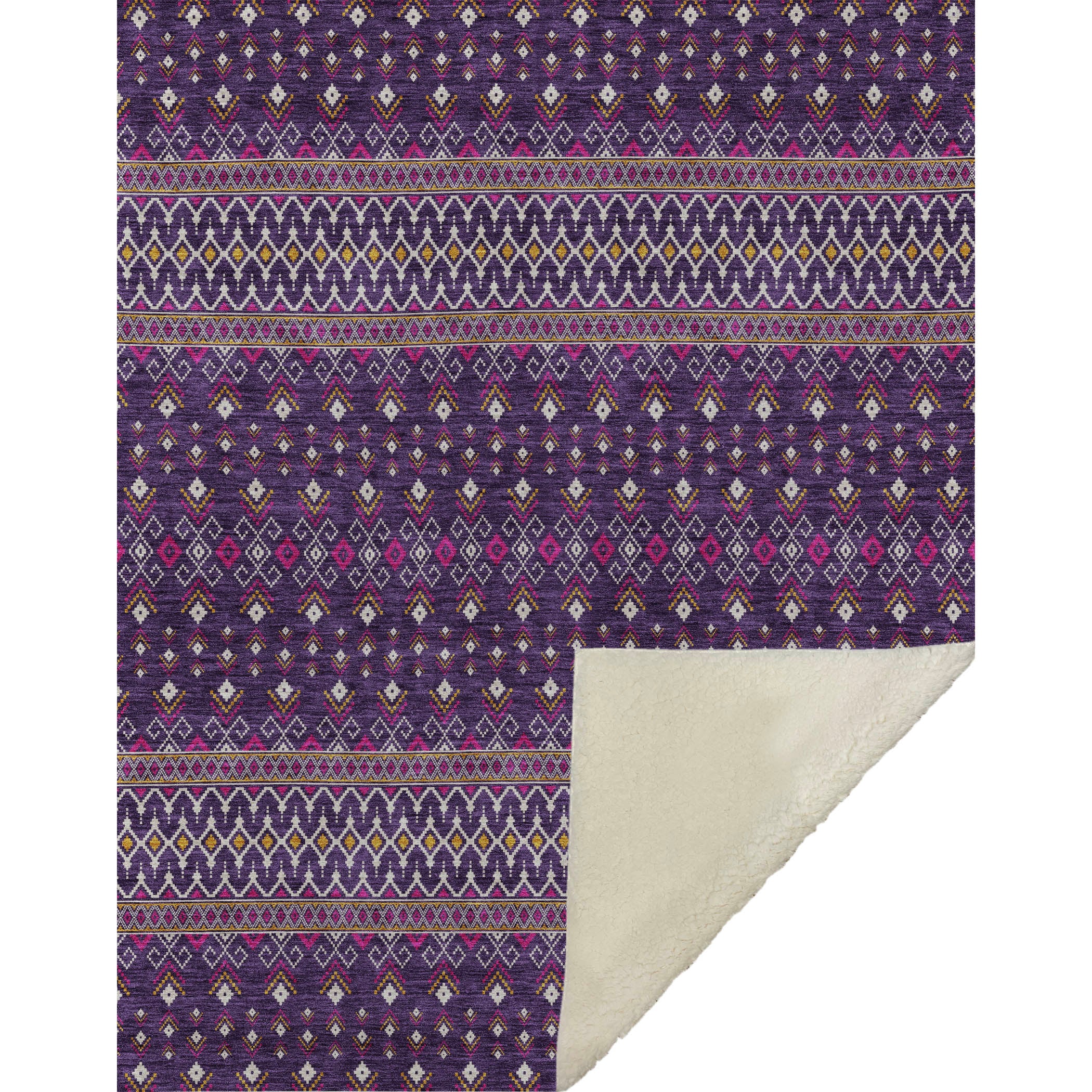 Discover the bohemian allure of intricate diamond patterns that effortlessly blend into any decor, modern or classic. This transitional style piece, generously sized at 50" x 70", boasts an irresistibly soft-touch front complemented by a cozy sherpa backing, crafted from fade-resistant polyester microfiber, making it a durable option for both indoor and covered outdoor use. With its premium machine washable feature, maintaining its luxurious feel and vibrant design is effortlessly easy.