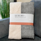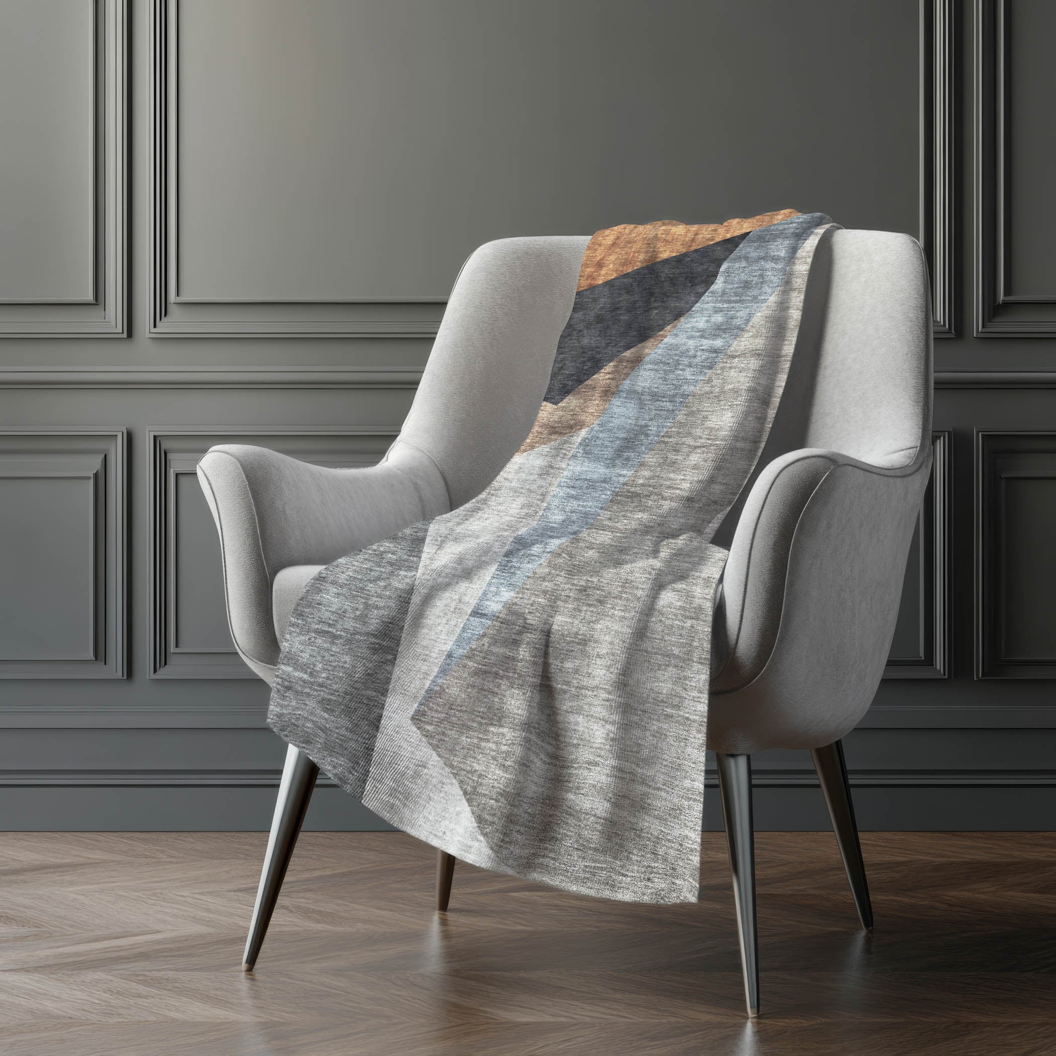 Embrace the allure of Art Deco flair with modern shapes creating a transitional masterpiece. The oversized dimensions of 50" x 70" provide a luxurious embrace with a soft-touch front and sherpa backing for warmth. Constructed from fade-resistant polyester microfiber, it offers versatility indoors and in covered outdoor areas, while being premium machine washable for effortless maintenance.