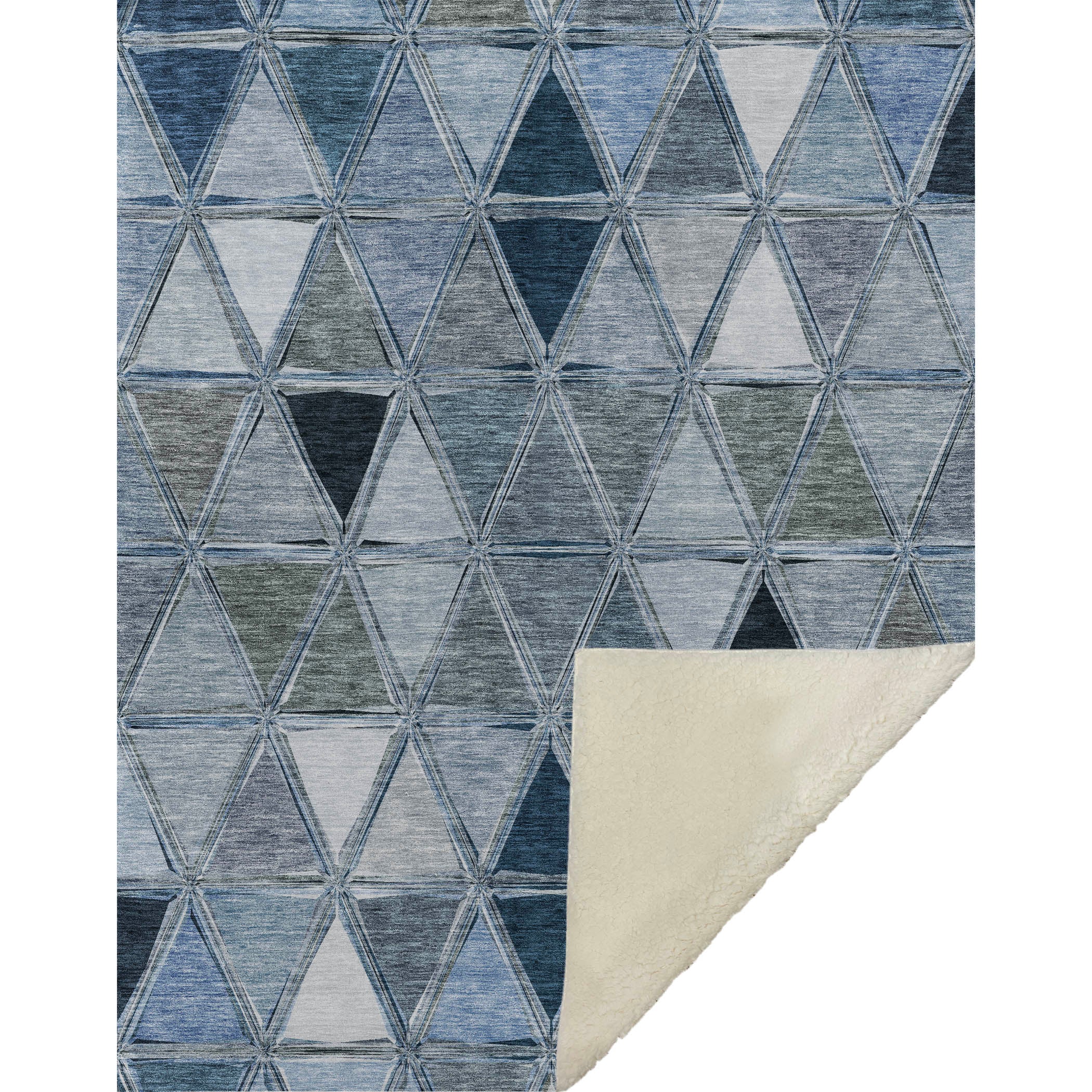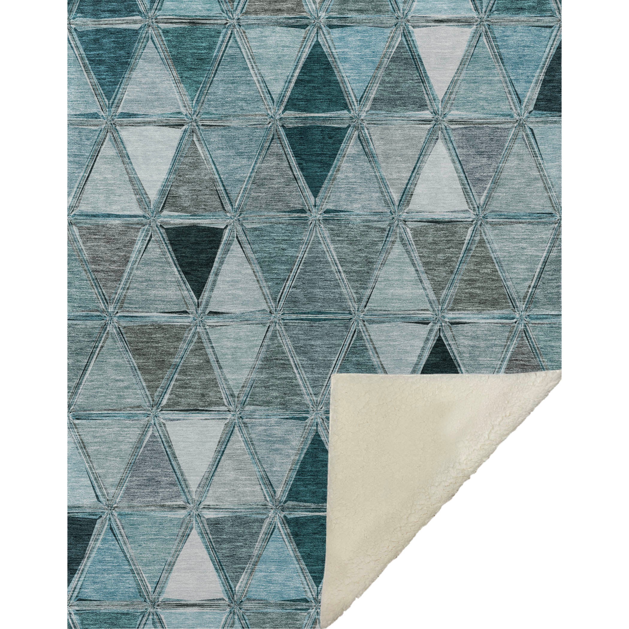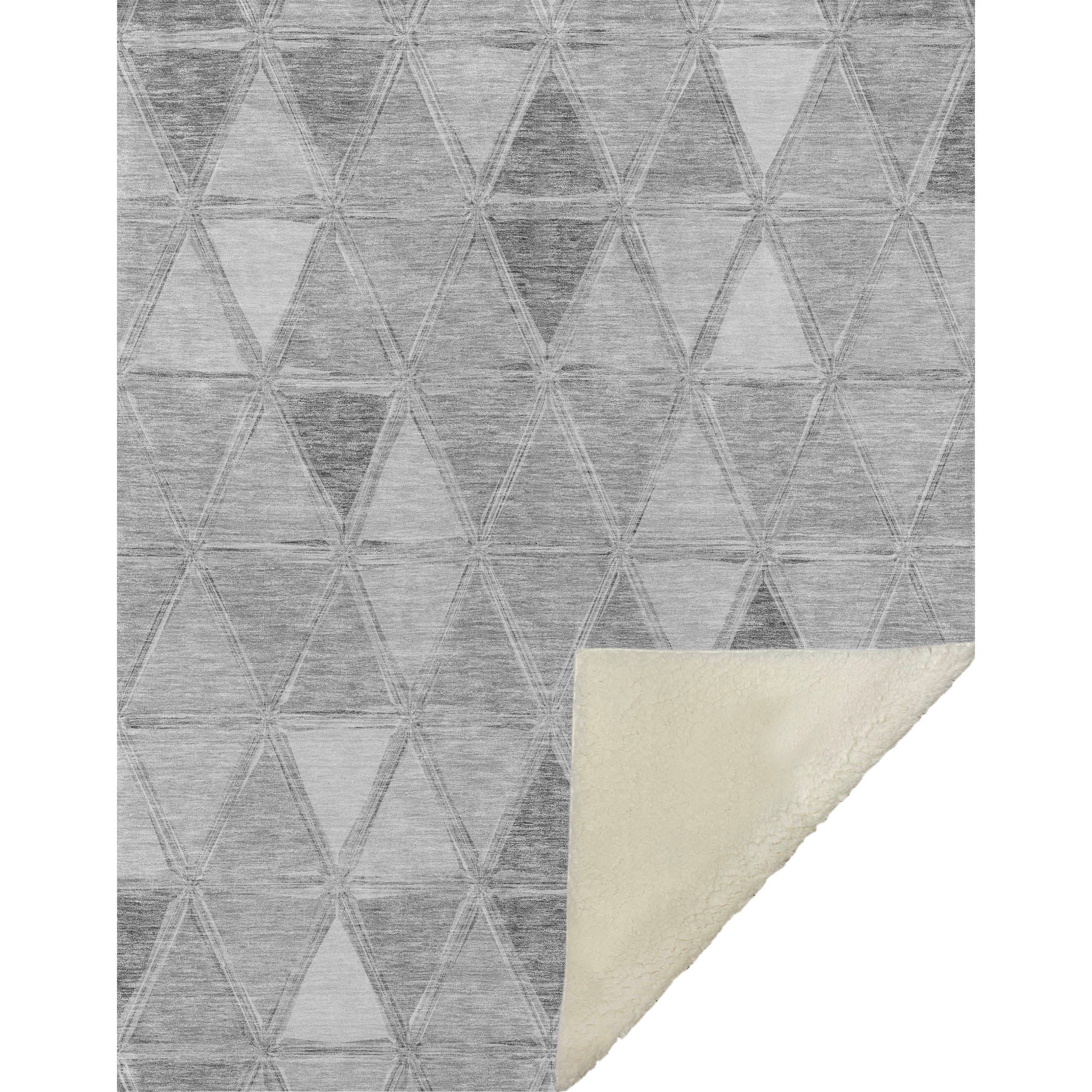 Embrace the modern artistry of geometric patterns within a transitional style, as mirrored triangles create a striking horizontal alignment. Oversized at 50" x 70", it offers a sumptuously soft-touch front paired with a warm sherpa backing, ensuring ultimate comfort. Designed from fade-resistant polyester microfiber, it's crafted for both indoor and covered outdoor areas, with the simplicity of premium machine washable care.