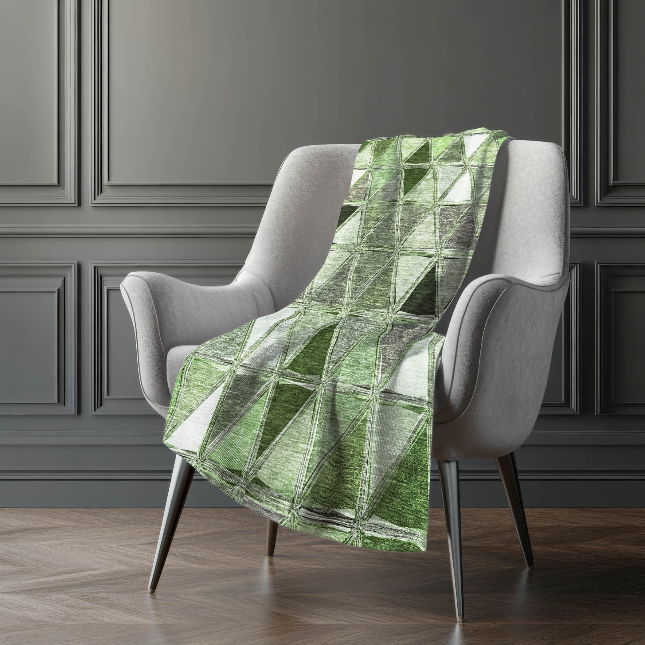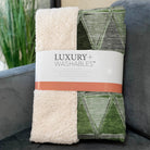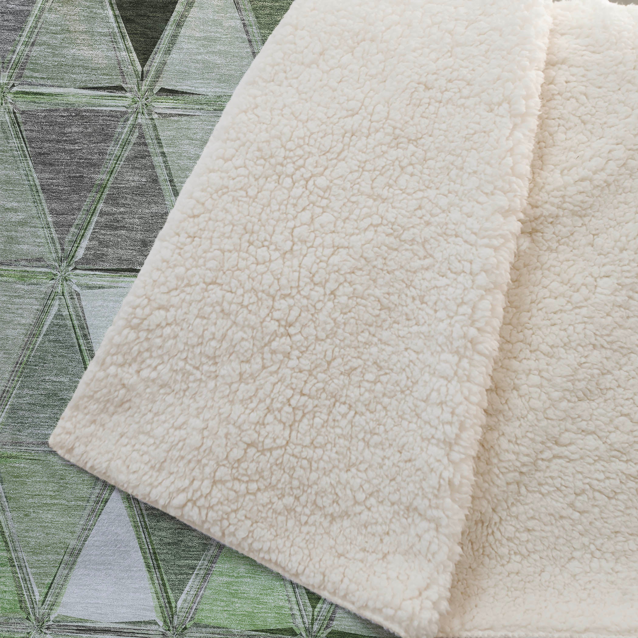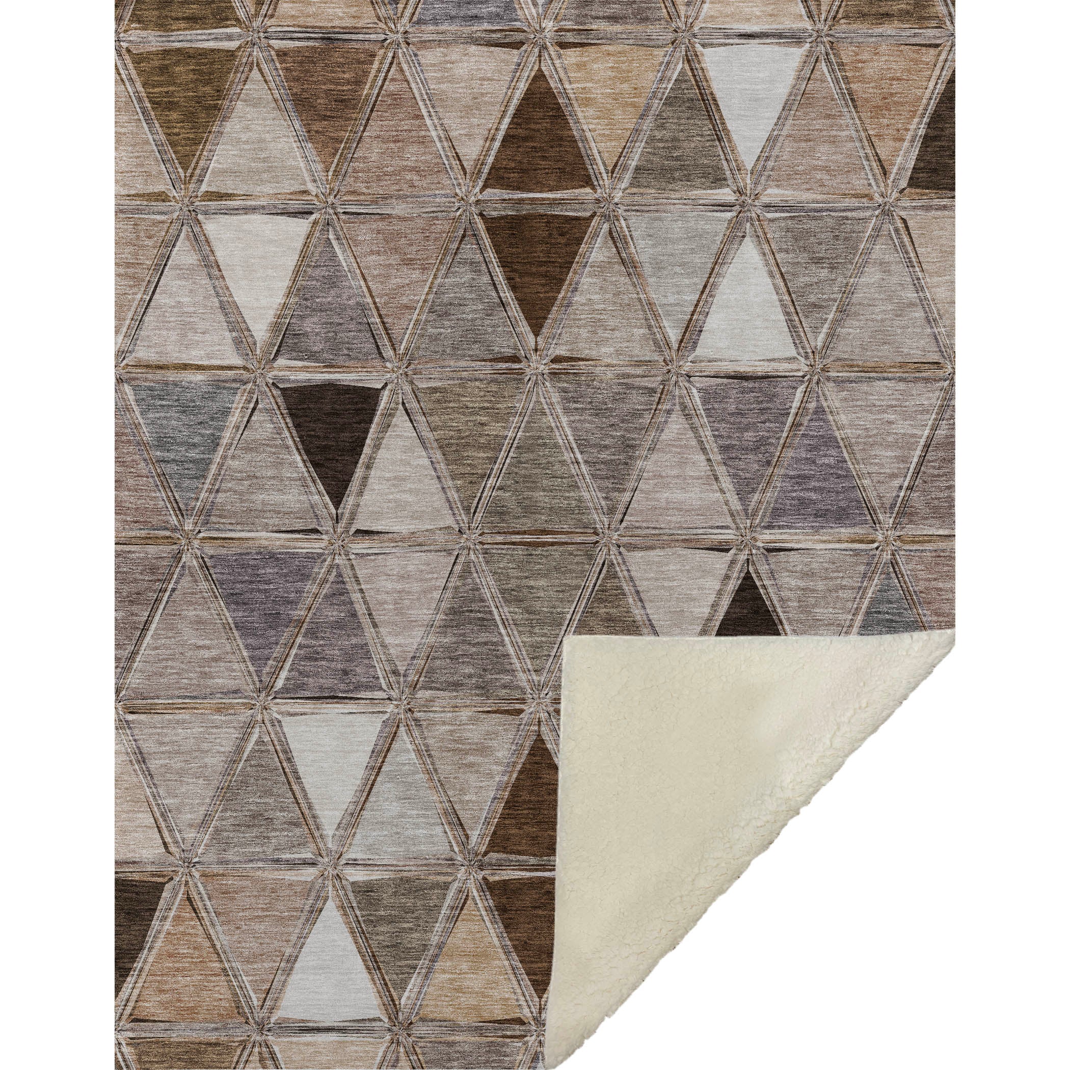 Embrace the modern artistry of geometric patterns within a transitional style, as mirrored triangles create a striking horizontal alignment. Oversized at 50" x 70", it offers a sumptuously soft-touch front paired with a warm sherpa backing, ensuring ultimate comfort. Designed from fade-resistant polyester microfiber, it's crafted for both indoor and covered outdoor areas, with the simplicity of premium machine washable care.
