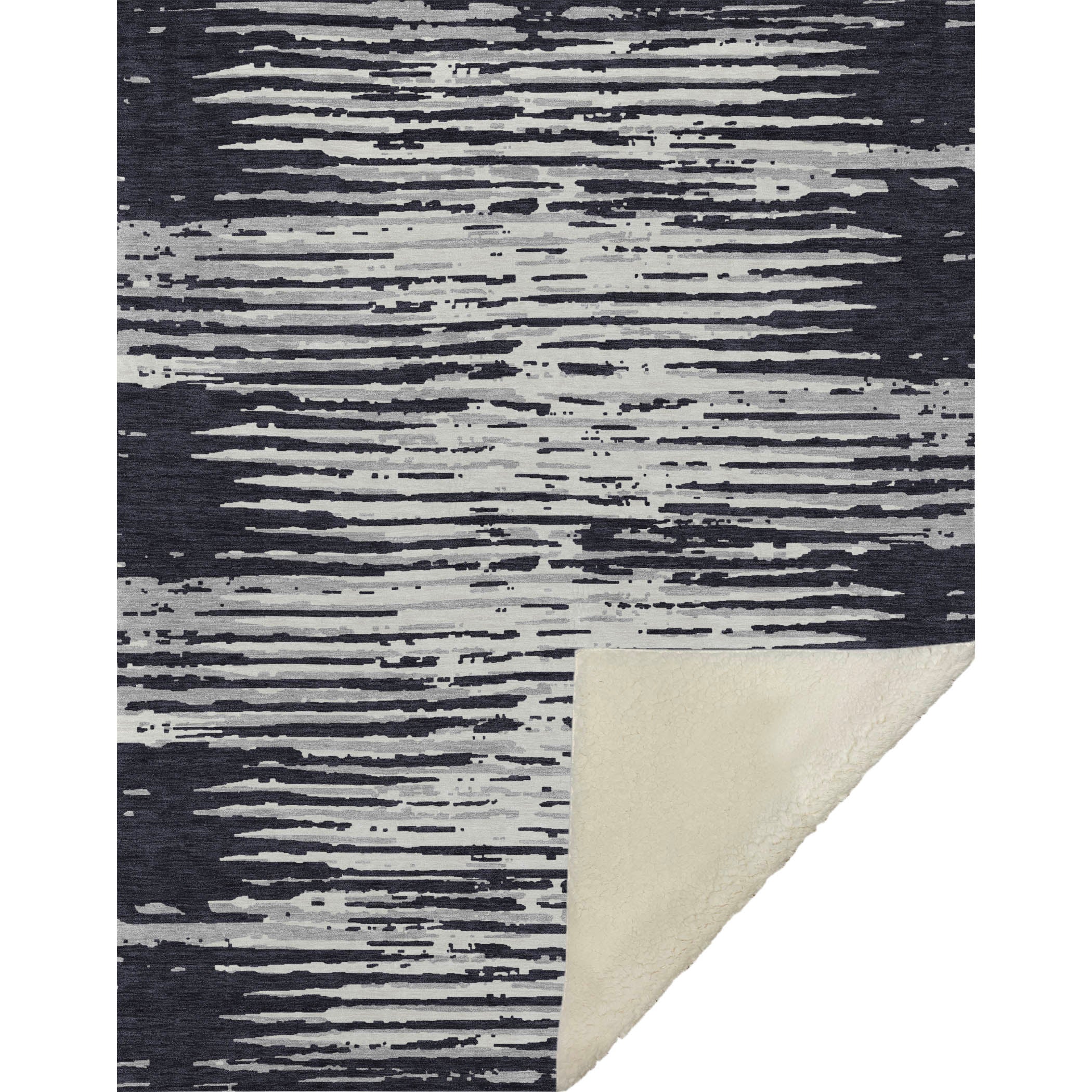 Embrace the charm of our oversized 50" x 70" masterpiece, where horizontal stripes intertwine with modern elements to create a transitional style that captures the essence of contemporary comfort. Revel in the luxuriously soft-touch front paired with a warm sherpa backing, providing an unrivaled cocoon of coziness. Thoughtfully crafted from fade-resistant polyester microfiber, this treasure is ideal for both indoor and covered outdoor spaces, and its Premium Machine Washable feature ensures effortless maintenance.