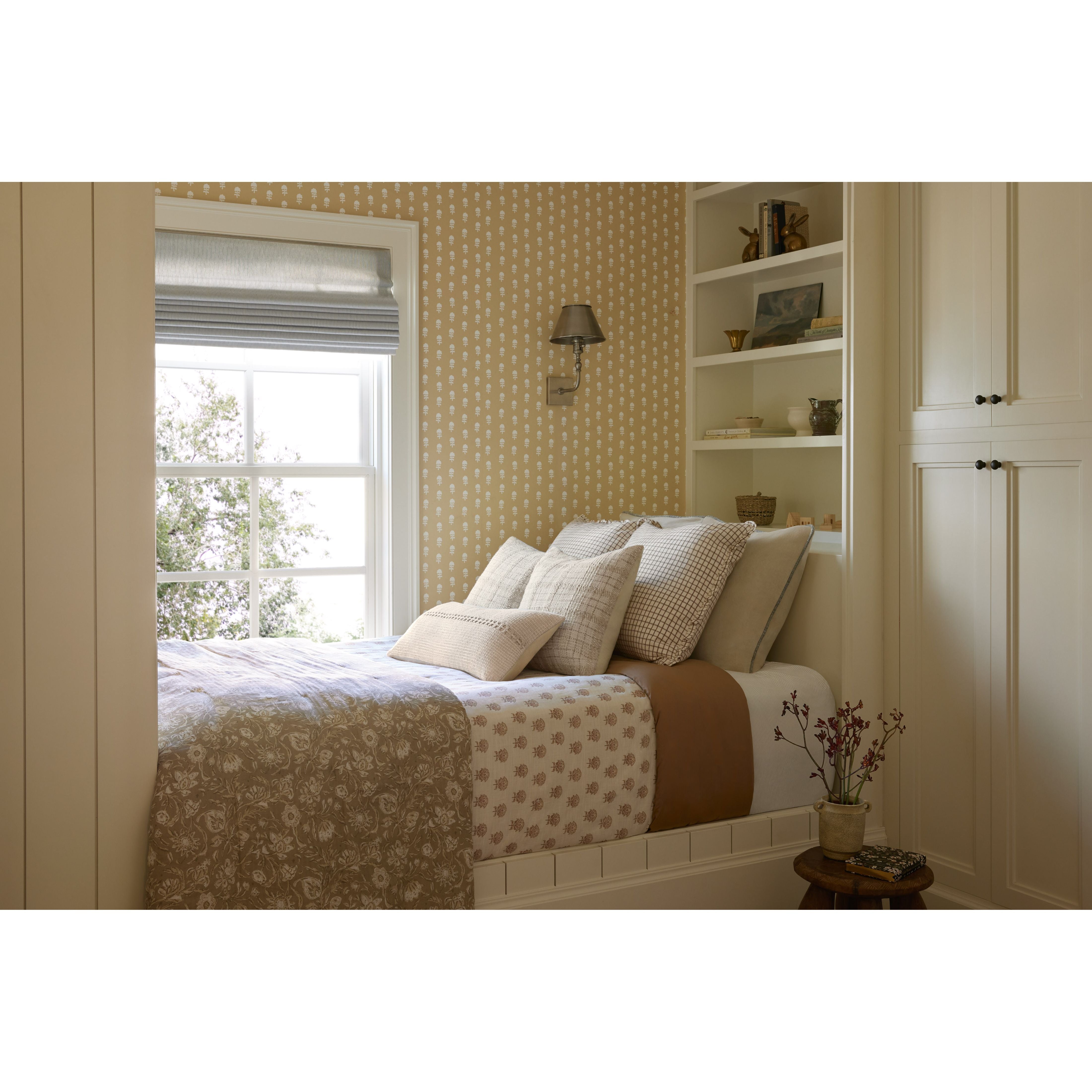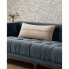 Harvey is a neutral ivory throw pillow from Chris Loves Julia x Loloi with a textured, woven stripe across its center. The pillow cover is made of cotton and other materials and measures 12” x 27”, an elongated lumbar size to style in living rooms and bedrooms.