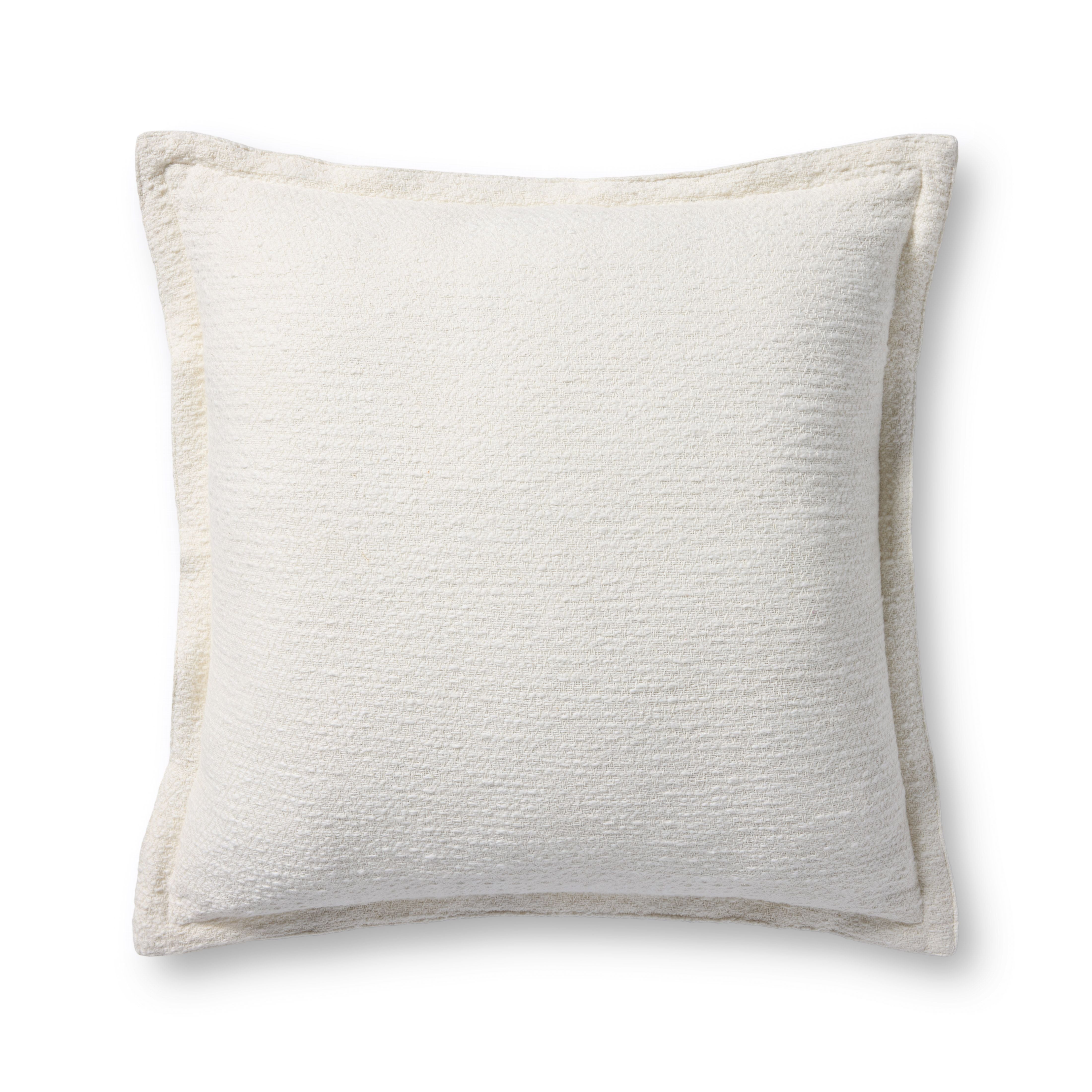 Morris is an ivory throw pillow from Chris Loves Julia x Loloi with a soft, nubby texture and flange edges. The pillow cover is made of 100% cotton and measures 22” x 22”, a versatile size to style in living rooms and bedrooms.