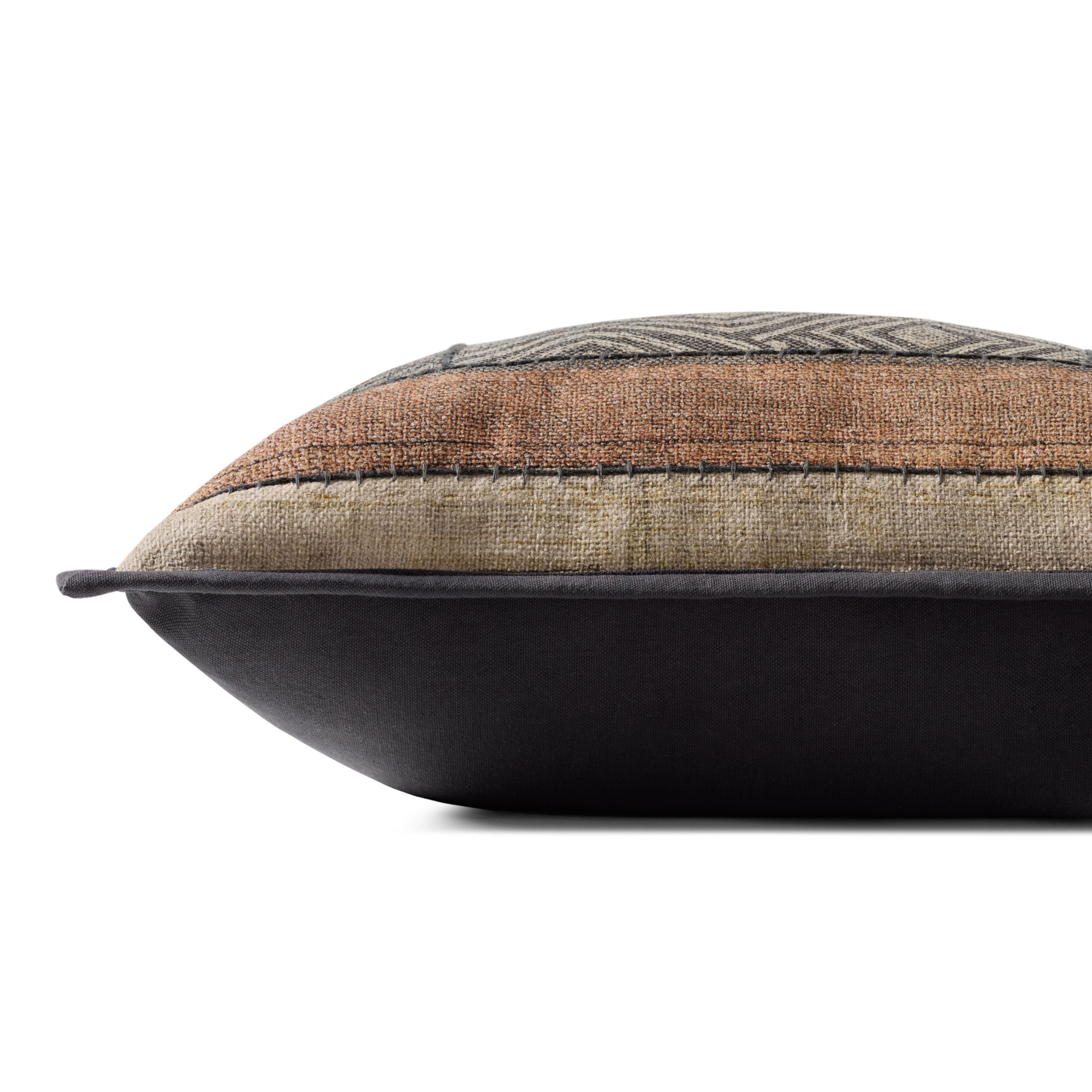 This earth-toned throw pillow features a geometric pattern inspired by vintage textile designs, a timeless accent for traditional, farmhouse, or boho home decor, among other classic styles. The 18” x 18” square pillow is made of polyester, cotton, and rayon in India.