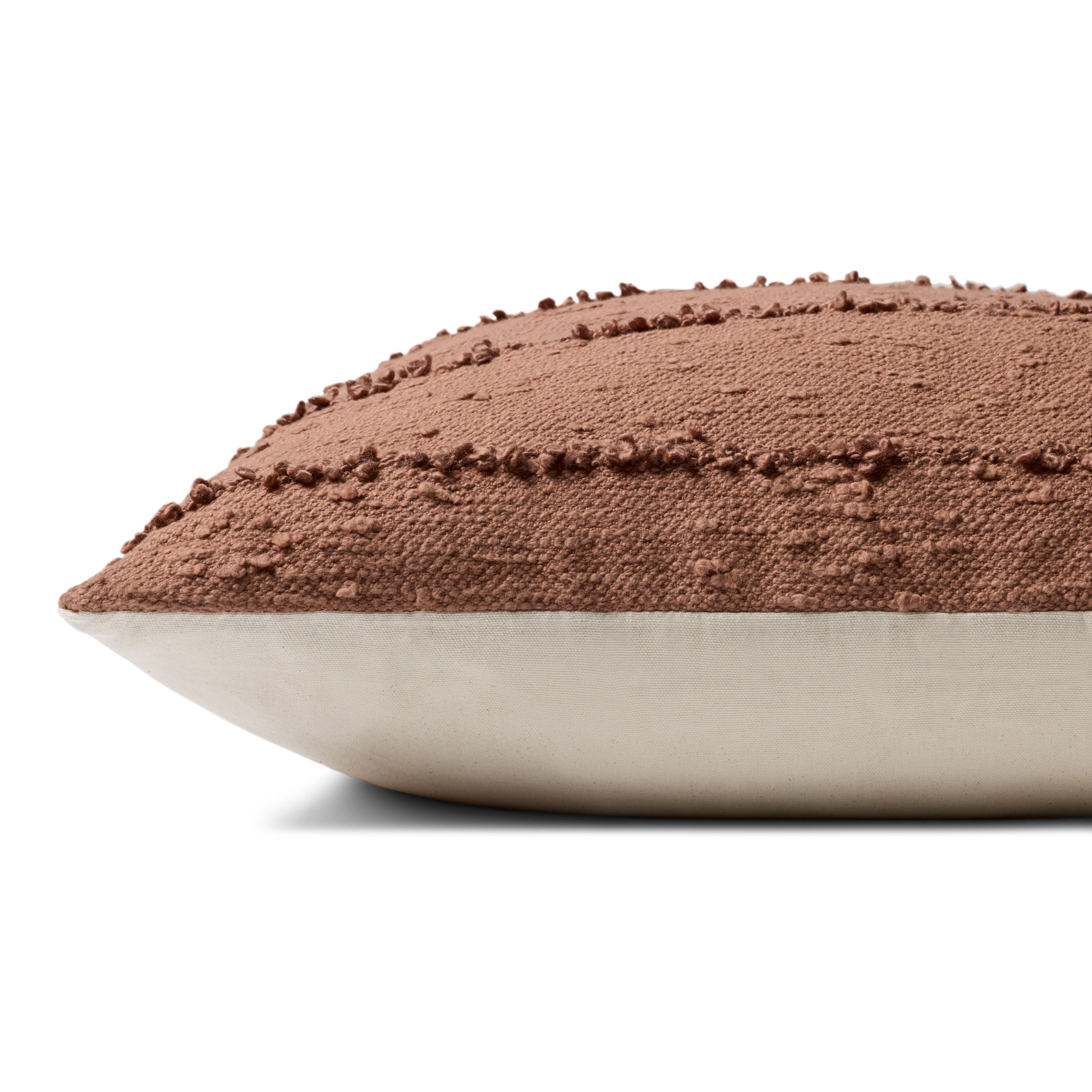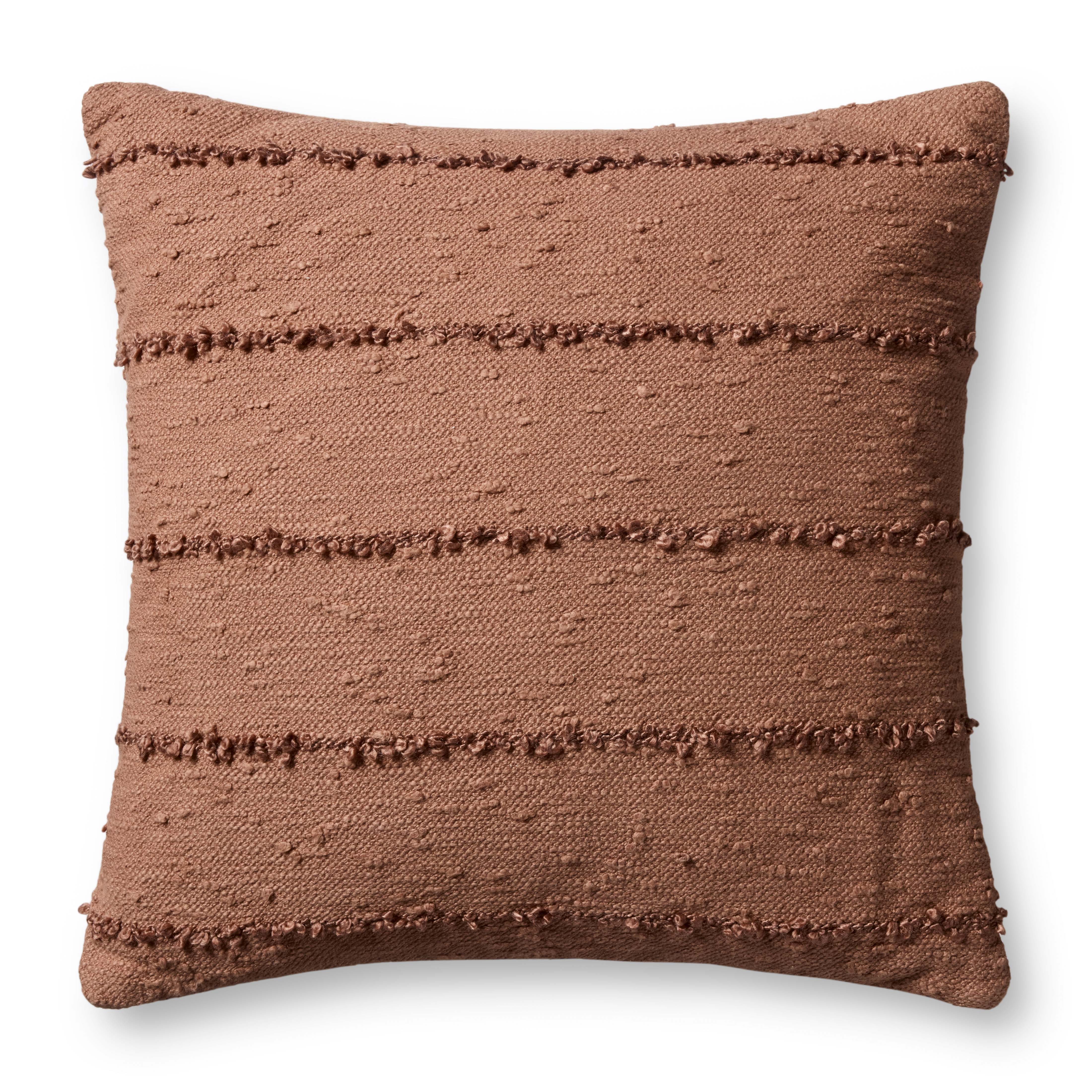This rustic brown throw pillow with raised stripes adds cozy, inviting texture to living rooms, bedrooms, and more. The 26” x 26” square pillow is hand-woven in India of cotton and polyester.