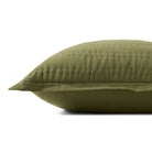 This delicate green throw pillow with subtle stitched stripes and flange edges is a versatile accent for living rooms, bedrooms, and more. The 22” x 22” square pillow is woven in India of linen and cotton.