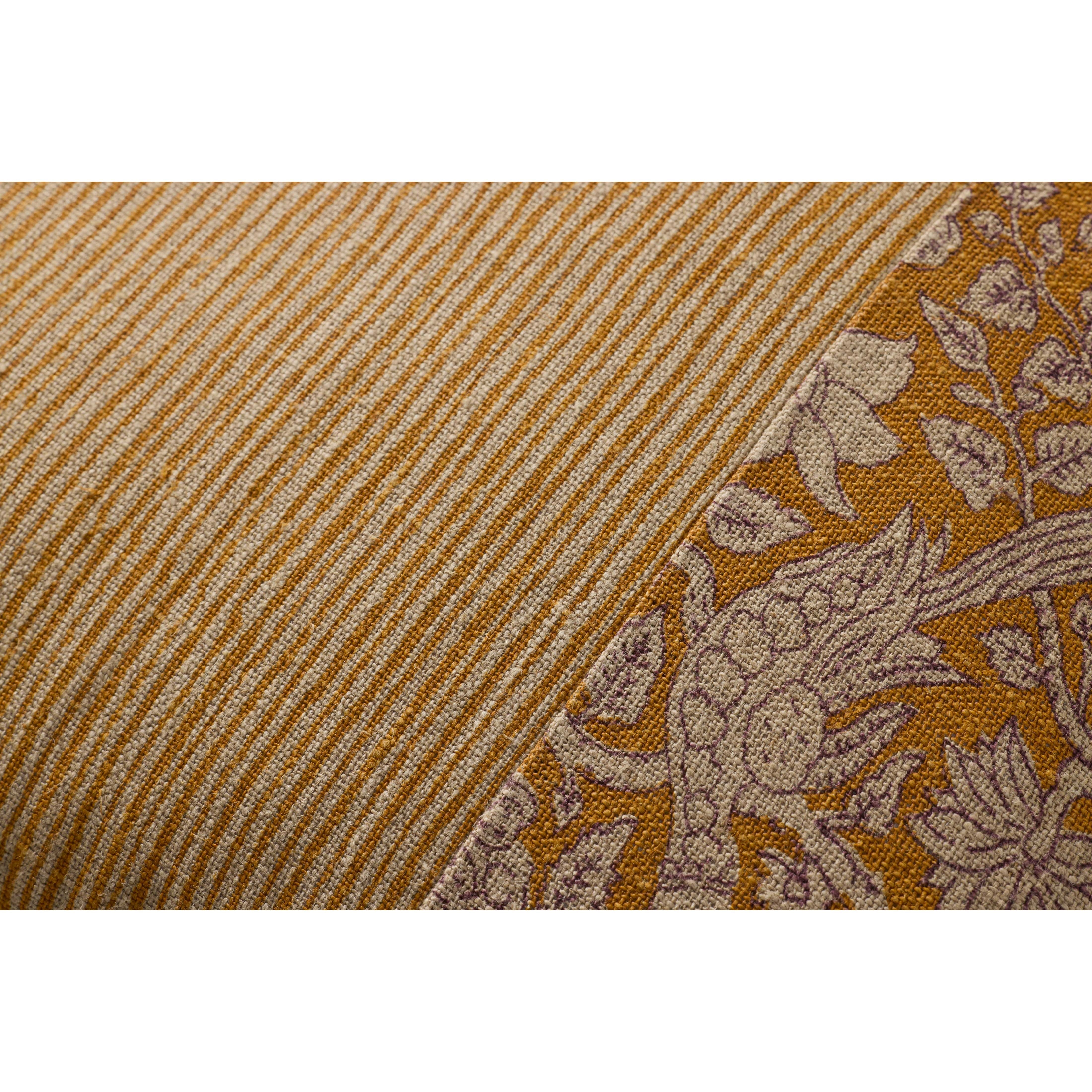 This beautiful linen throw pillow features a mustard yellow floral design based on classic Indian blockprinted fabrics, an elegant accent piece for living rooms, bedrooms, and more. The 18” x 18” square pillow is woven in India of 100% linen and has stitched flange edges.