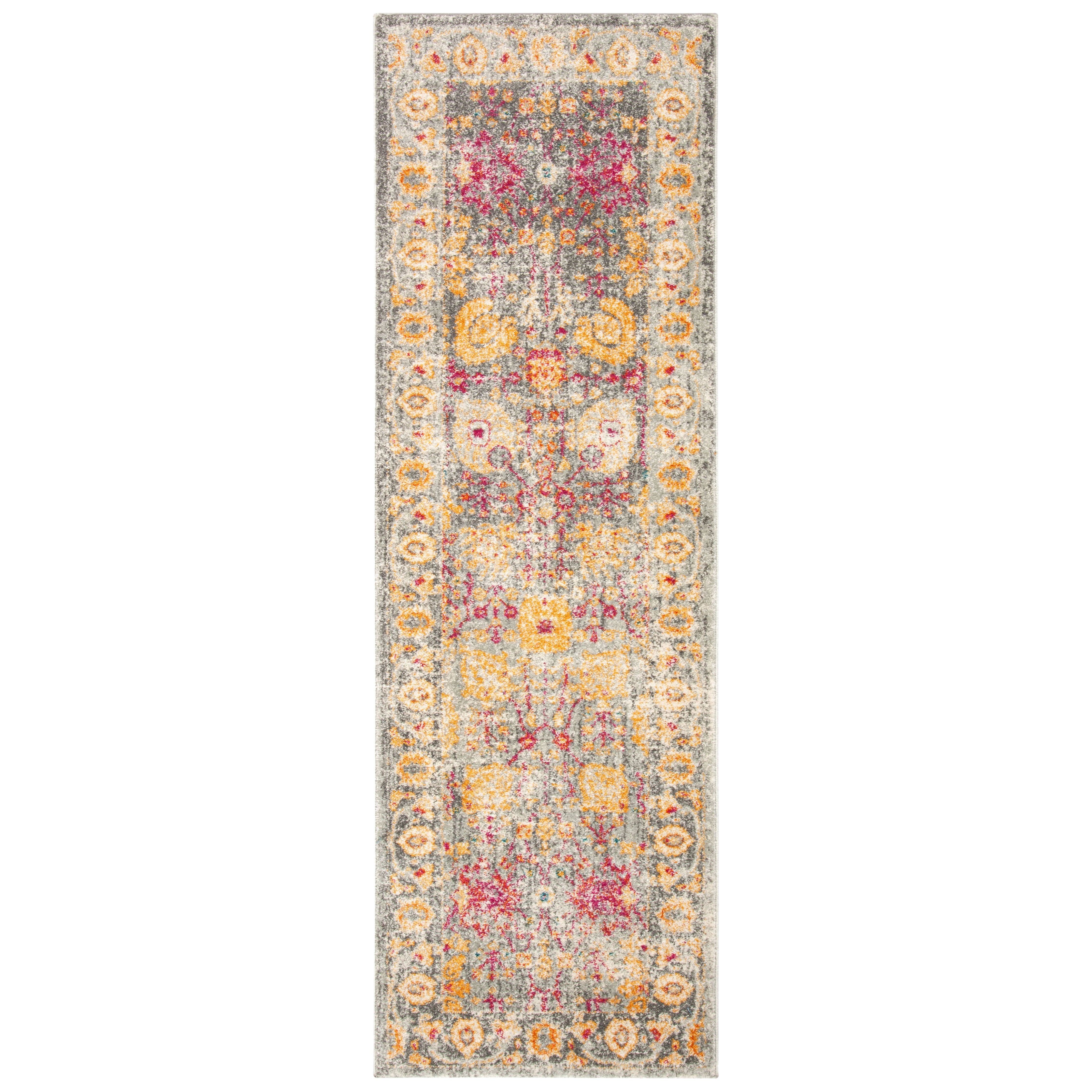 Granada GRA350B Light Grey Multi, a stunning addition to your home decor. This rug from Safavieh's Evoke collection showcases a blend of trendy patterns, soothing colors, and luxurious texture. Crafted with high-twist polypropylene yarns using power-loom technology, these rugs are not only stylish but also durable and low-maintenance.