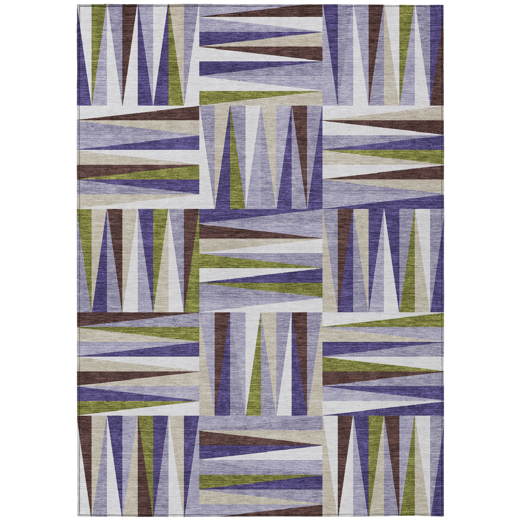 Elevate your home decor with our elegant area rug, showcasing square panels highlighted by two-toned arrow points in each, creating a striking visual effect. The transitional style of this rug makes it a versatile addition to any setting, seamlessly integrating with various interior themes. It is UV stabilized to withstand the elements, features ultra-thin construction for high-traffic areas, and is machine-washable, ensuring it remains a durable choice for busy, pet-friendly households.