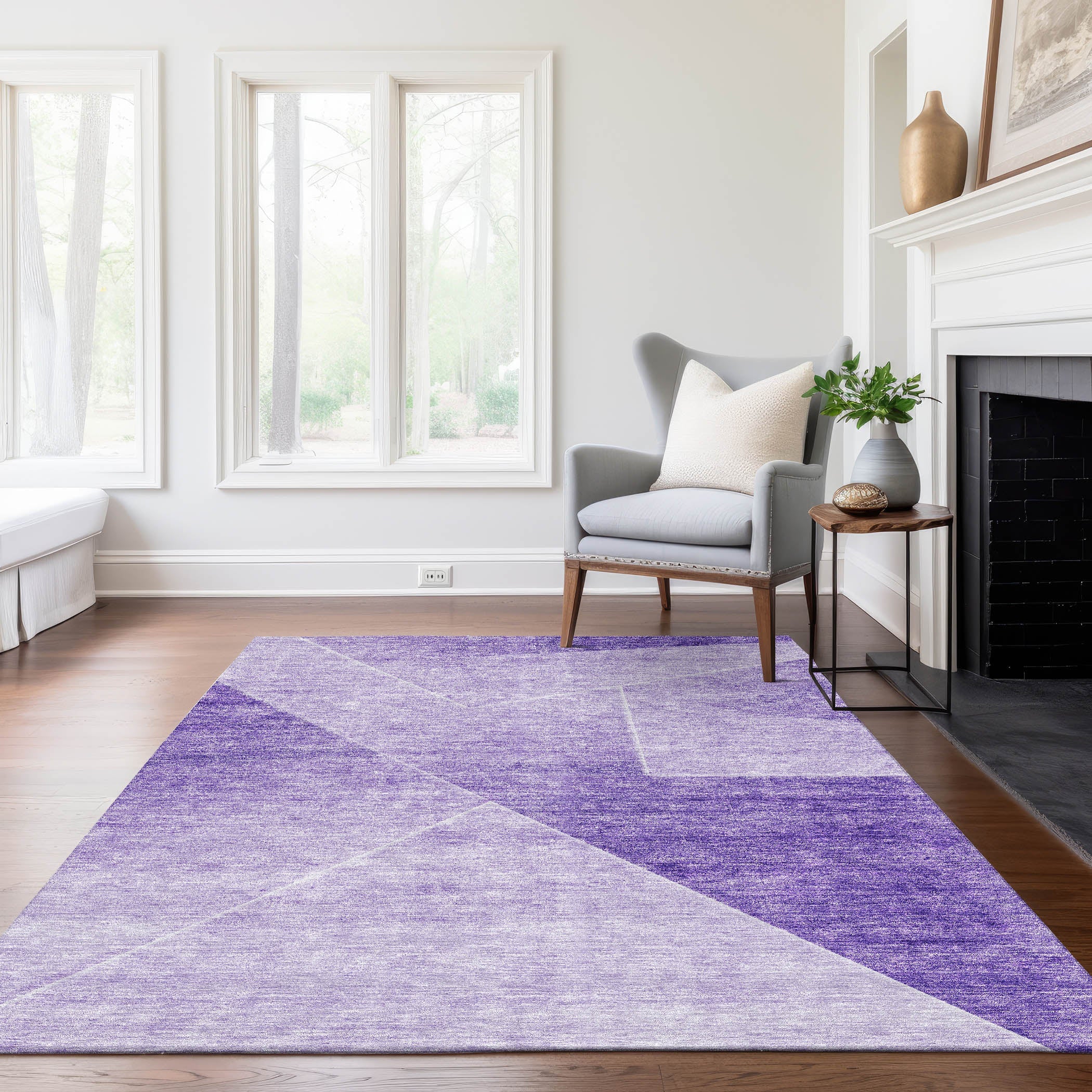 Chantille ACN779 Purple rug, a stylish addition to any room. Its modern pattern, with straight angle shapes, showcases transitional design beautifully. The precise geometry of the design brings a sophisticated and contemporary touch to your space. This rug is not only visually appealing but also practical - UV stabilized for lasting color, ultra-thin for a sleek look, and machine-washable for easy maintenance. Perfect for busy households with pets and children, this rug combines style and functionality effortlessly.