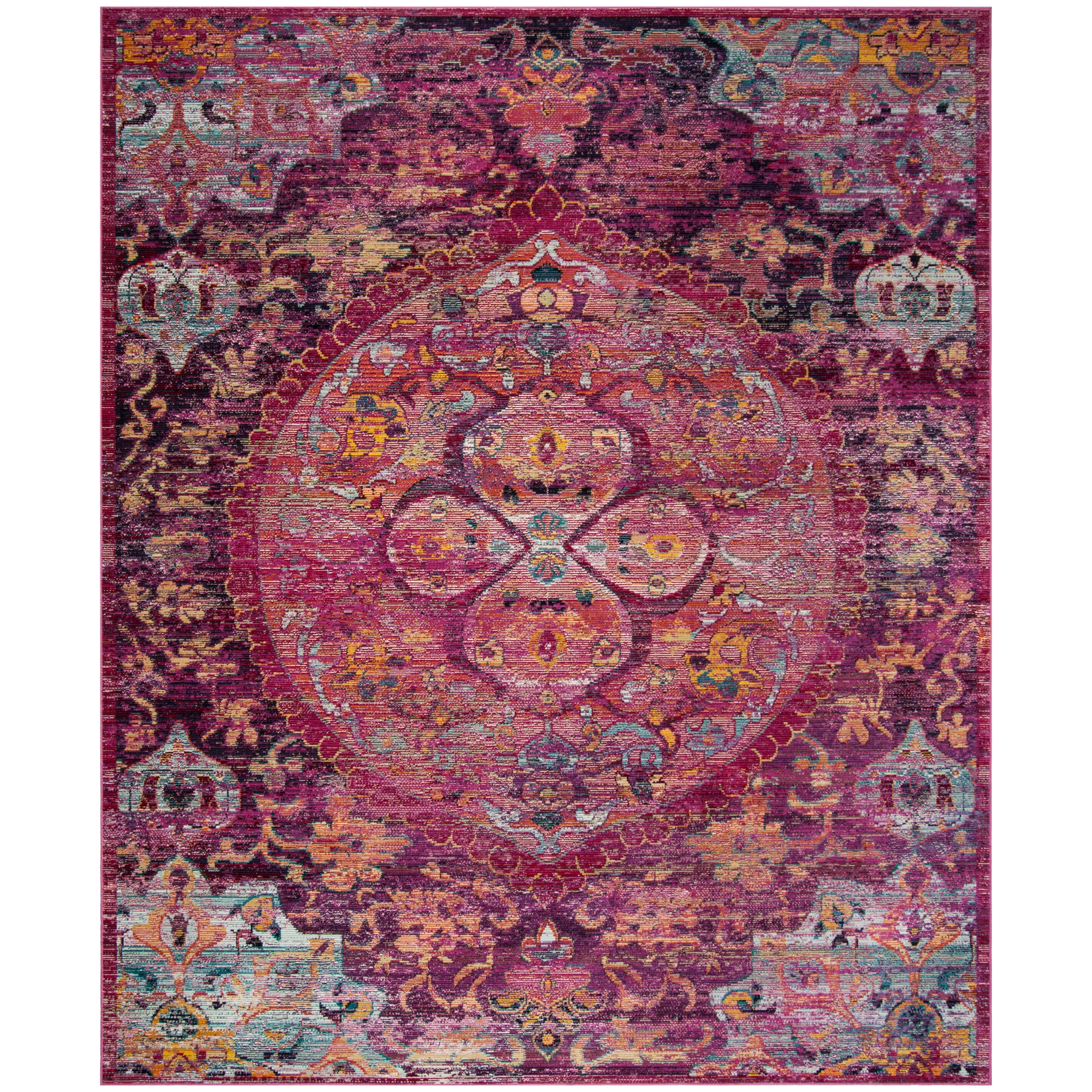 Elevate your living space with the Crystal CRS512S Fuchsia Purple rug from SAFAVIEH's Crystal Collection. This collection blends traditional Oriental motifs with contemporary abstract designs to bring a touch of boho chic to your home decor. Crafted from durable polypropylene fibers, these rugs are perfect for high-traffic areas, offering both style and functionality. With a thickness of approximately 0.25 inches, this rug adds texture and warmth to any room.