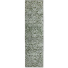 Livigno 1244 Green area rug, a stunning addition to elevate your living space effortlessly. This exquisite rug features an elegant transitional pattern that offers timeless appeal, seamlessly blending with various interior design styles. The densely woven pile ensures outstanding pattern clarity and design definition, showcasing a broken medallion design in a range of beautiful colors including cream, beige, grey, green, and blue. The neutral hues incorporated in the rug's design effortlessly complement any existing color scheme, creating a captivating visual effect that adds depth and texture to your home.