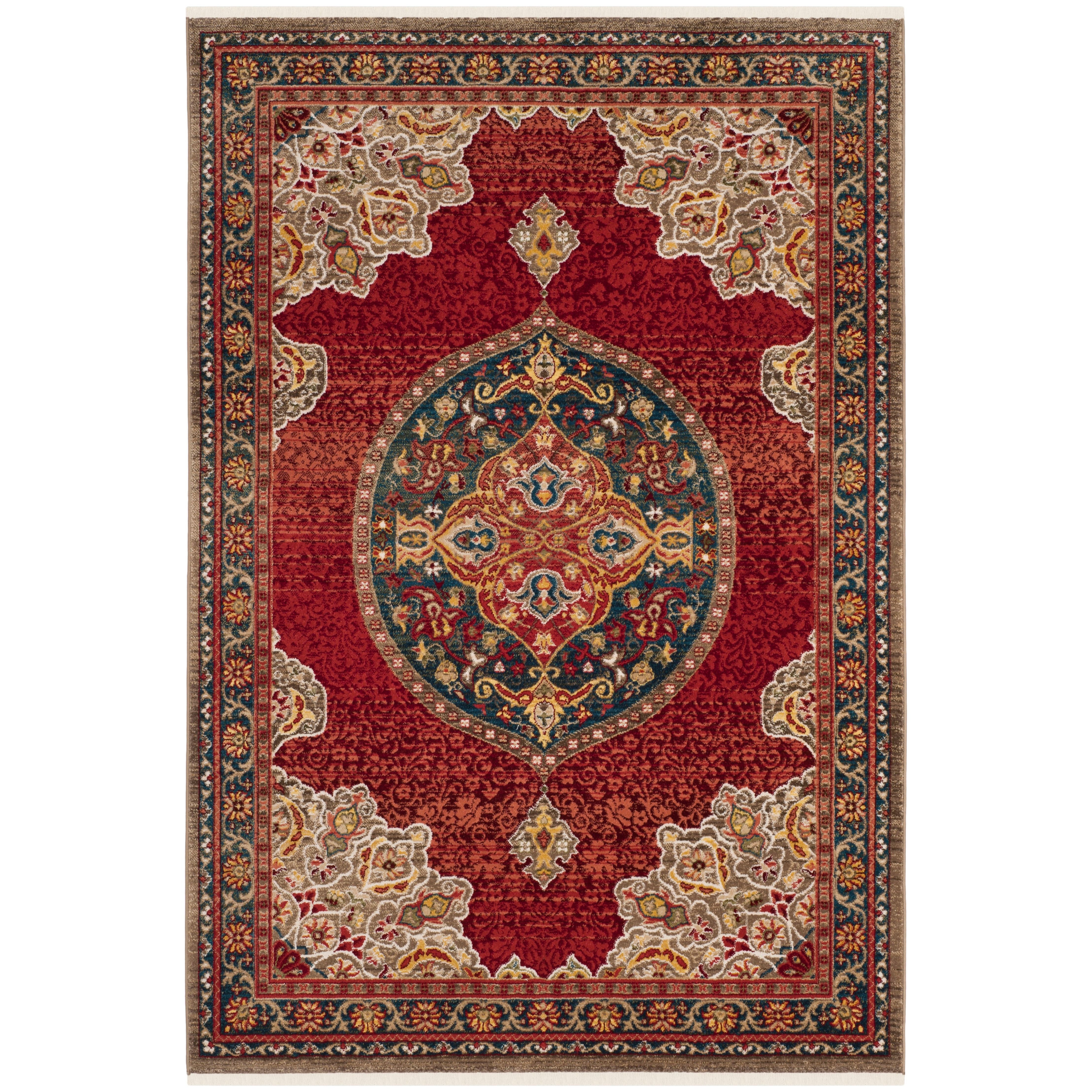 Kashan KSN302F Red Blue rug from Safavieh, blending traditional Persian motifs with modern style. This collection offers a fresh twist on classic designs, featuring vibrant red and blue hues. Crafted with easy-care materials, these rugs are perfect for busy households looking to add a touch of elegance to their space.