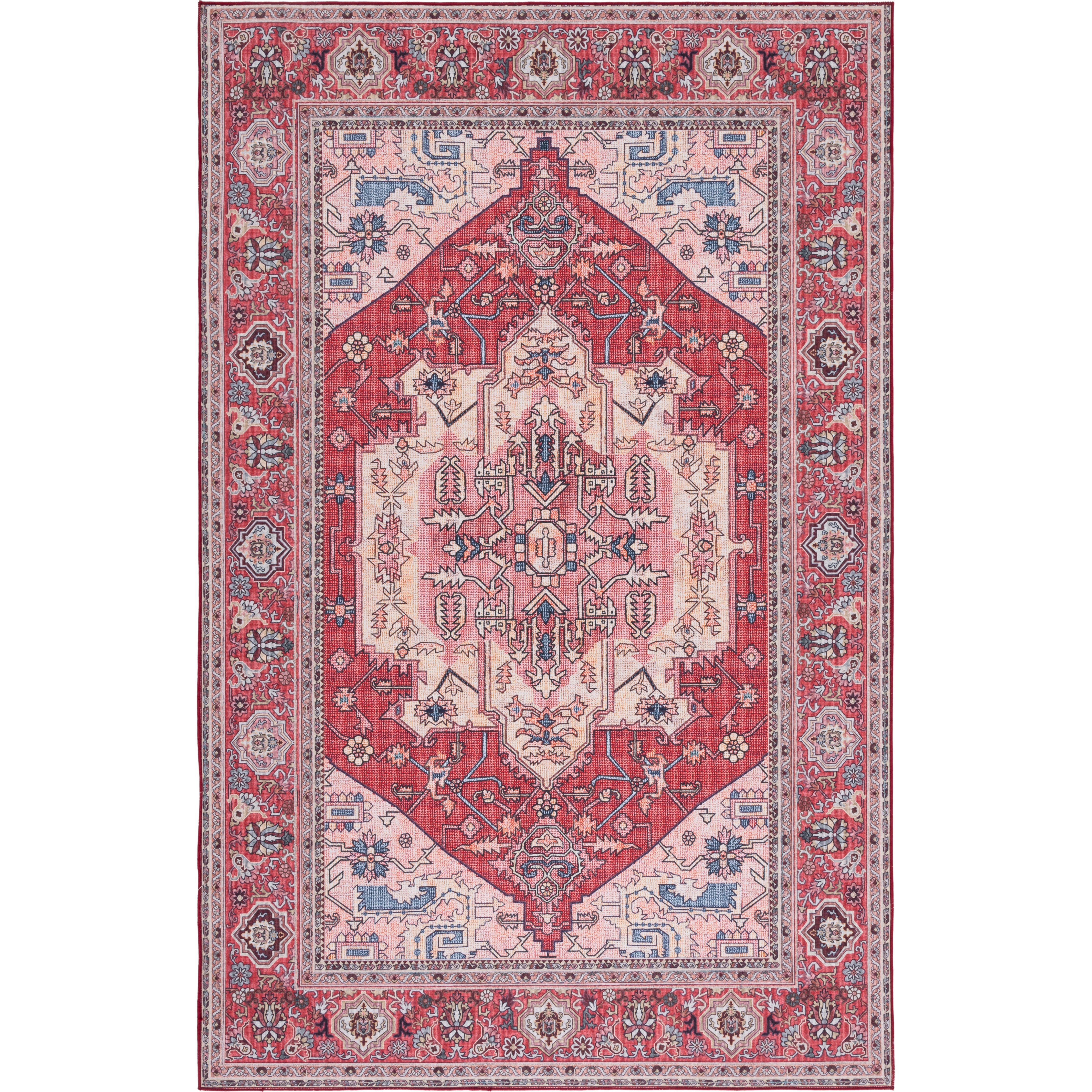 Transform your living space with the Tucson TSN139R rug from the Tucson Collection. Featuring elegant traditional patterns with a modern twist, this rug offers easy maintenance with machine washable fibers and a non-slip backing for added convenience. Ideal for various rooms such as the bedroom, dining room, living room, kid’s room, or home office, this rug has a thickness of approximately 0.25 inches.