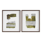 Give your design project an elevated edge with this set of collage style framed wall art. Cotton canvas and rice paper come together in perfect harmony, blending texture, shape and neutral tones for a modern impact. Each black oak-framed piece sits under glass to deliver a high-end look to any space.