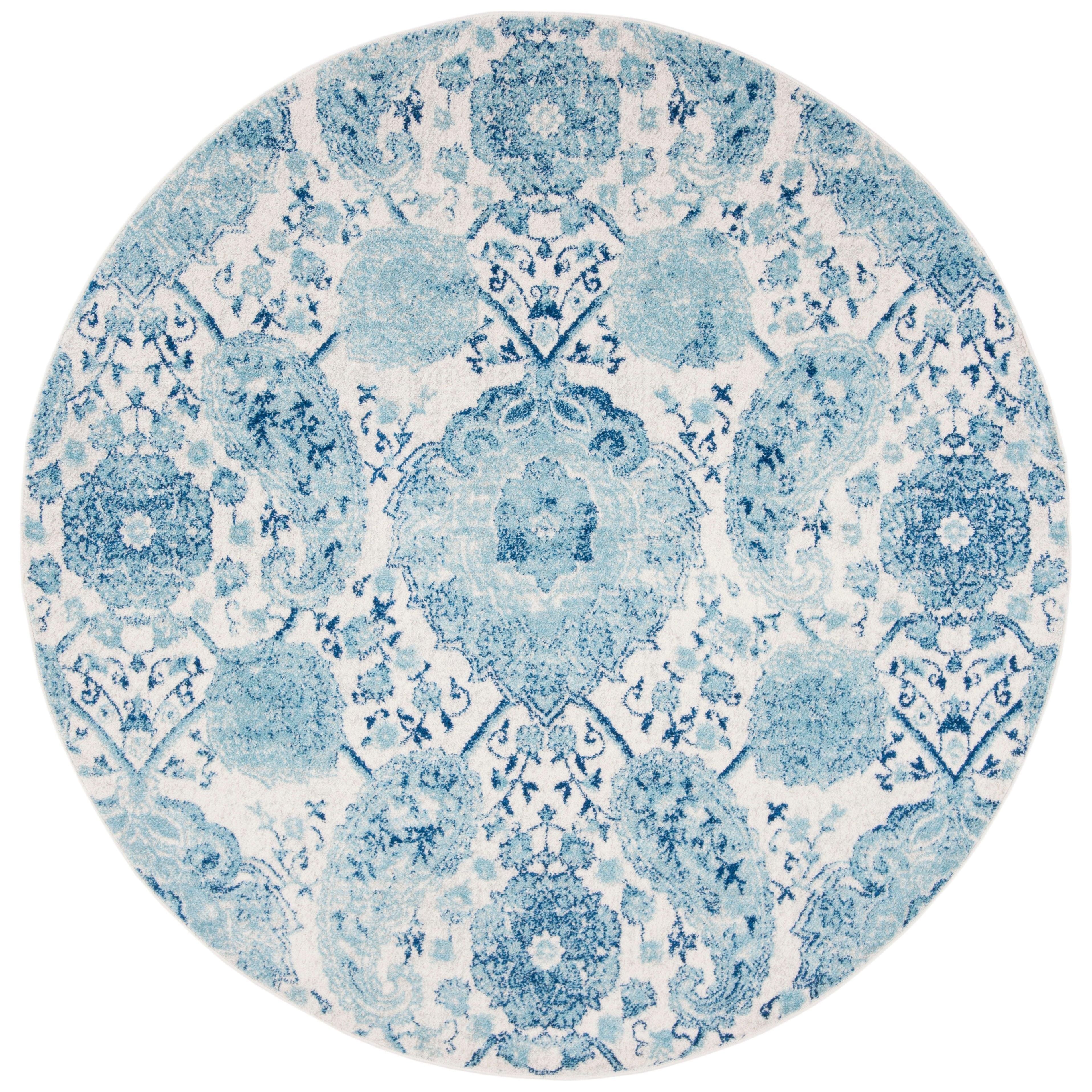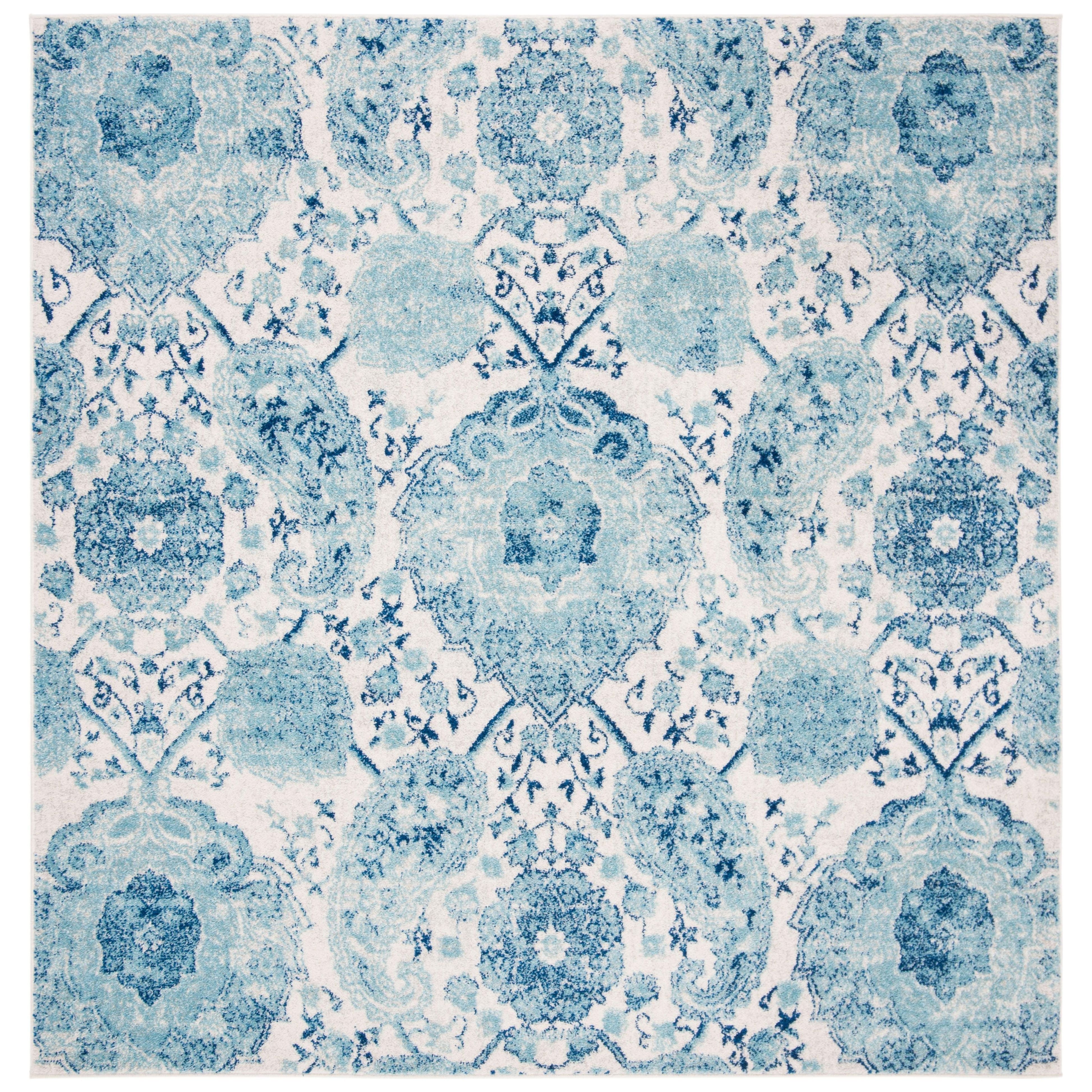 Madison MAD600E Cream Turquoise rug from SAFAVIEH’s Madison Collection, showcasing a charming paisley and fleurette pattern for a touch of vibrant elegance. Available in various sizes and colors, this rug complements bohemian, contemporary, or transitional decor styles with ease. Crafted from a blend of enhanced polypropylene and soft polyester fibers, it offers a luxurious sheen while being durable enough for high-traffic areas like entryways or under furniture, boasting a thickness of approximately 0.375 inches.