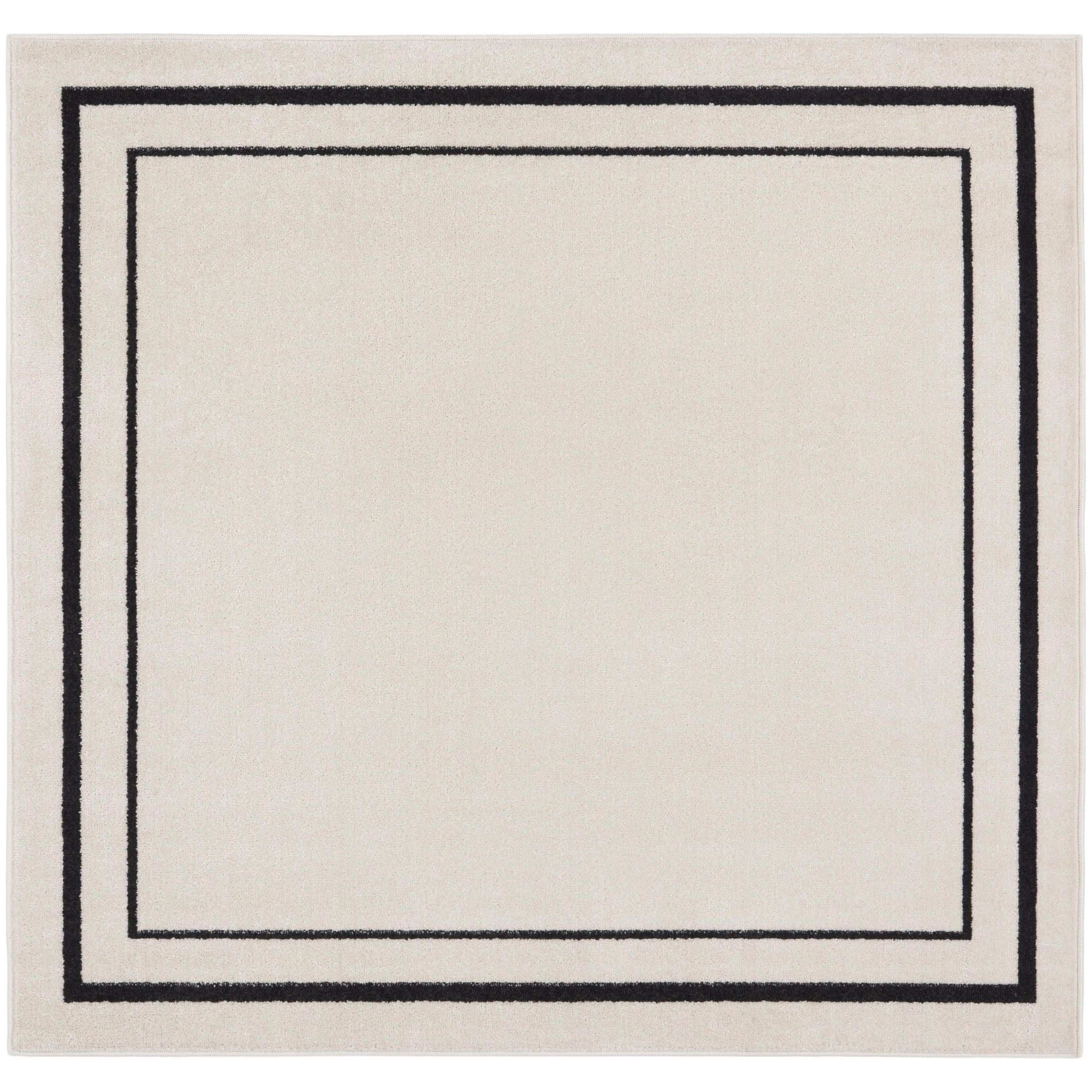 Nourison Essentials NRE02 Ivory Black, a versatile outdoor rug designed to complement busy, active lifestyles. Crafted with durability and style in mind, this collection offers solid color and patterned options that can withstand heavy traffic without compromising on aesthetics. The low cut pile ensures easy maintenance and a soft texture that is gentle on your feet and perfect for kids and pets.