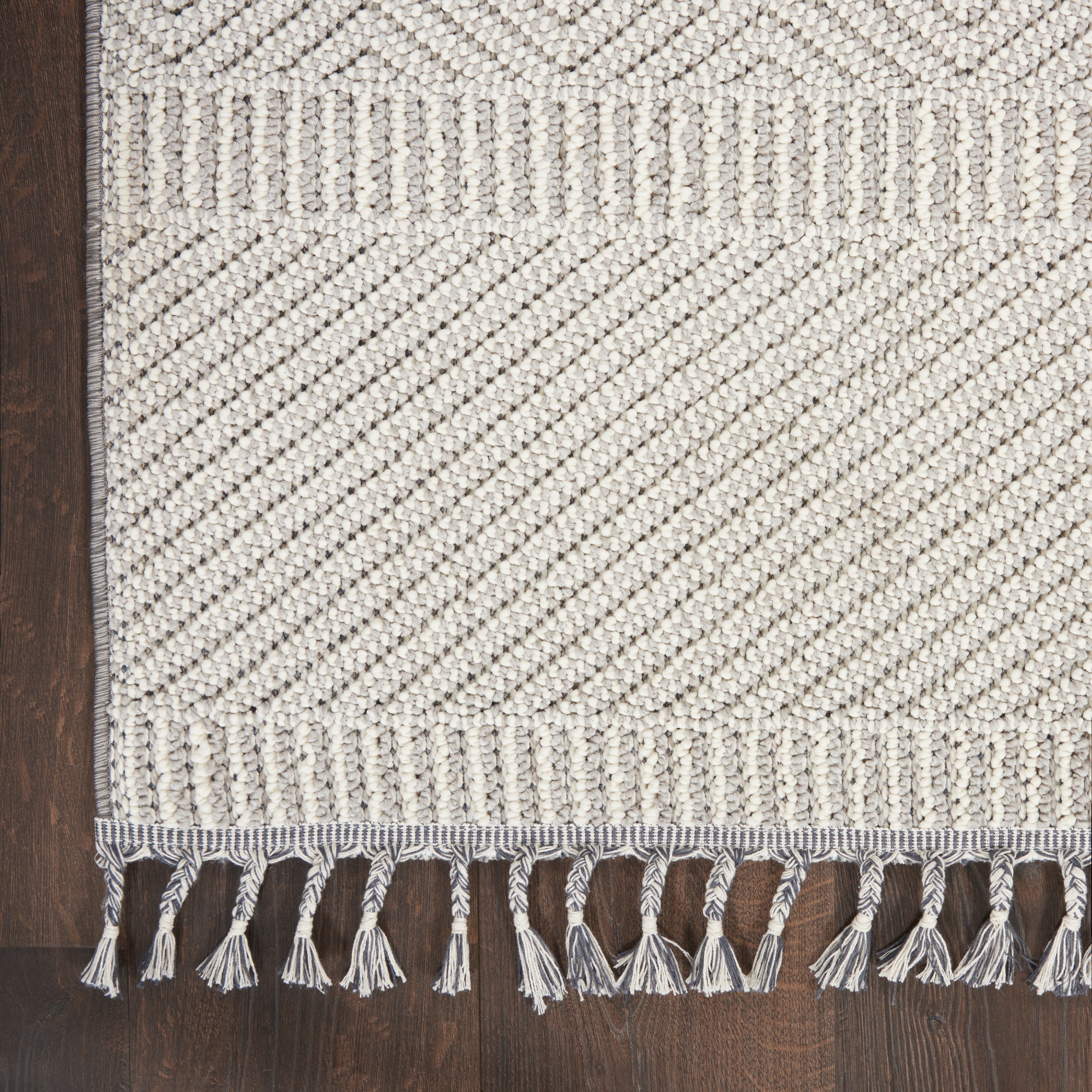 Paxton PAX06 Grey Ivory Area Rug Collection, designed to elevate your space with its captivating geometric patterns. Crafted with precision-looped polypropylene fibers, this collection effortlessly enhances any modern decor with its neutral tones and chic fringe edges for a touch of global style. Whether you're looking to spruce up your living room, hallway, bedroom, home office, or small space, there's a perfect size available for every corner of your home. Add a touch of sophistication and comfort to your living area with the Paxton PAX06 Grey Ivory Area Rug Collection today!