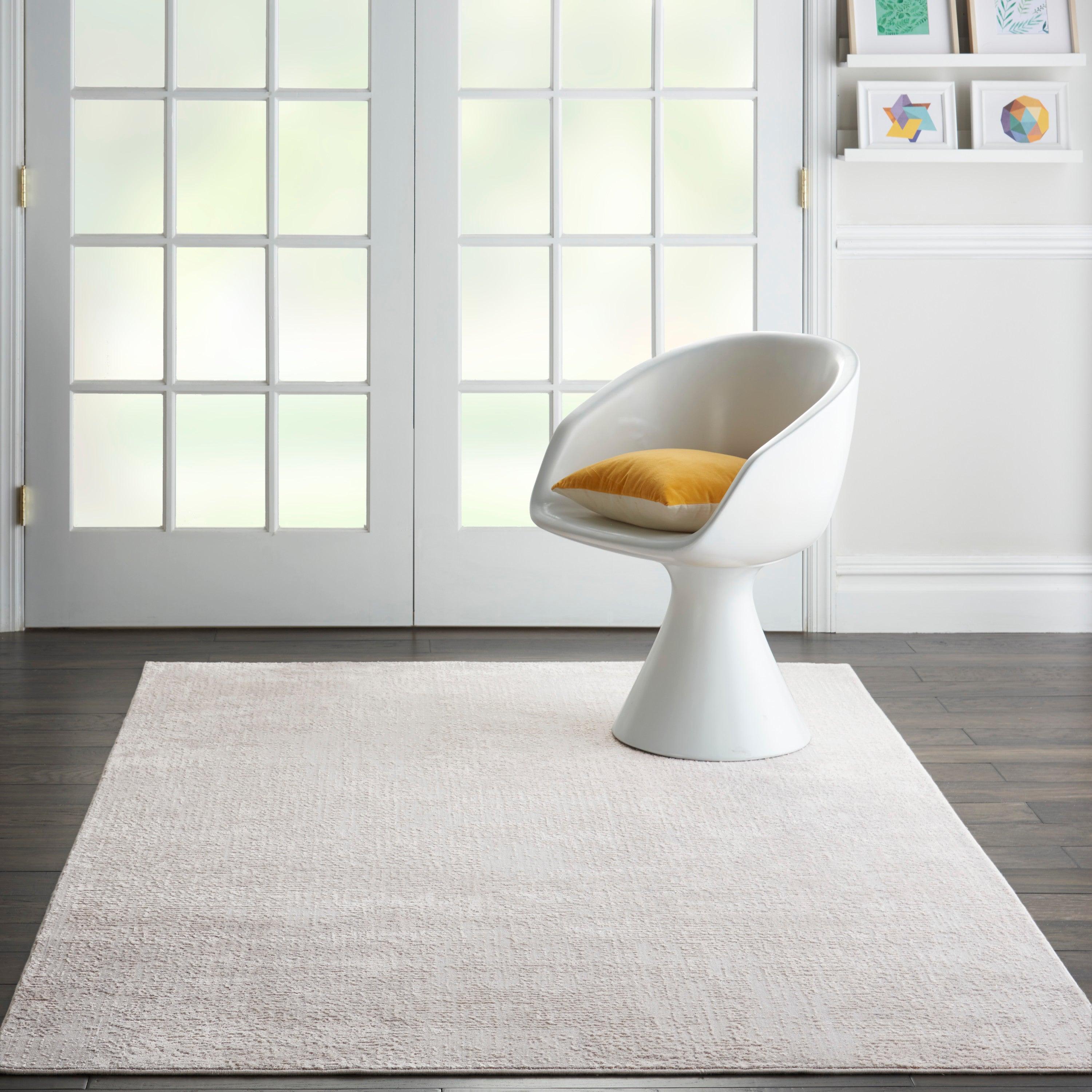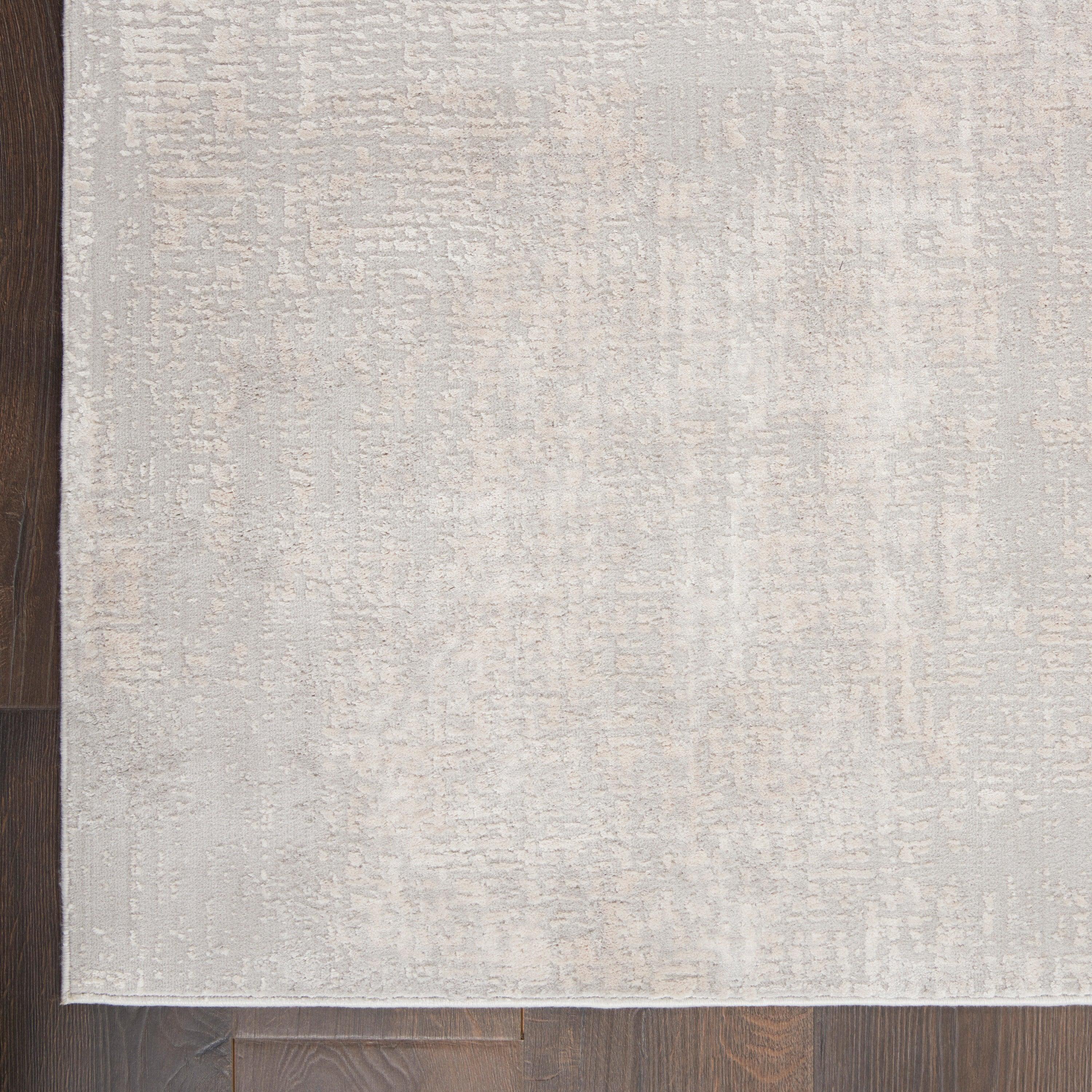 Silky Textures SLY01 Ivory Grey rug from Nourison, a stunning addition to your home decor. This contemporary low-profile area rug offers a touch of modern elegance with a variety of design options, from eclectic mid-century to abstract to traditional Persian motifs. The sleek and soft pile is designed to bring a luxurious silky sheen that effortlessly complements any room in your home.