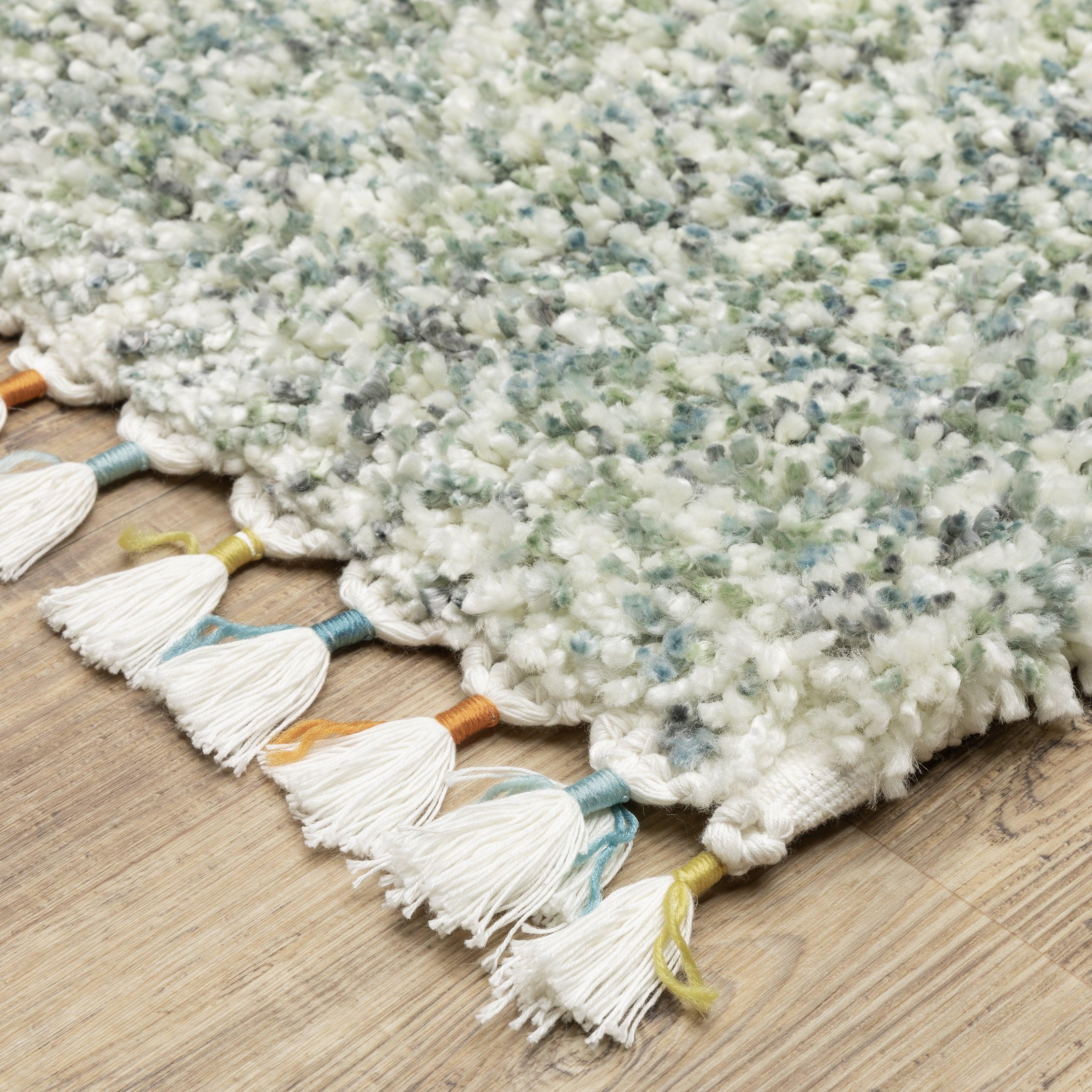 stylish Axis AX02A rug from our exclusive collection. Designed with multi-colored space dyed yarns and trendy tassel fringe, this rug adds a touch of modern flair to any space. Crafted from soft polypropylene using power-loom technology, it offers a dense, high-pile construction for a luxurious and textured feel underfoot.