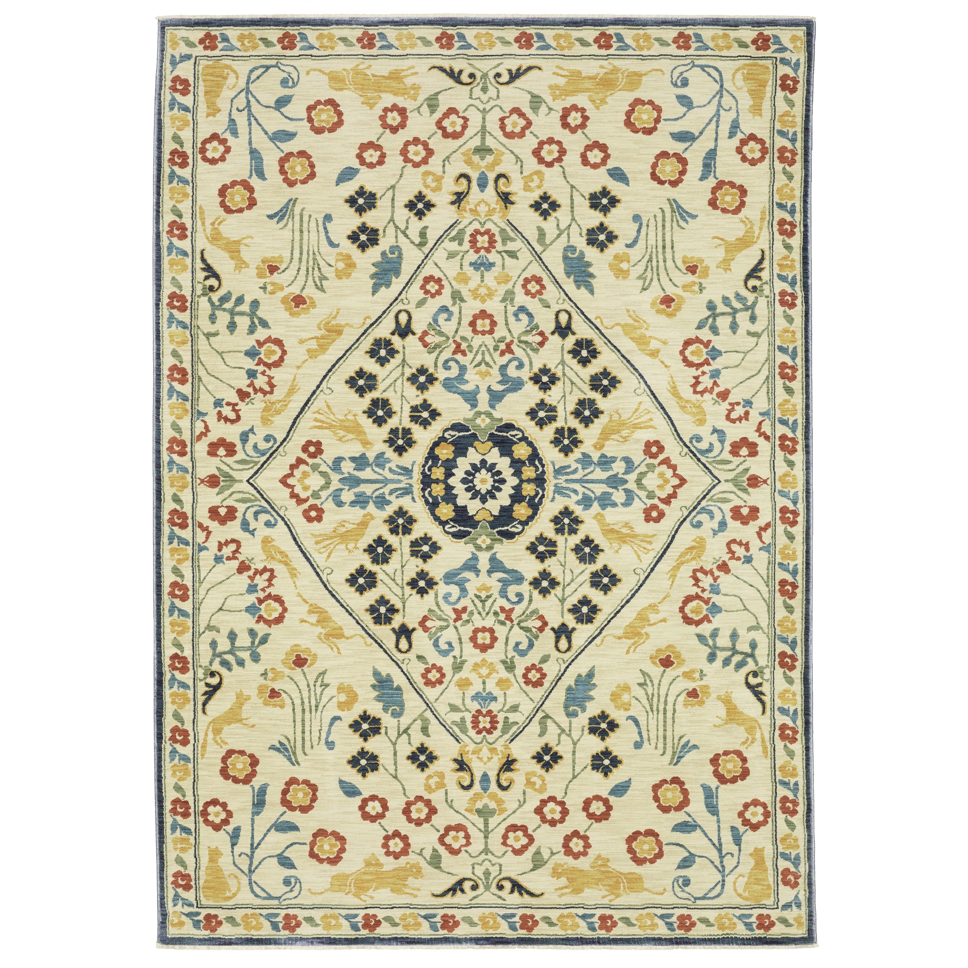 Detailed Colors: Ivory, Blues, Gold, Rust, Green