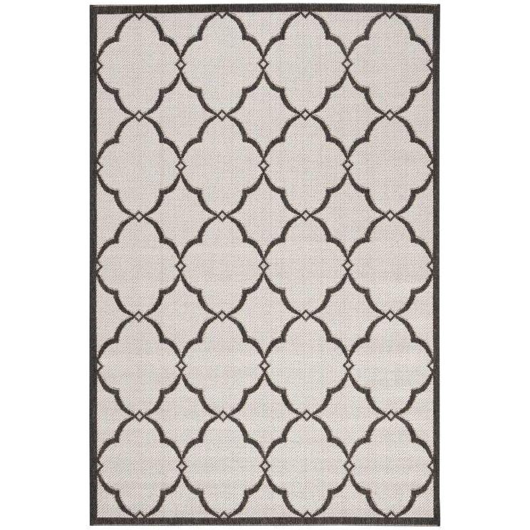 Linden LND125A Light Grey Charcoal rug from Safavieh's Linden collection. This modern piece features neutral colors and timeless geometric and oriental patterns, adding a touch of elegance to any room. Crafted from enhanced polypropylene, this area rug is durable and easy to maintain, making it perfect for high-traffic areas.