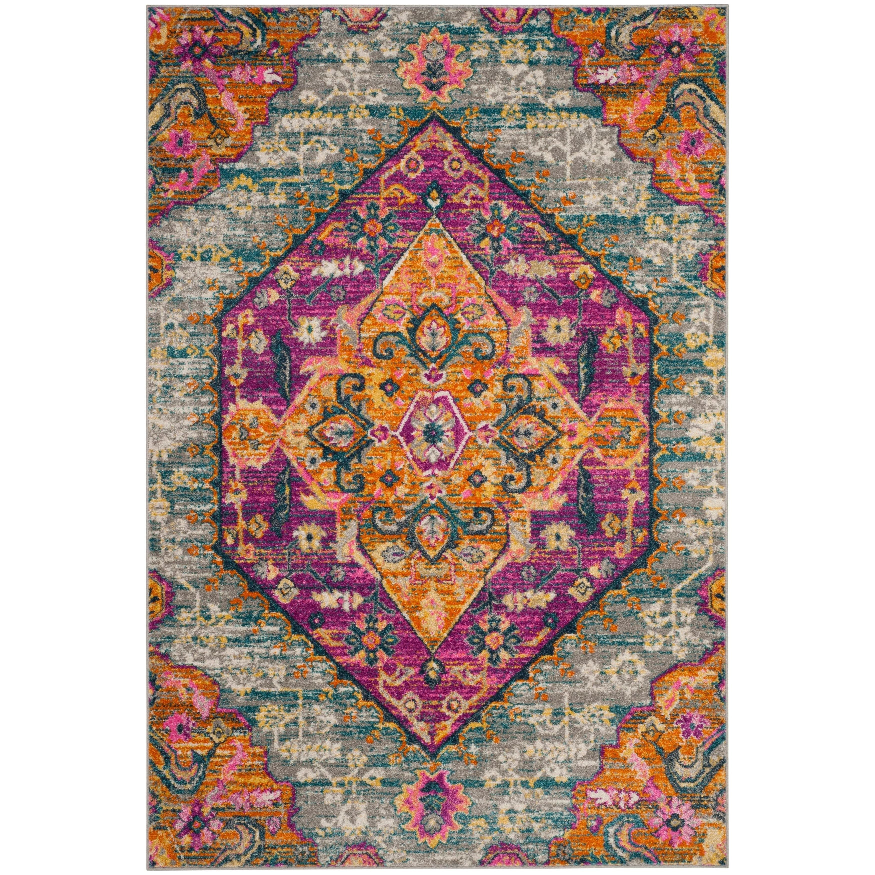 Madison MAD119G Light Grey Fuchsia rug from the Madison Rug Collection, where classic designs are transformed into modern home decor statements. Vibrant hues bring traditional motifs to life, creating a playful and chic aesthetic that blends seamlessly with any interior style. Crafted using high-quality synthetic yarns, these machine-woven rugs are not only stylish but also durable for long-lasting beauty. With an approximate thickness of 0.375 inches, this rug adds a cozy layer of texture to your space.
