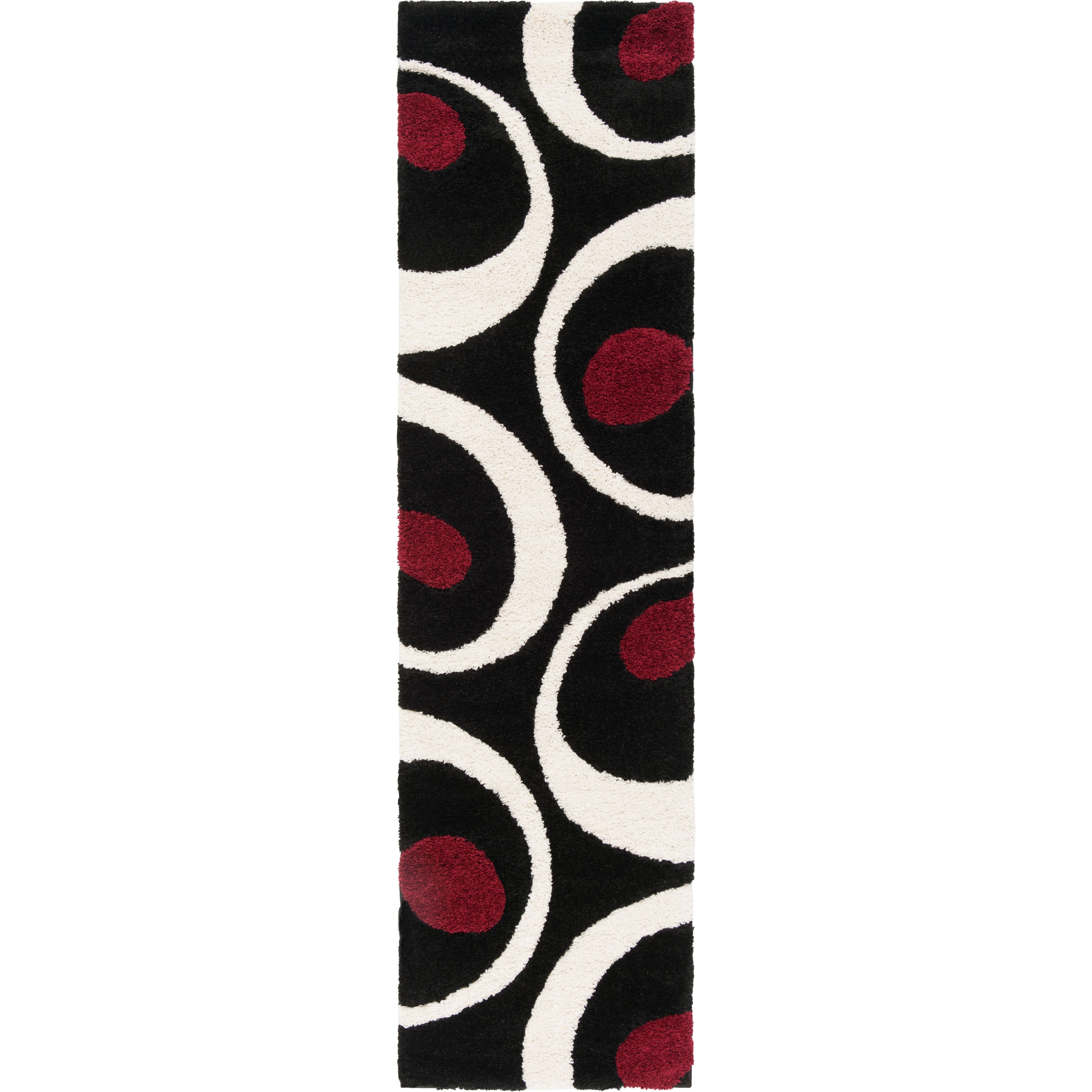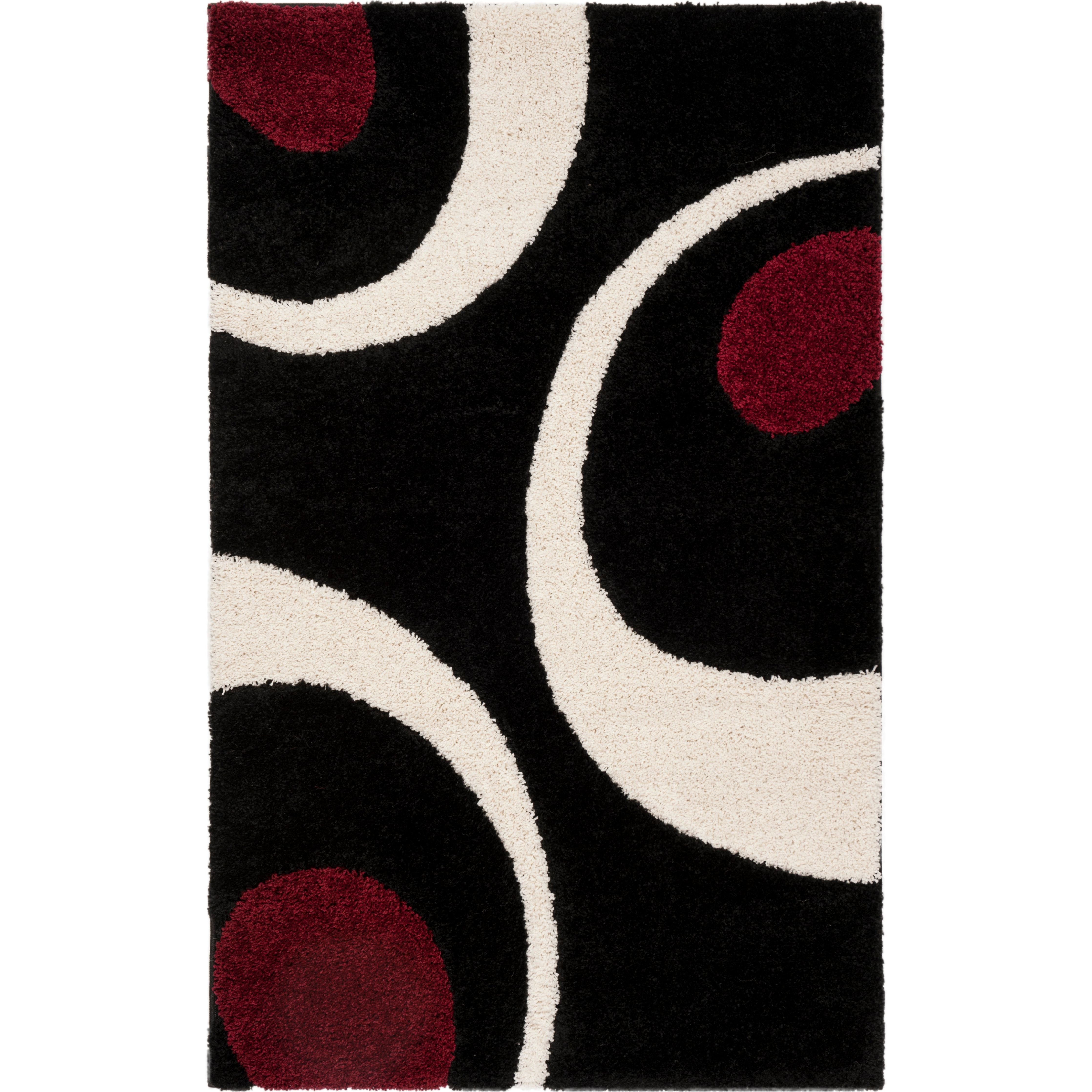 Elevate the style of your transitional or contemporary space with the Shag SG474 Black Ivory rug from SAFAVIEH. This Florida shag rug boasts a high-low pile that not only adds visual interest but also offers a plush texture underfoot. Crafted from premium polypropylene fibers, these iconic shag rugs are power-loomed for minimal shedding and enduring beauty, with an approximate thickness of 1.2 inches.
