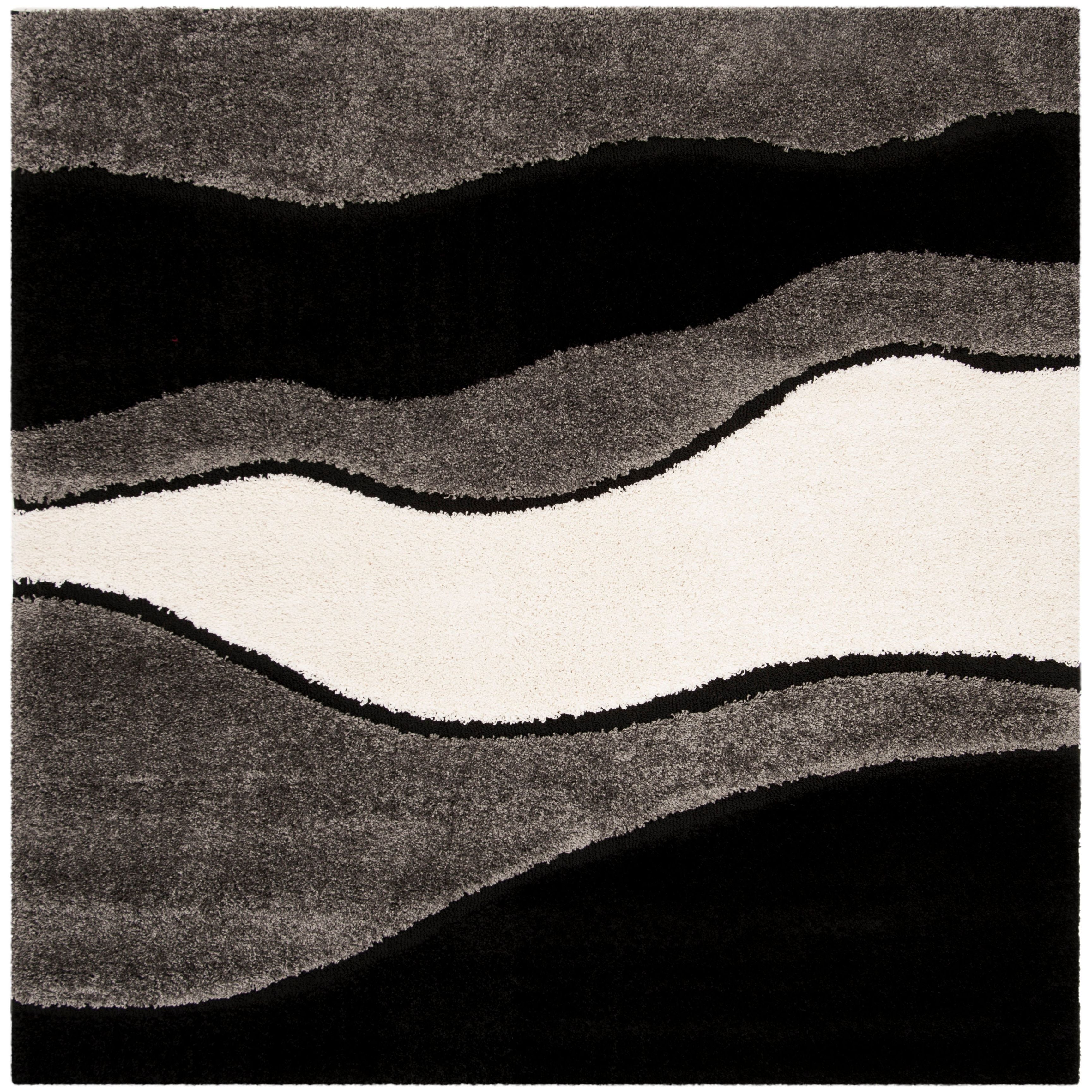 Enhance the look of your space with the Shag SG475 Grey Black rug from SAFAVIEH. This Florida shag rug is perfect for transitional and contemporary rooms, adding a luxurious layer of texture. The high-low pile not only looks visually stunning but also provides a soft feel under your feet. Made with enhanced polypropylene fibers, these iconic shag rugs are durable and shed-resistant for long-lasting beauty.