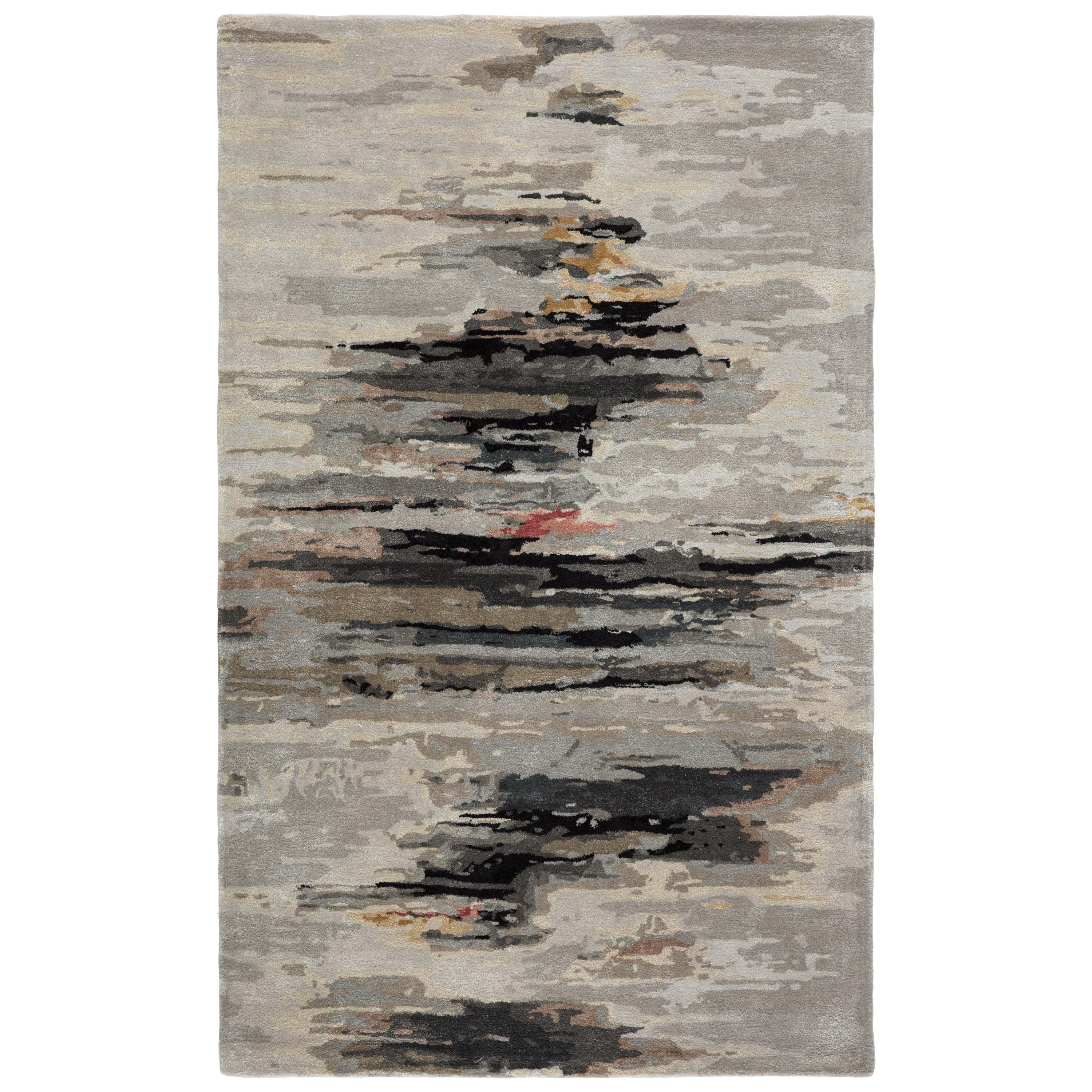 Genesis GES47 Ryenn rug, a perfect blend of whimsical spirit and sophisticated flair that will elevate your contemporary home decor. This hand-tufted rug is designed with bold black and gray colors complemented by hints of gold and blush, creating a dynamic abstract pattern that adds an artistic touch to any room. The luxurious blend of viscose and natural wool fibers ensures a plush and ultra-soft feel underfoot, making it both stylish and comfortable.