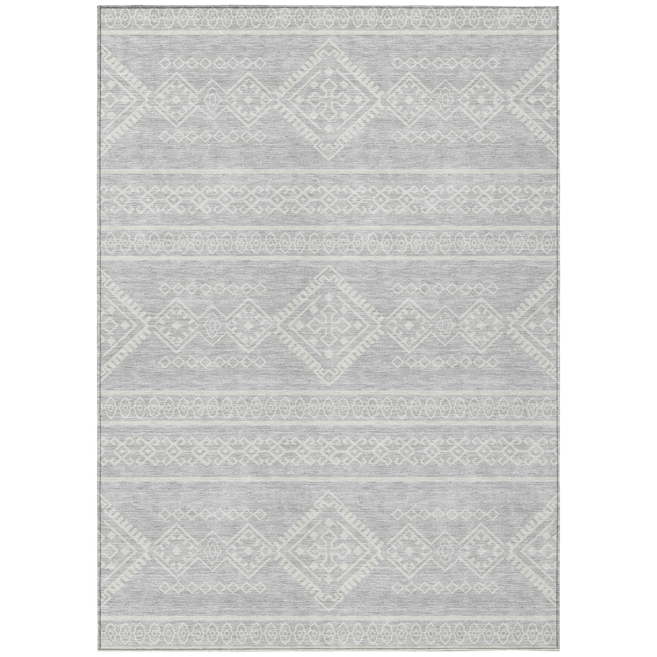 Introduce a touch of the southwest into your home with the Chantille ACN901 Silver area rug. This rug features a tribal design that exudes rustic elegance, making it a perfect addition to any space. Not only does it enhance the visual appeal of your room, but it is also designed for practical living. The rug is UV stabilized for versatile use, has an ultra-thin profile for easy integration into any decor, and is machine-washable for convenient maintenance.