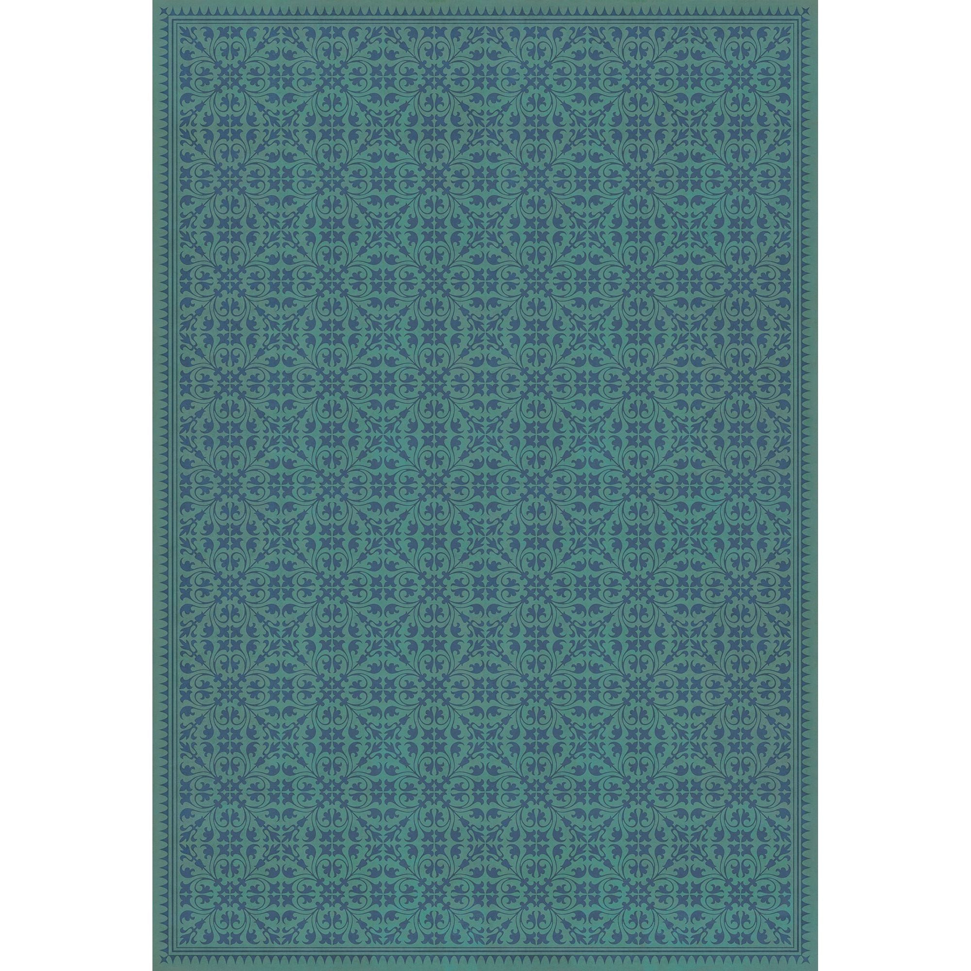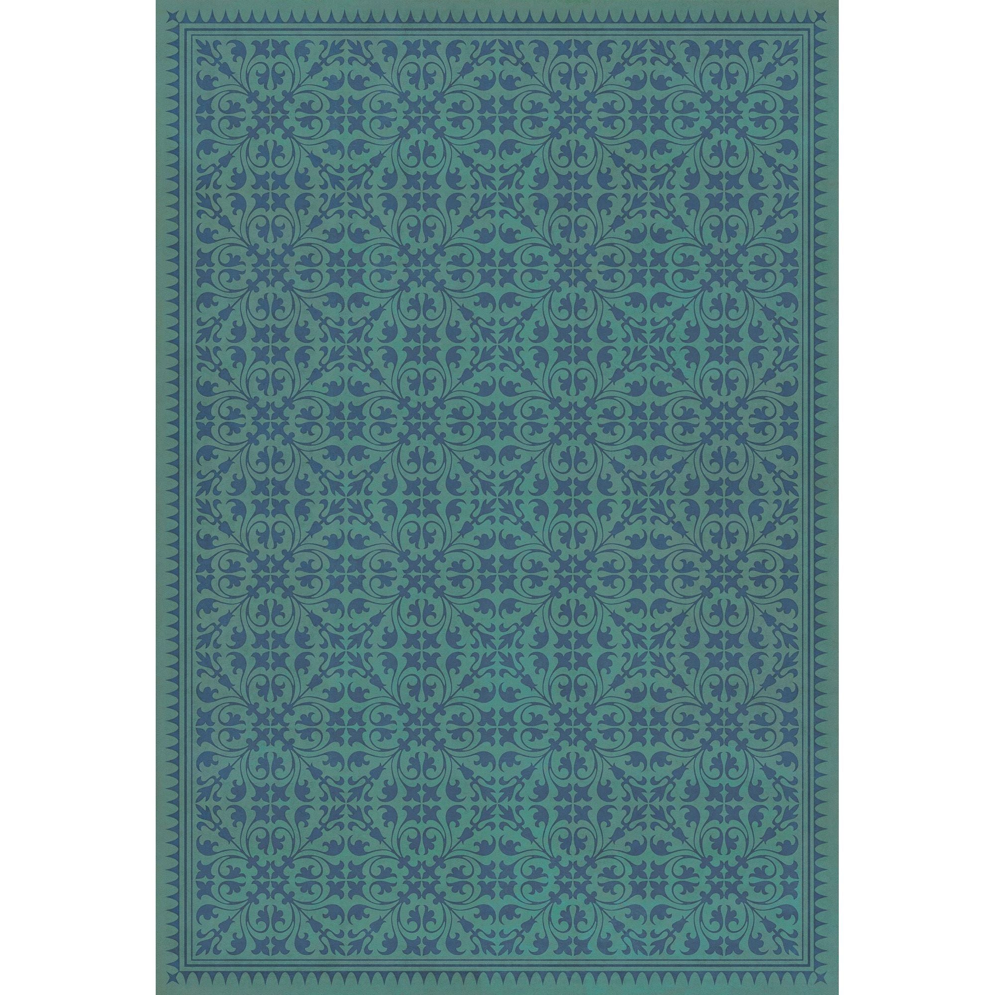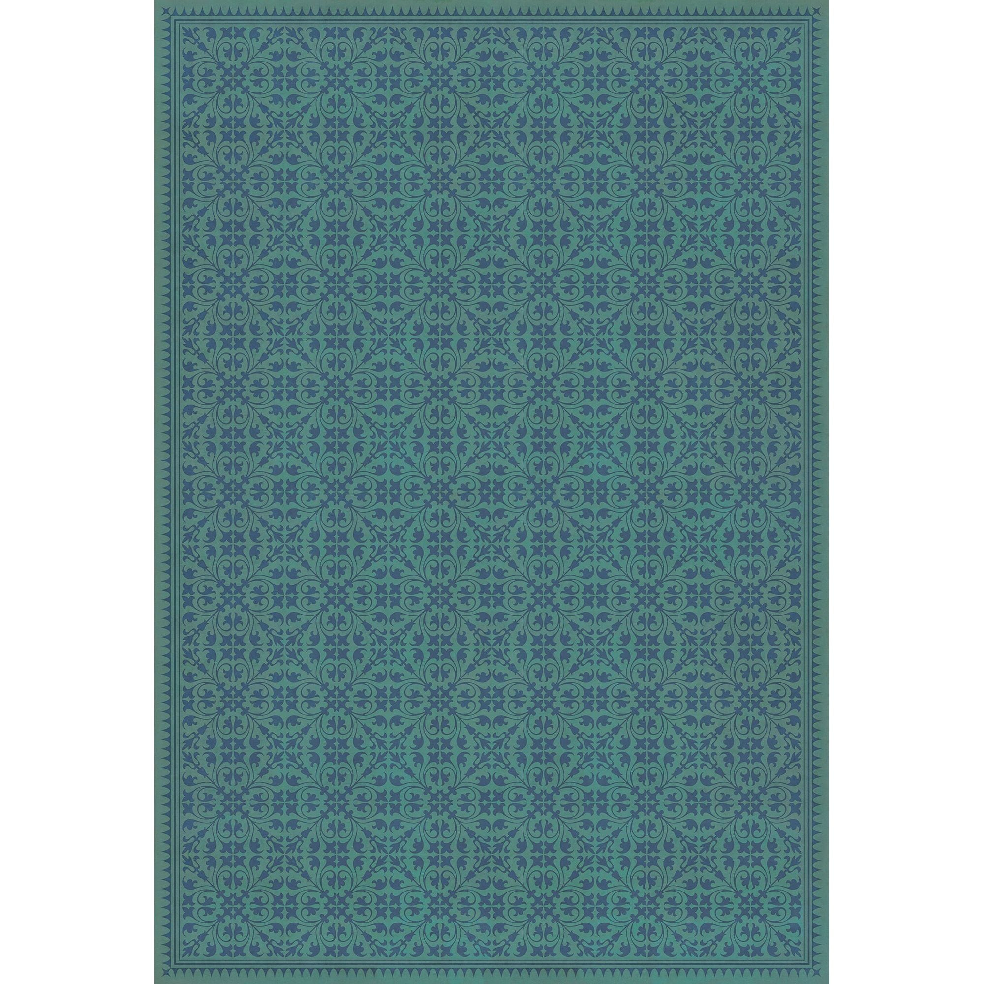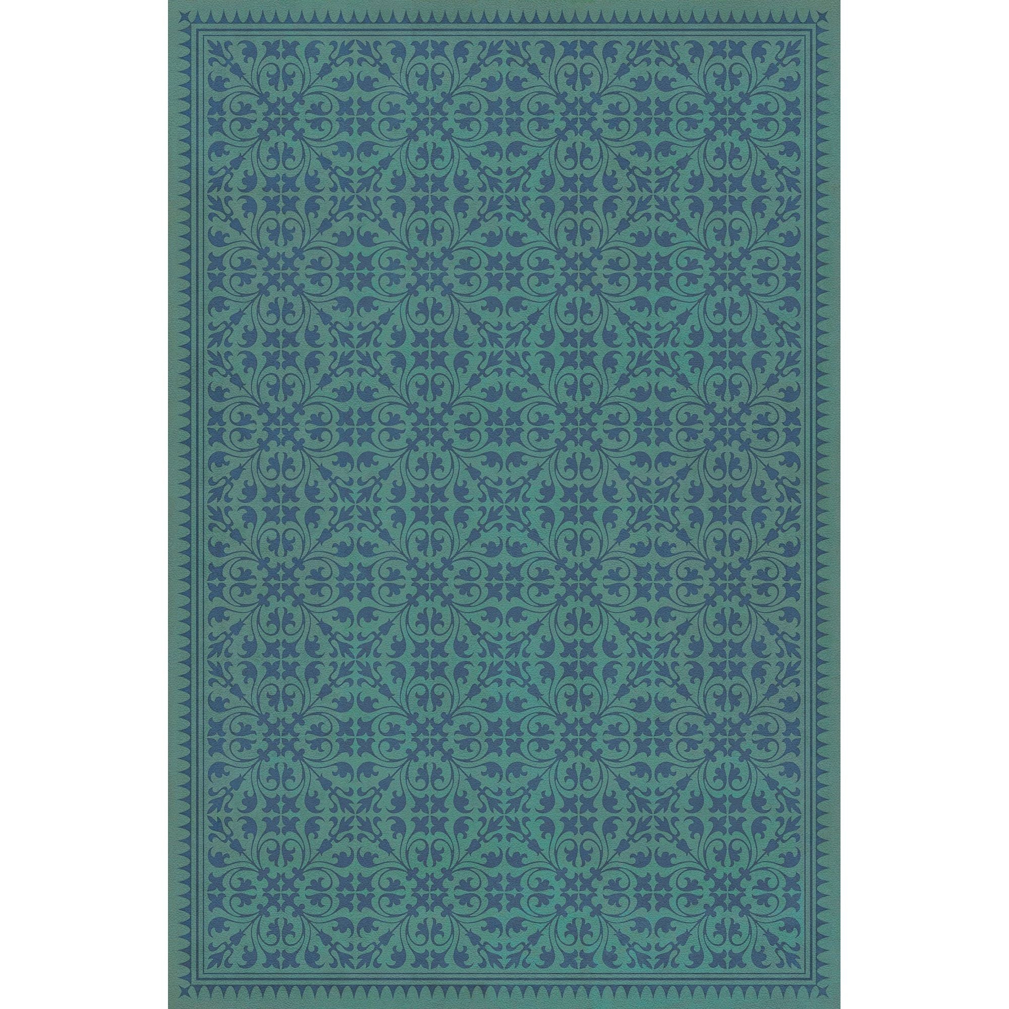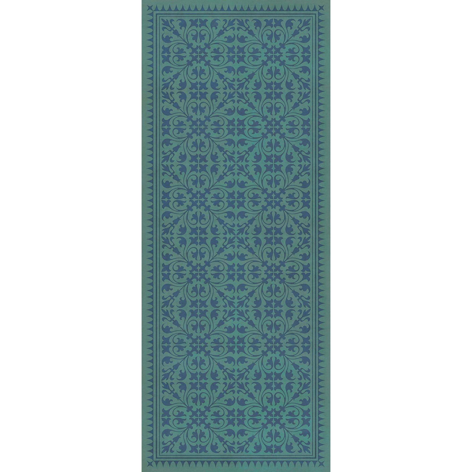 Vintage Vinyl Floorcloth Mat (Williamsburg - Applique - Azure Moss)
