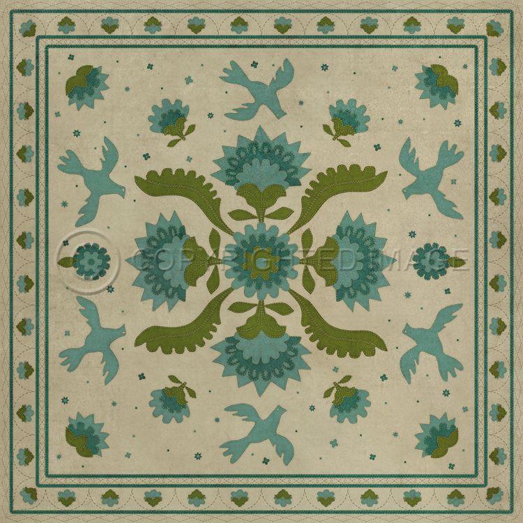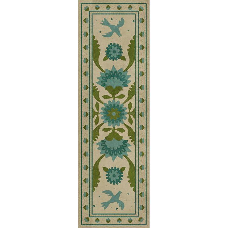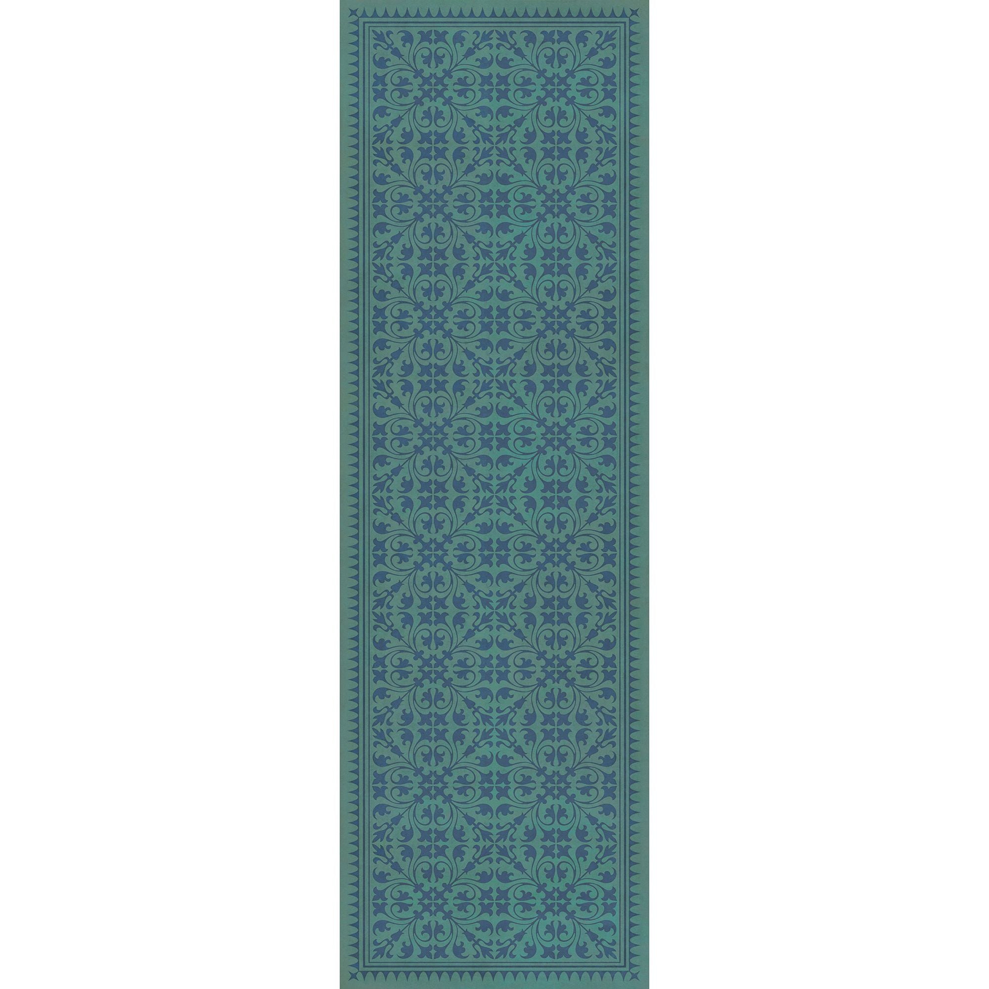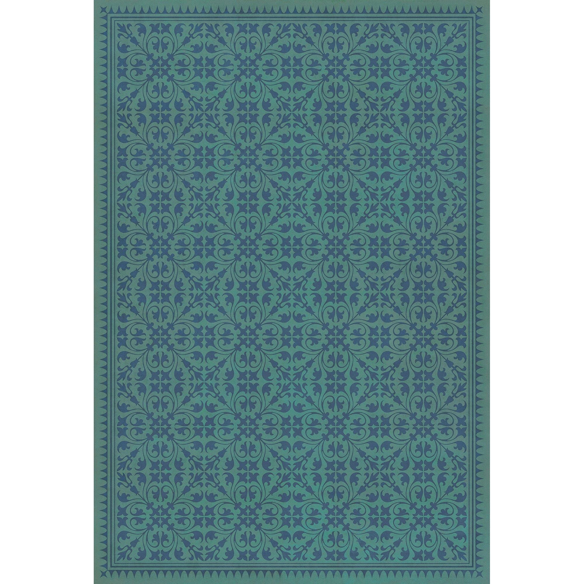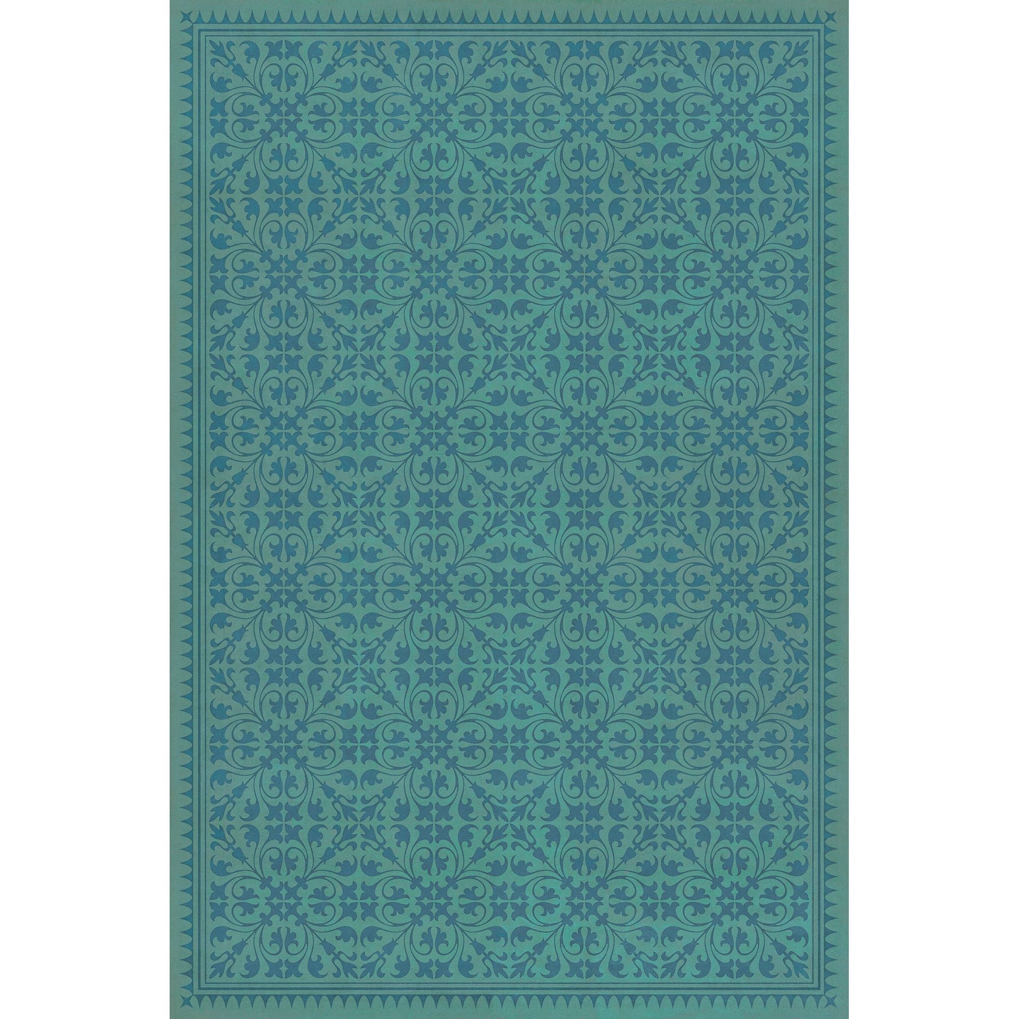 Vintage Vinyl Floorcloth Mat (Williamsburg - Applique - Azure Moss)