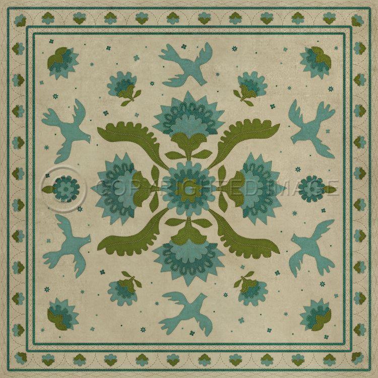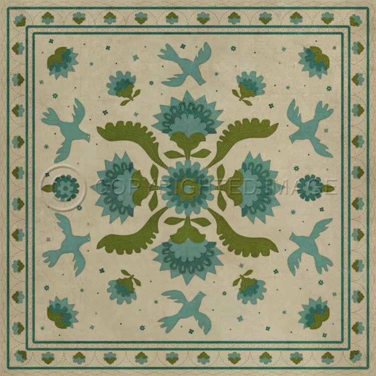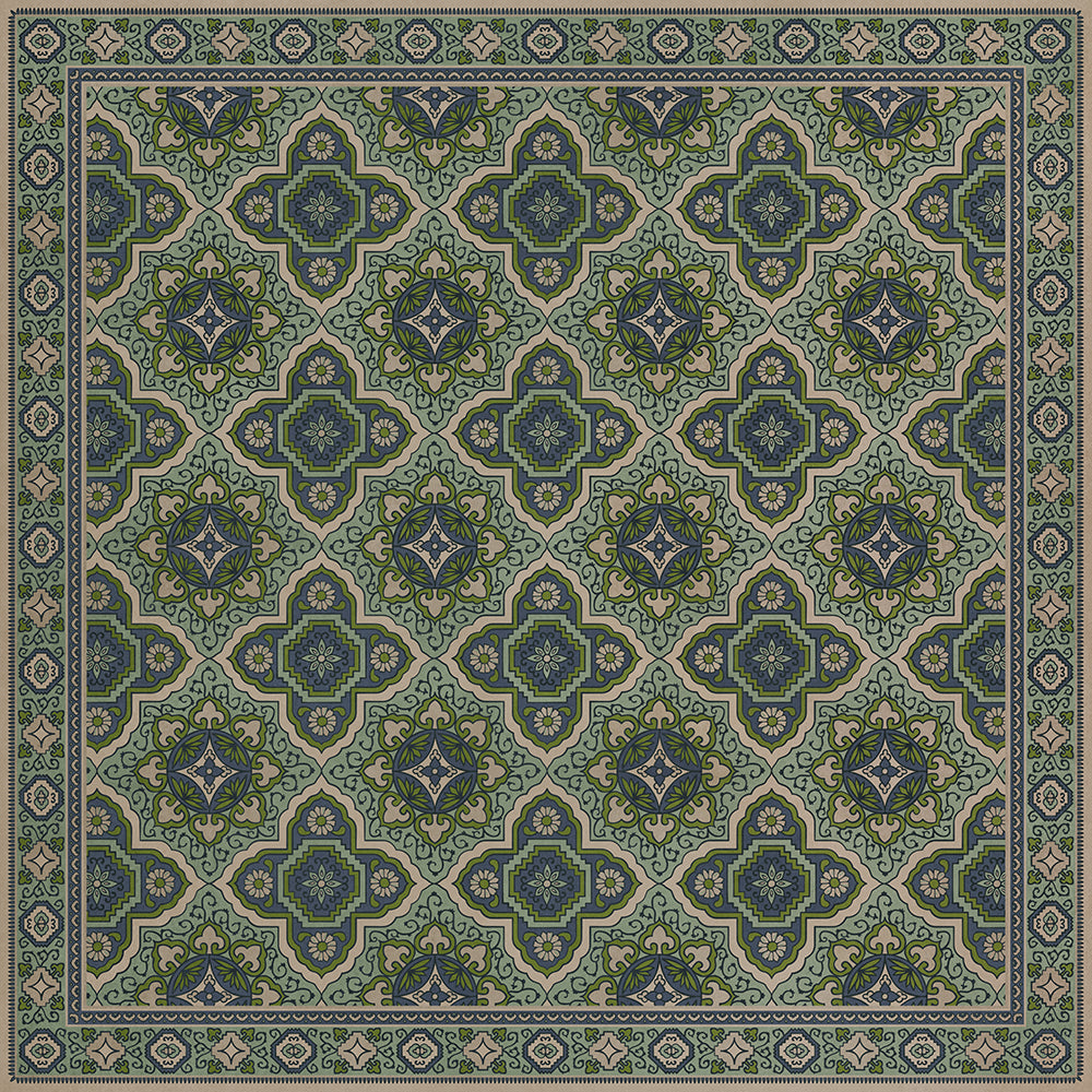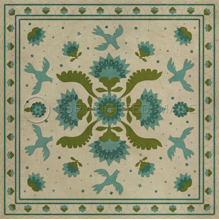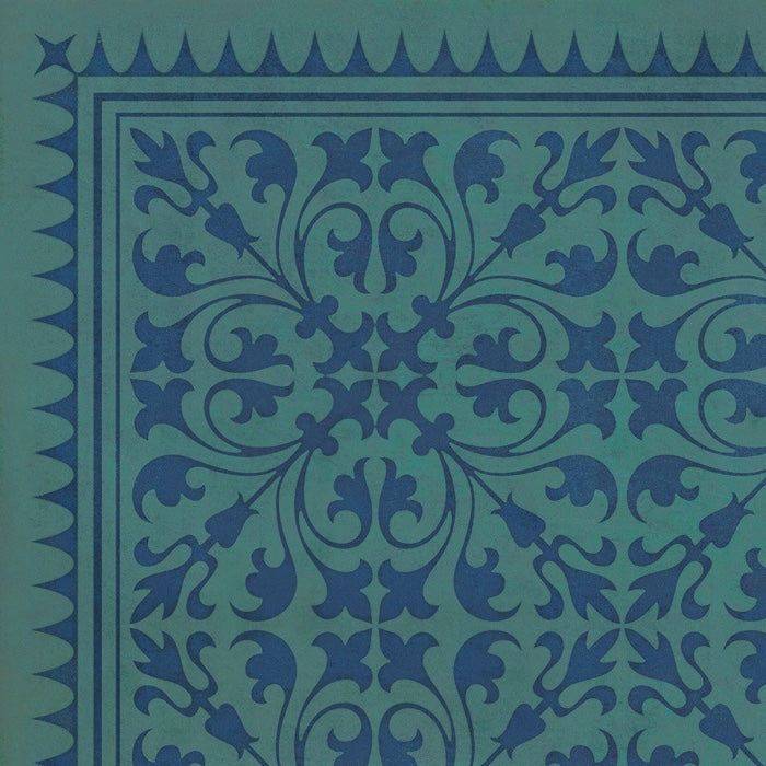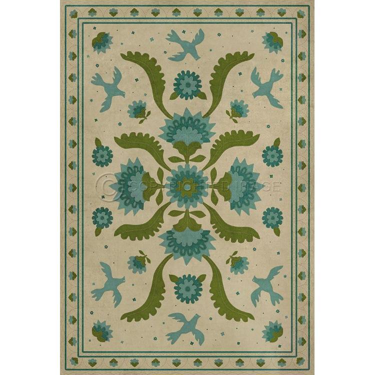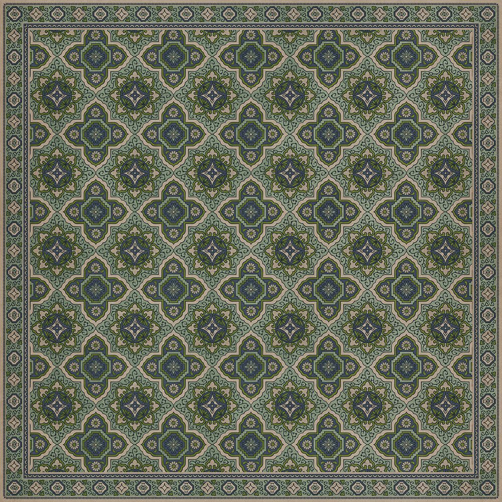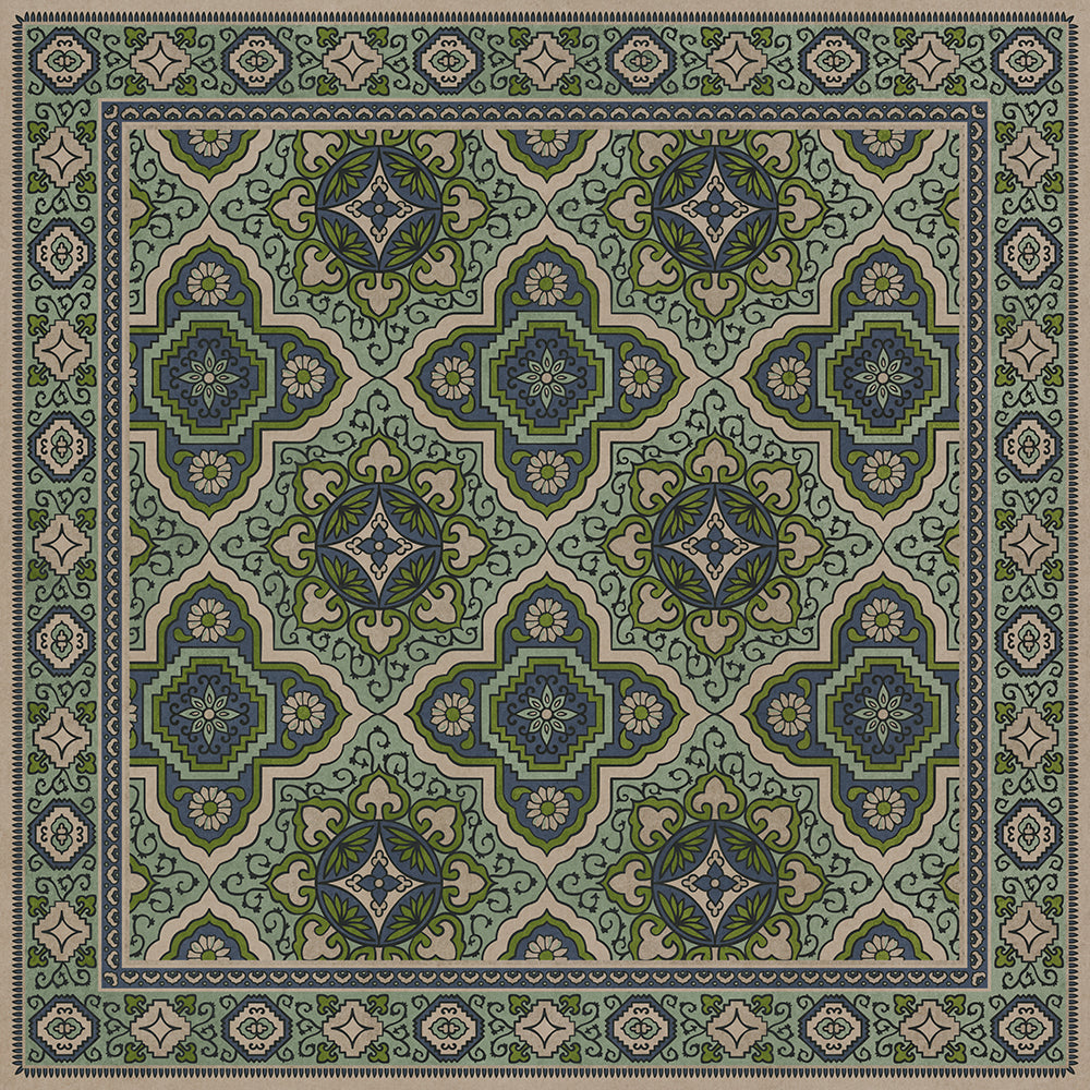 Vintage Vinyl Floorcloth Mat (Williamsburg - Applique - Azure Moss)