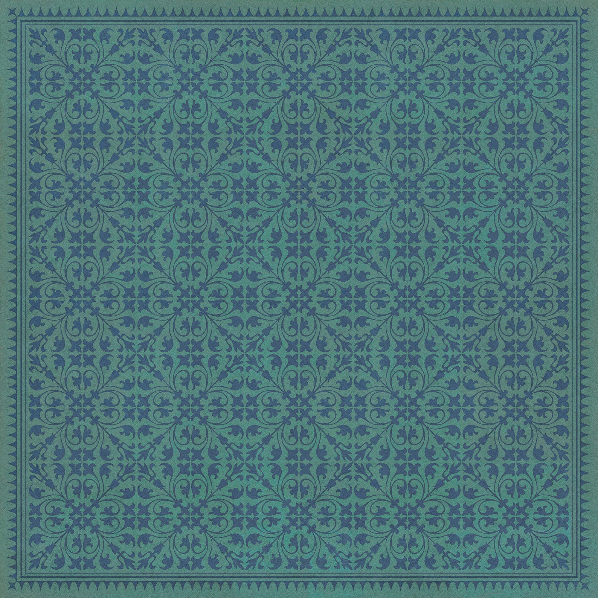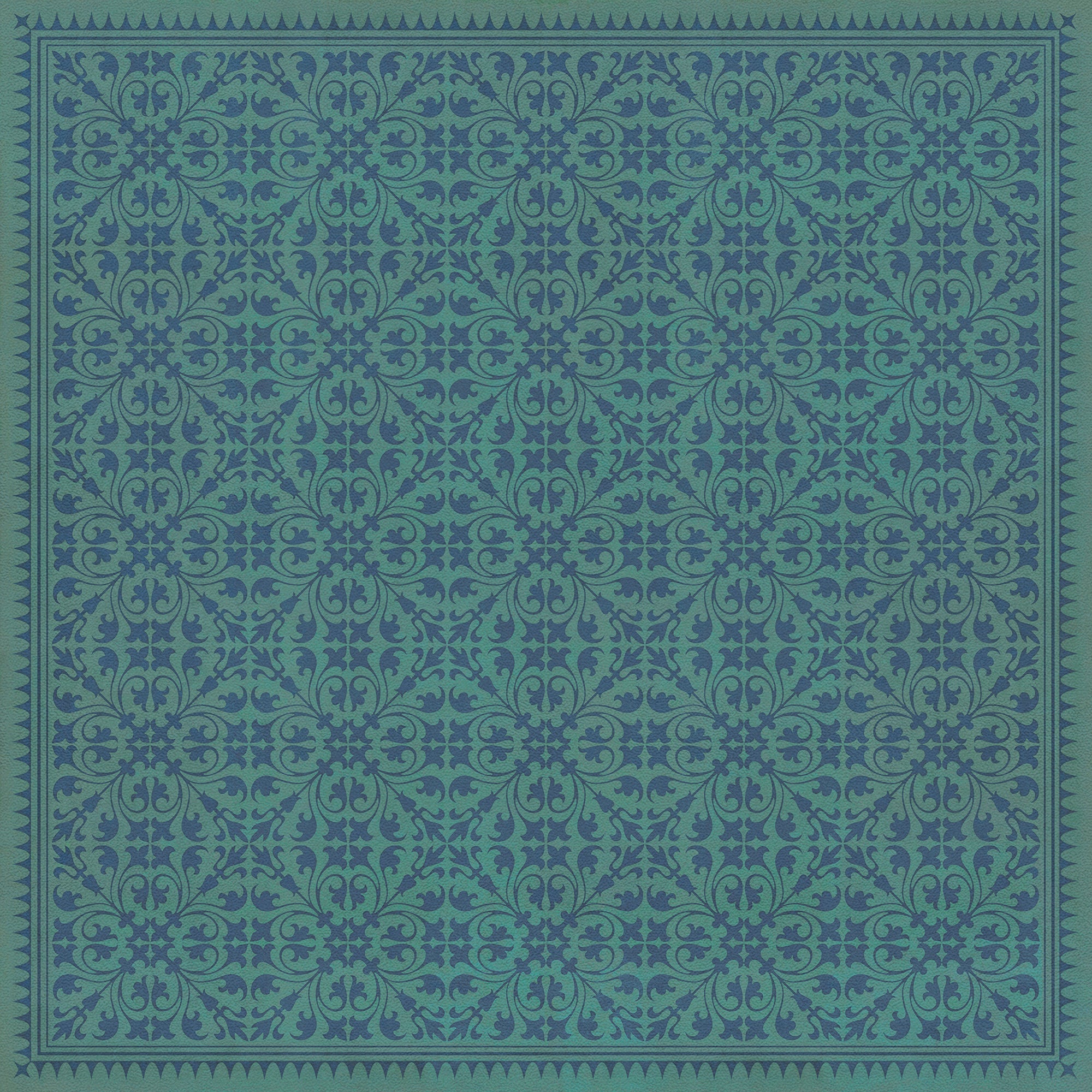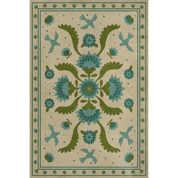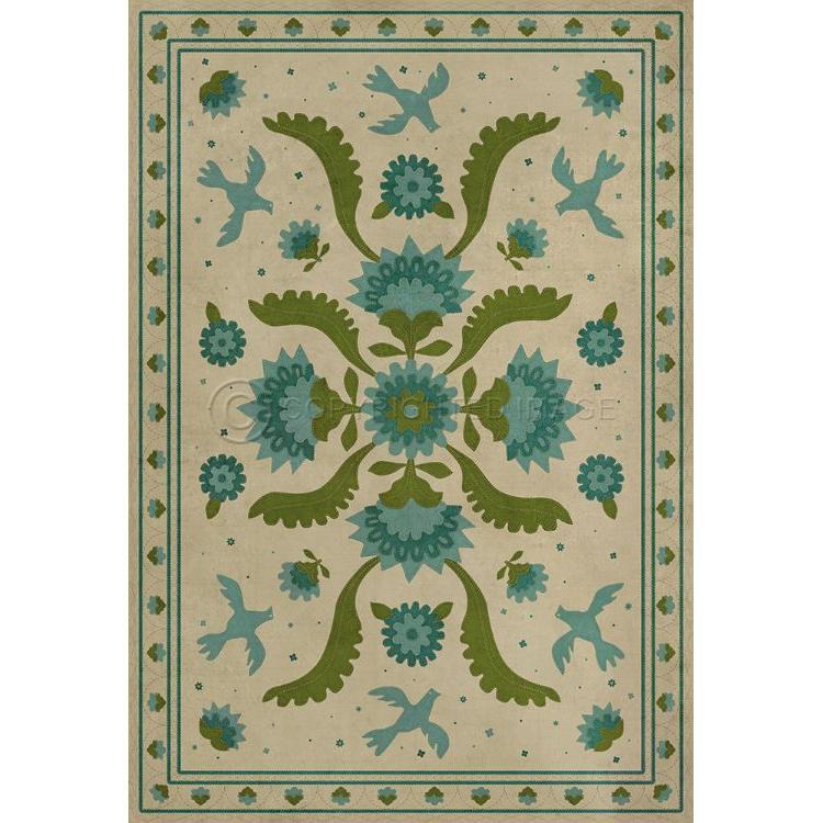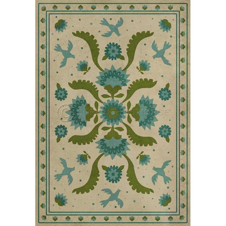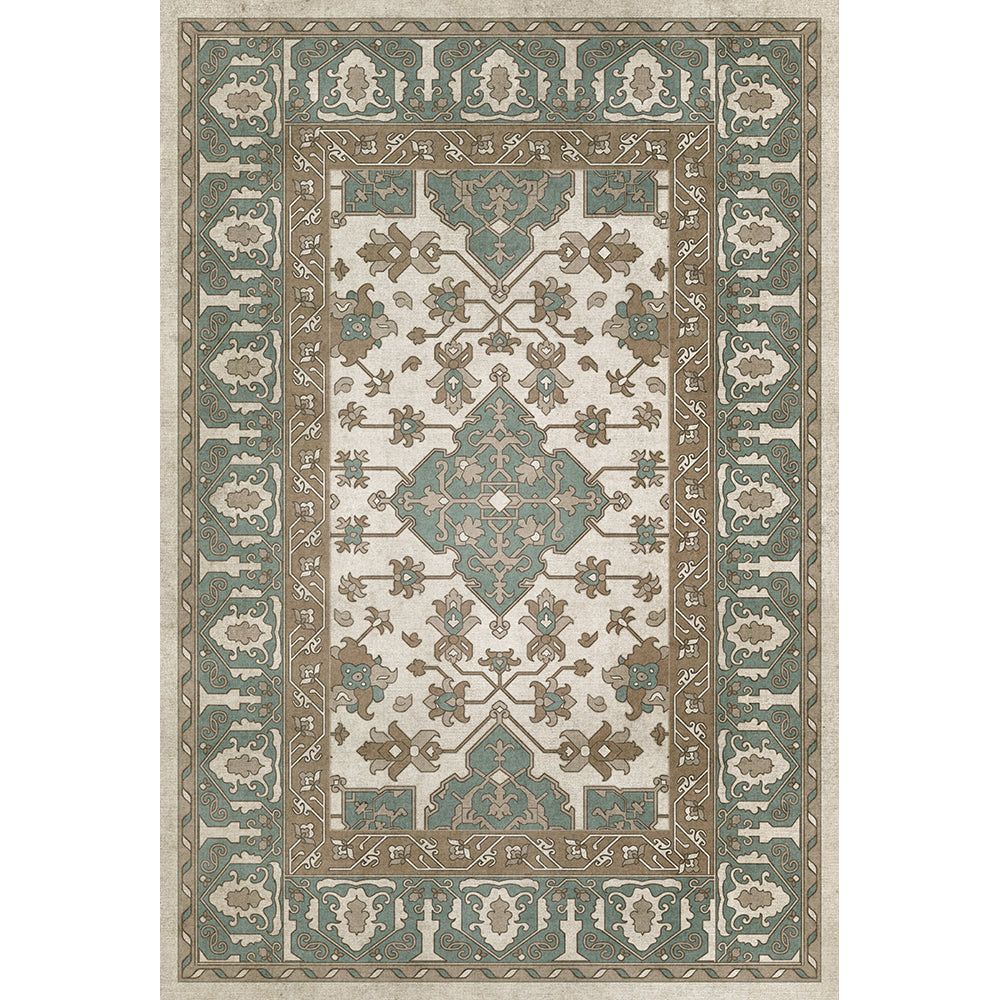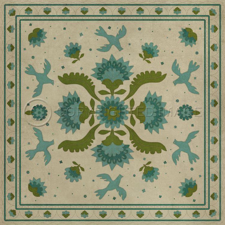 Vintage Vinyl Floorcloth Mat (Williamsburg - Applique - Azure Moss)