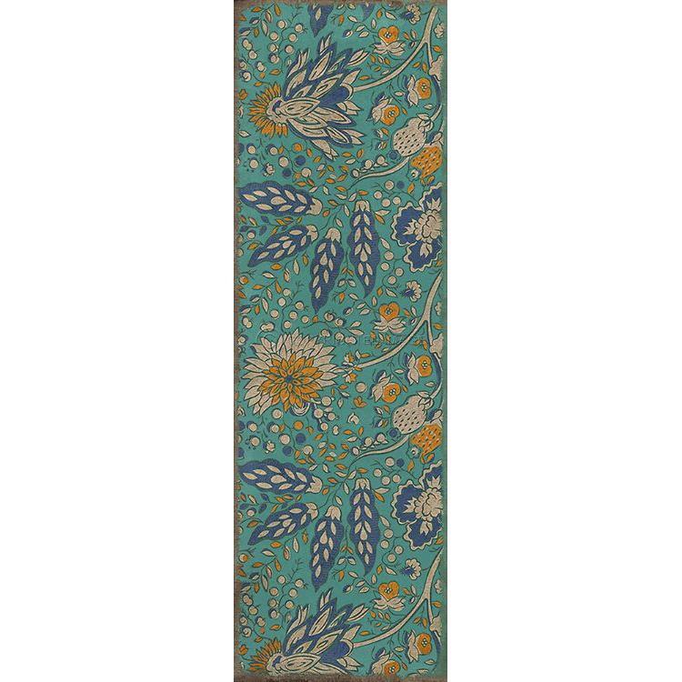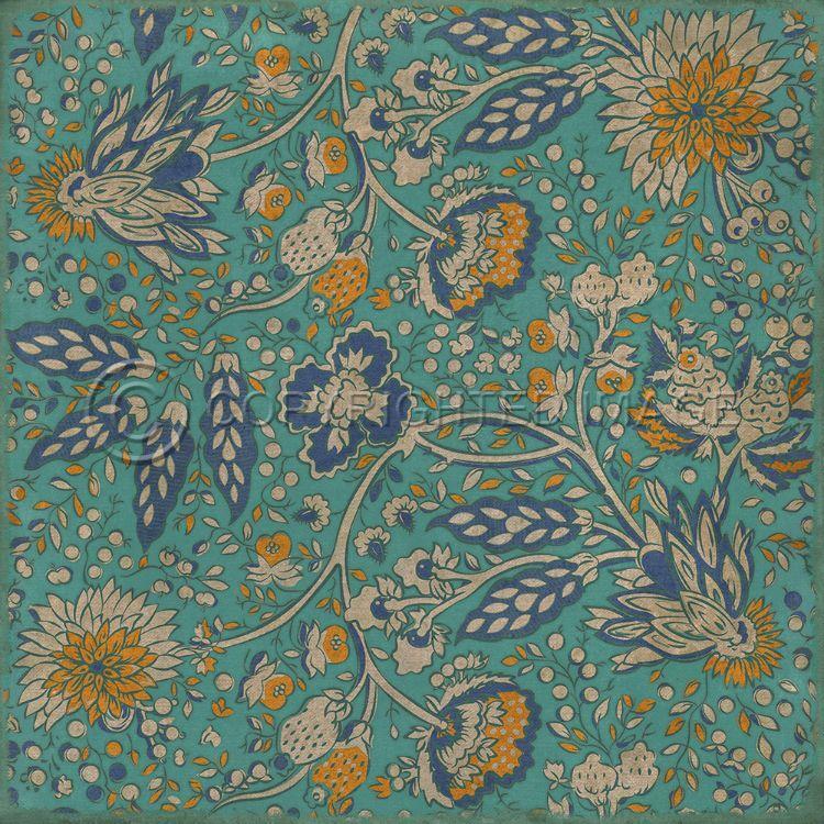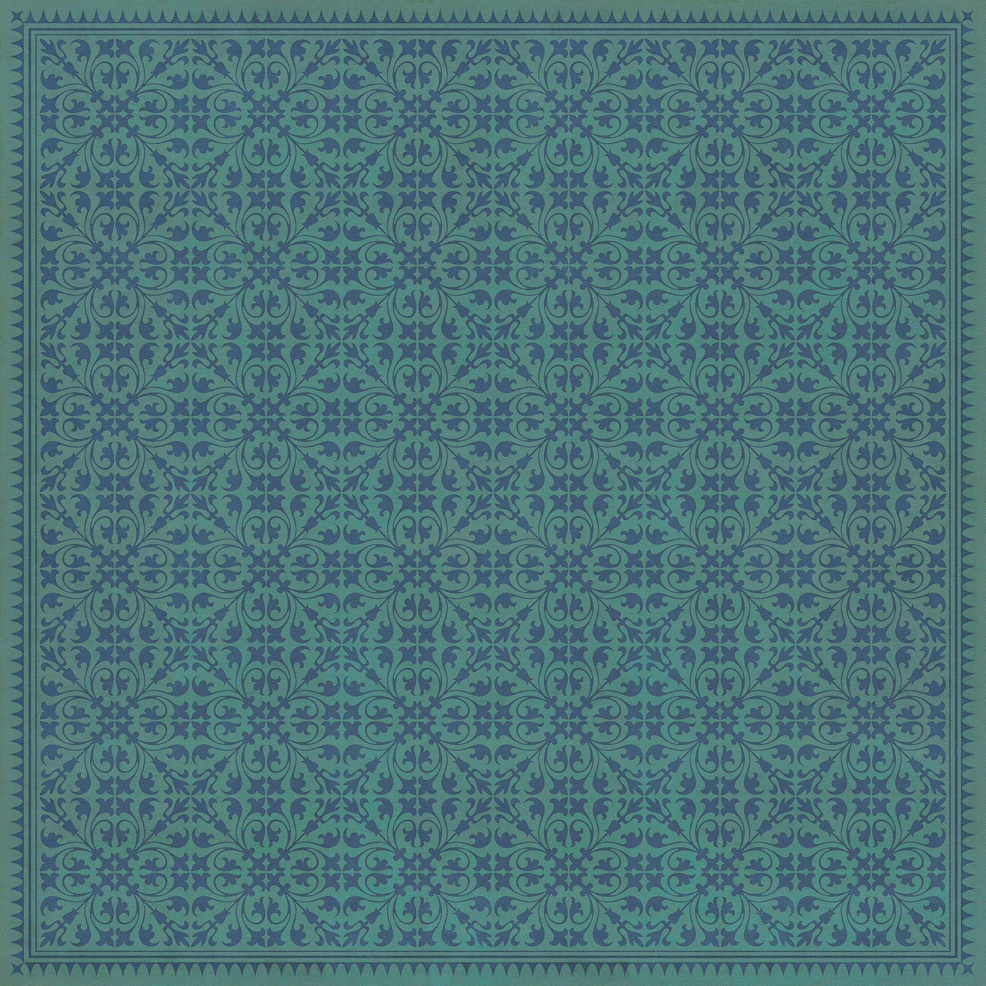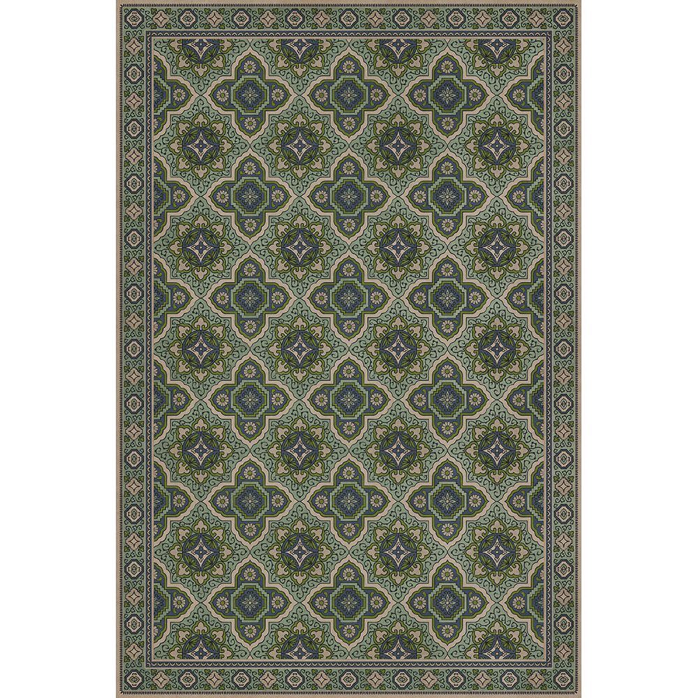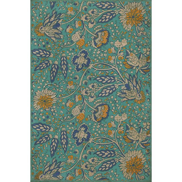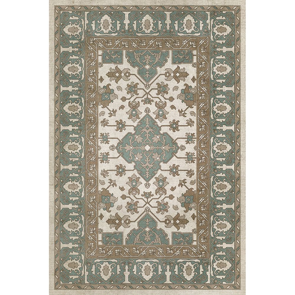 Vintage Vinyl Floorcloth Mat (Williamsburg - Applique - Azure Moss)