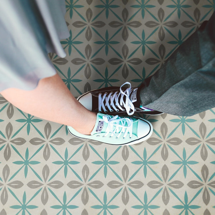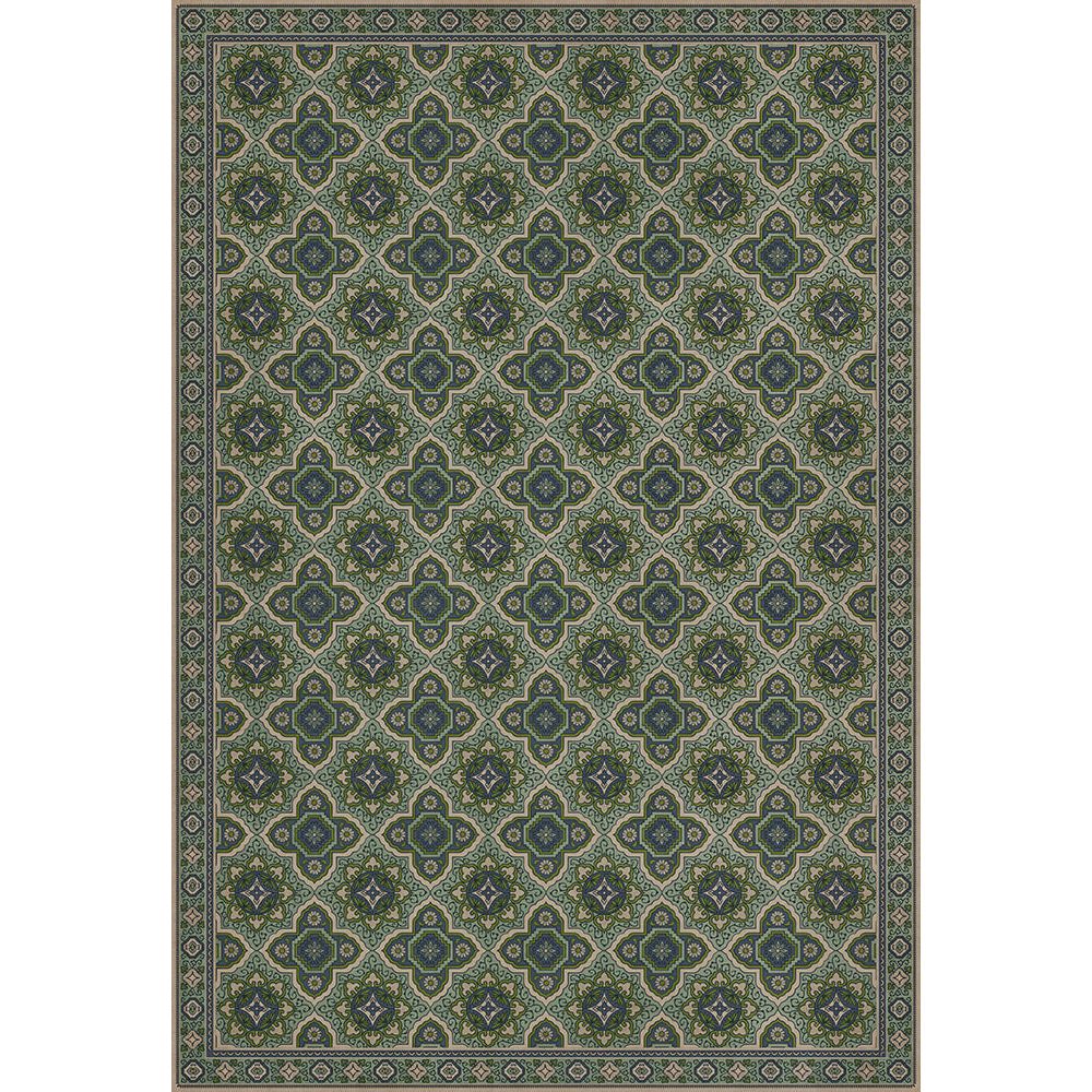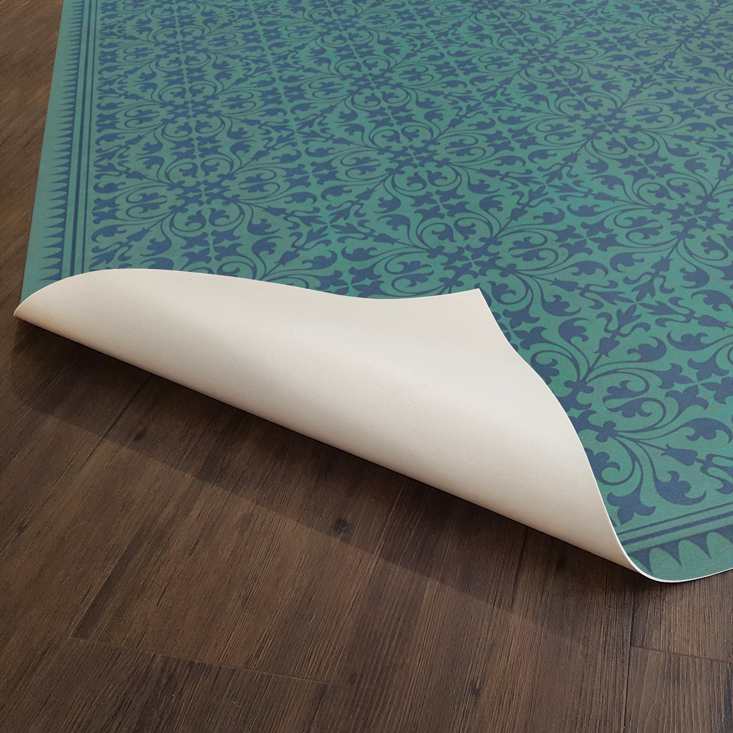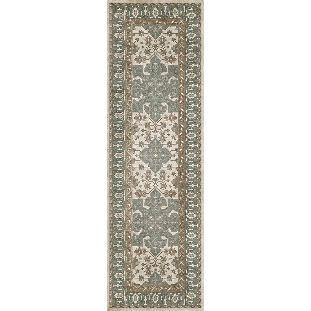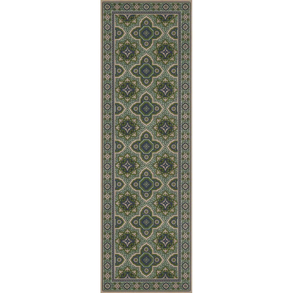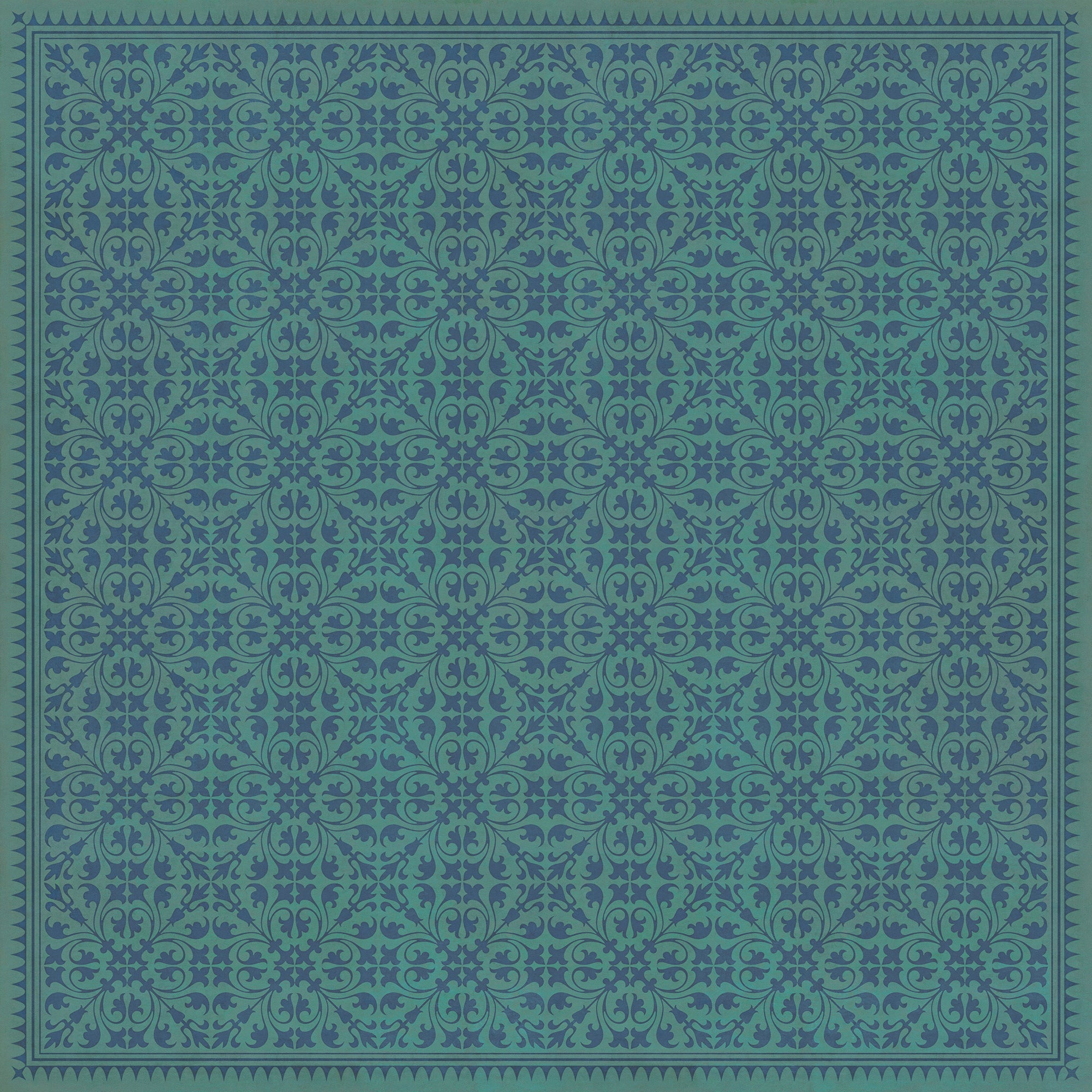 Vintage Vinyl Floorcloth Mat (Williamsburg - Applique - Azure Moss)